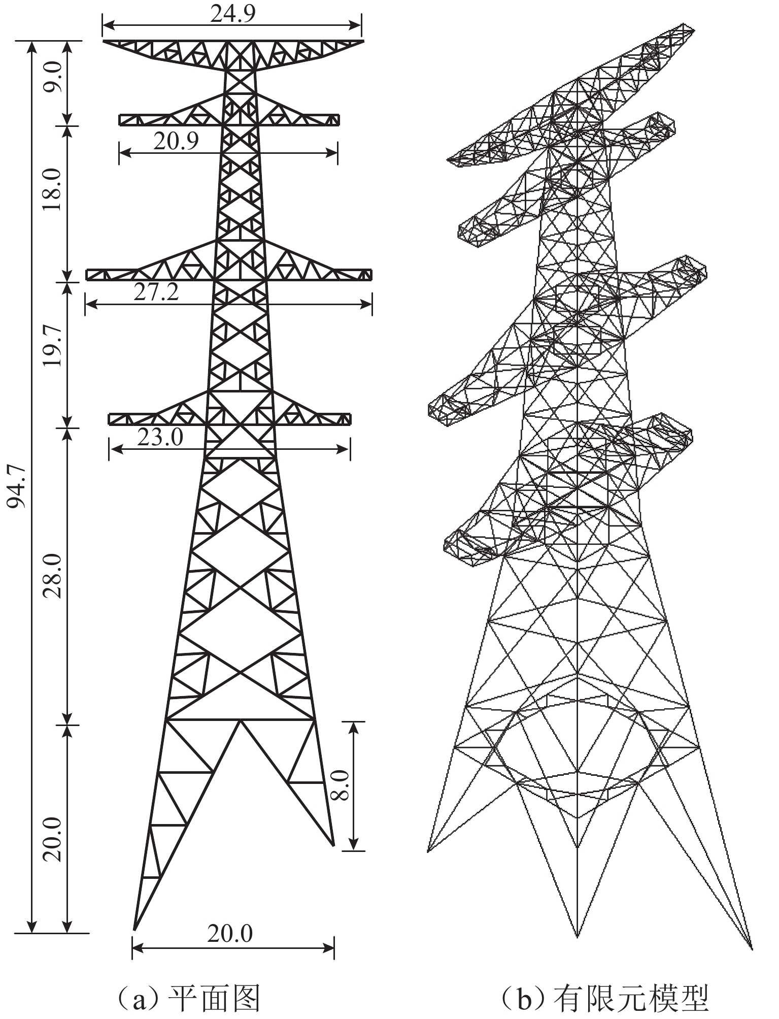 为优化T型加固斜材构件的加固方案,通过理论分析、试验研究和有限元分析研究构件的结构和材料参数对加固后承载力的影响. 首先,基于组合梁理论,建立T型加固截面的理论模型,进而分析T型加固的抗弯刚度提高程度;其次,进行单面连接角钢T型加固的偏心受压静力试验;最后,通过有限元模型分析长细比、宽厚比和材料强度对夹具数目选择的影响. 研究结果表明:T型加固的抗弯刚度提高程度随着荷载的增大而减小;夹具数目减小会导致垂直于构件变形方向的相对滑移;针对试验构件,夹具数目越多承载力越大,最大加固效果为100.4%;针对斜材的T型加固方案,长细比低于150时选用2个夹具即可,反之,则需要3个夹具;宽厚比和材料强度不会对夹具的选择造成影响.