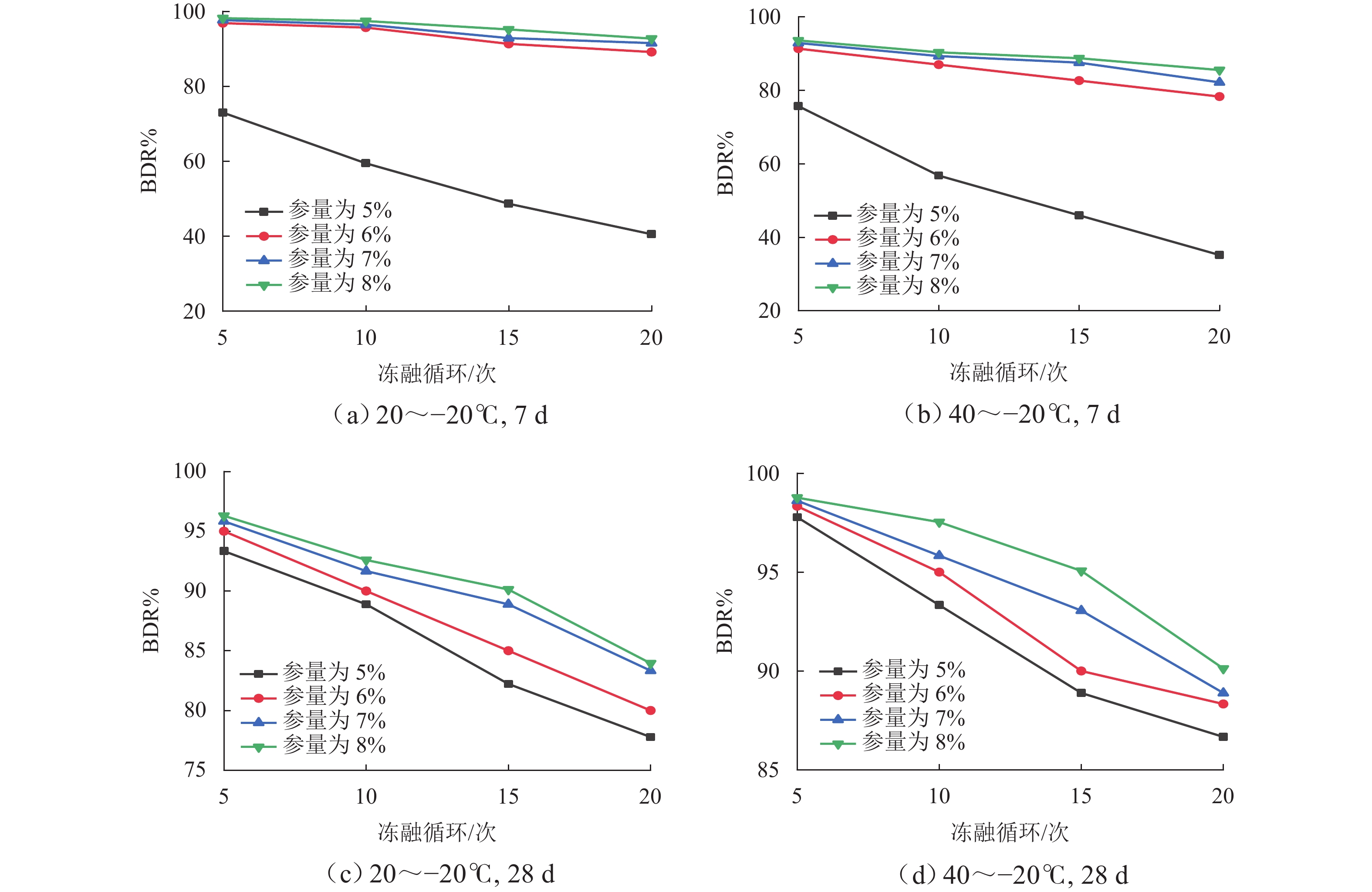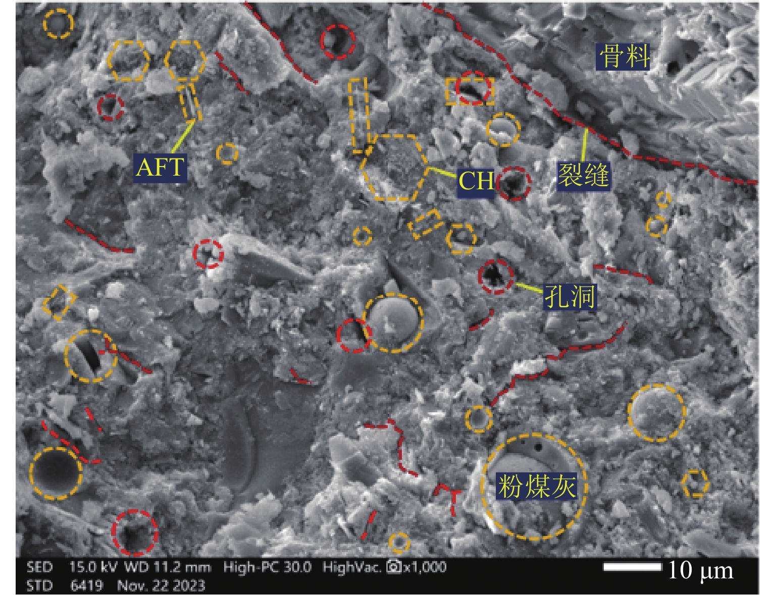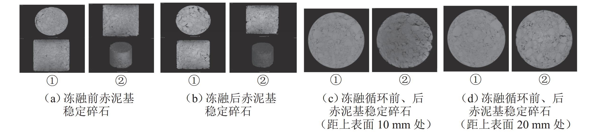 为实现赤泥基胶凝材料在道路工程中的安全应用,研究赤泥基稳定碎石基层在冻融循环作用下力学性能与质量的变化规律,采用工业CT扫描、扫描式电子显微镜与能谱仪(SEM-EDS)等方式探究冻融温度与次数对力学性能和质量损失的作用机制. 研究表明:20~−20 ℃、28 d条件下胶凝材料5%掺量最大质量损失率为1.85%;5%和6%赤泥基胶凝材料掺量下稳定碎石质量损失率变化幅度高于掺量7%和8%掺量下的变化幅度,且随着冻融循环次数的增加,质量损失率不断增加;通过工业CT与SEM-EDS微观分析,随着冻融循环次数增加,稳定碎石孔隙率增大,养生28 d、6%掺量稳定碎石经历20次冻融循环后,孔隙率增长1.53%,内部裂缝损伤增多并不断积累,呈现由少变多、由窄变宽的变化规律;研究结果对交通工程绿色建设和赤泥大宗量利用具有积极推动作用.