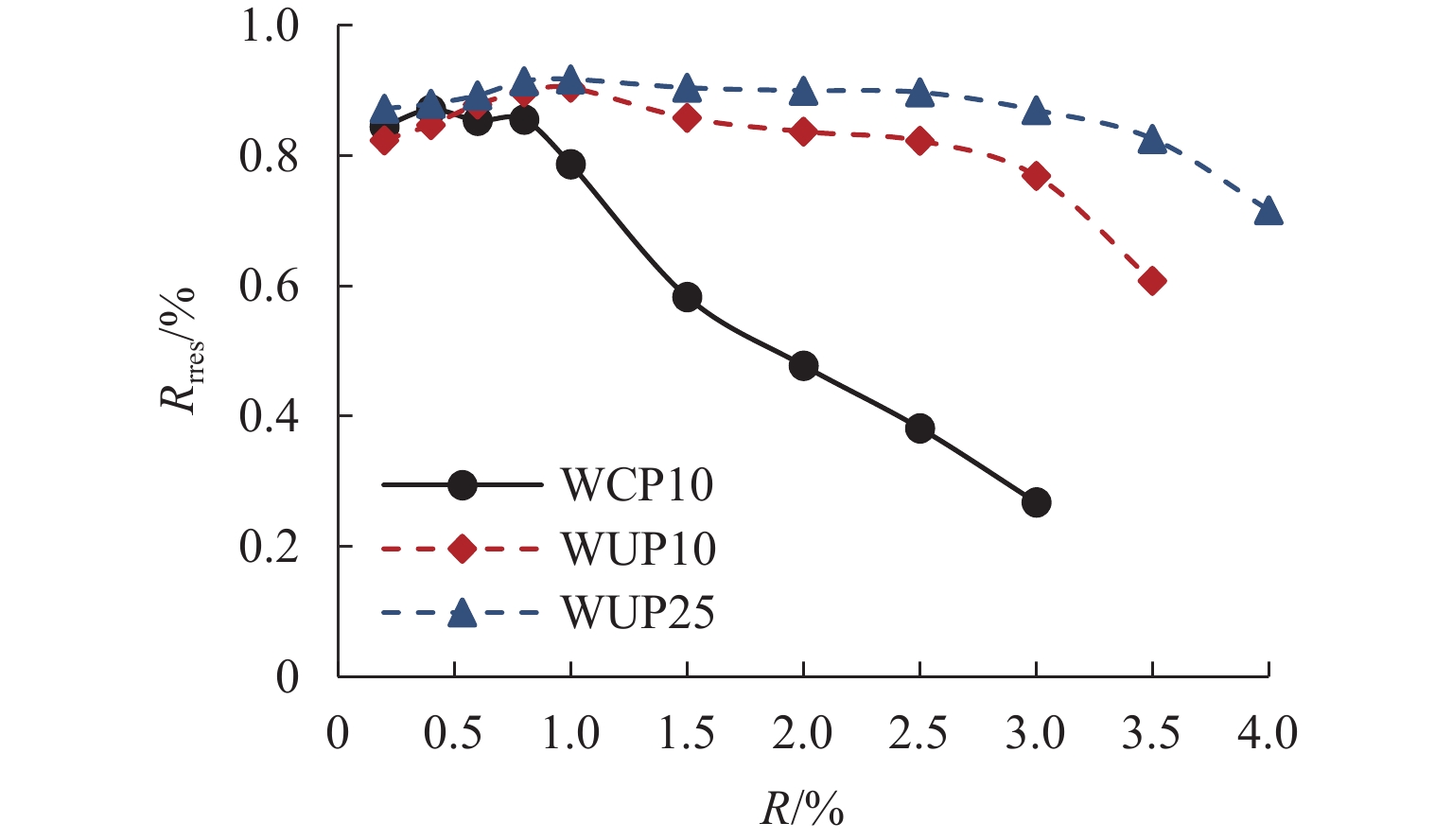为研究复掺钢纤维和多壁碳纳米管(MWCNTs)的超高性能混凝土(UHPC)在不同循环应力幅值下的自感知性能,对钢纤维体积掺量为2%、不同MWCNTs掺量下的UHPC在不同循环应力幅值下的自感知性能进行试验研究. 结果表明:UHPC的初始电阻率随MWCNTs掺量的增加先升高后降低,加入0.15%的MWCNTs能提高UHPC的导电性;MWCNTs的加入可以提高试样的重复性,当MWCNTs掺量为0.15%时,试样具有最优的重复性,重复性系数为0.019,且交流电阻变化率与应力之间具有较优的线性关系,线性度为0.97;试样 UHPC0、UHPC0.05的应力灵敏度和应变灵敏度随应力的增加先增加后减小,而试样UHPC0.1、UHPC0.15的应力灵敏度和应变灵敏度则随着应力的增加呈逐渐减小的趋势;试样UHPC0.15在不同循环应力幅值下最高应变灵敏度和应力灵敏度分别为71.6%和0.16%/MPa,均出现在应力为10 MPa时;当MWCNTs掺量为0.15%时,UHPC具有最优的自感知性能.