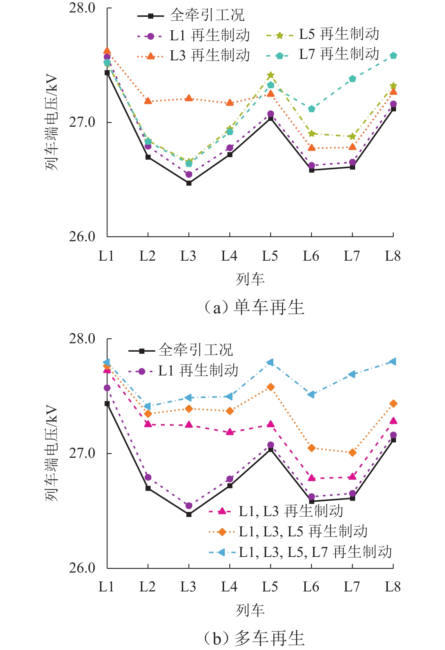 高压专线贯通供电系统是一种实现长距离、无分相的新型牵引供电方案. 为准确掌握该系统的运行特性,在考虑高压输电线路并联电容和车网耦合关系的基础上,采用二端口网络理论对贯通高压输电网进行简化;同时,通过恒功率负载模拟列车负荷,构建高压专线贯通供电系统的潮流等效模型;基于该模型,采用前推回代法实现列车动态潮流计算,并理论分析牵引网电流分配、系统等效阻抗的变化规律及其影响因素;最后,仿真分析在不同工况下牵引网电压分布、牵引变电所功率分配以及空载环流的传输特性. 研究结果表明:在轻载运行时,贯通高压输电网采用电缆的方案会导致线路末端电压显著提高;再生列车有助于改善网压水平,并能高效利用再生能量;线路空载时,通过保持各牵引变压器的实际变比一致以及减少贯通高压输电网的长度,可以有效降低空载环流.