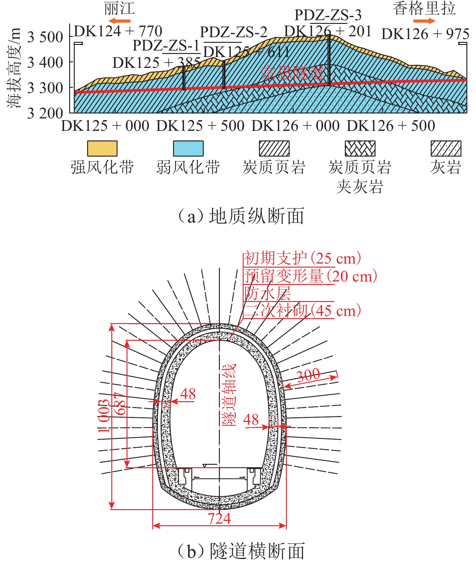 为克服超前导洞用于软岩隧道围岩大变形控制时存在的局限性,深入分析软岩大变形特征及其存在的问题,提出基于“超前应力释放 + 环向(滞后)注浆 + 加长锚杆”的变形控制方式. 首先,借助软岩峰后刚度与强度统一劣化模型与统一强度准则得到超前导洞及正洞围岩的弹塑性解;然后,利用FLAC3D有限差分软件实现软岩峰后刚度与强度统一劣化模型的本构开发,得到超前导洞及正洞围岩的变形及应力分布;最后,对软化模量、注浆参数、超前导洞半径和两掌子面间距等影响因素进行分析. 研究结果表明:超前导洞可以有效释放围岩挤压变形,岩体松动破碎是造成释放层及正洞围岩变形过大、稳定性下降的主要原因,环形(滞后)注浆可以有效控制扩挖过程中的围岩松动变形,并改善围岩应力分布,提高围岩承载能力;软化模量取值越大时超前导洞围岩变形越大,注浆参数取值越大时正洞围岩变形越小,增大超前导洞开挖半径、增加两掌子面间距(超前导洞及正洞)均可使初始地应力释放更加充分.