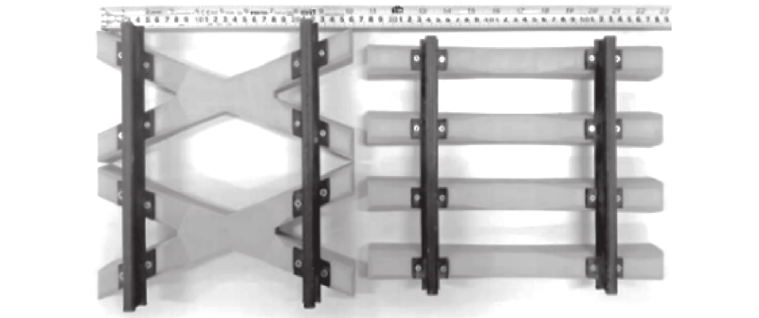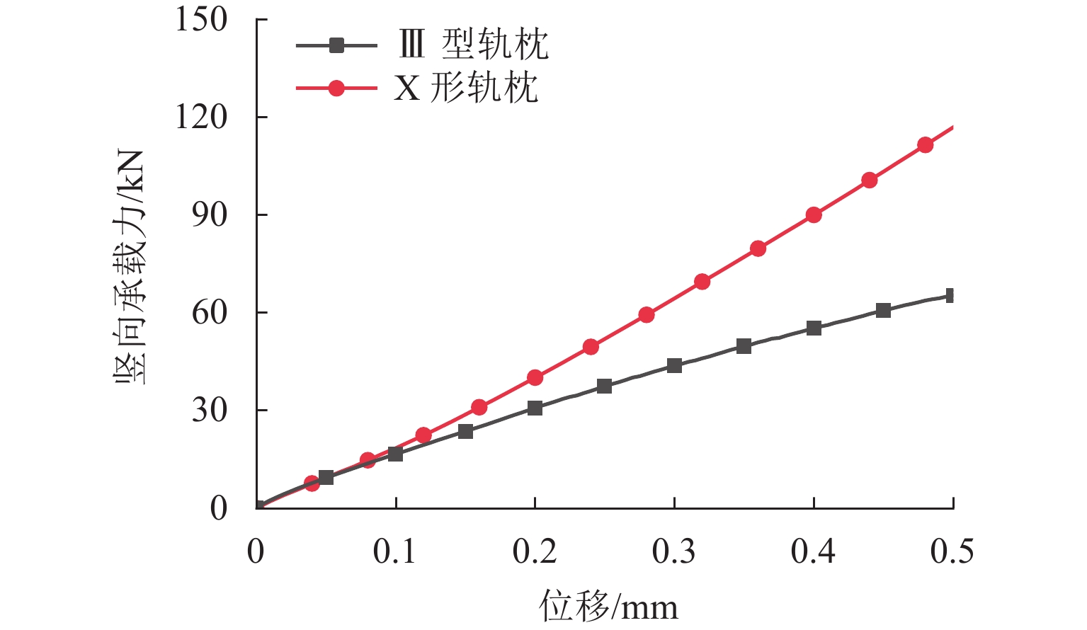 为研究新型X形轨枕道床承载力和横向阻力特性,开展X形轨枕与Ⅲ型轨枕道床刚度和横向阻力的缩尺模型试验,通过离散元法建立有砟轨道三维模型,并从细观上对比分析2种轨枕道床的竖向荷载传递机制及横向阻力. 研究结果表明:在最大竖向荷载时,X形轨枕道床的竖向位移(刚度)相较于Ⅲ型轨枕降低了约26.3%(提高了约46.6%);与Ⅲ型轨枕相比,X形轨枕的横向极限阻力提高了约22.4%,有效提高了轨道横向稳定性; X形轨枕与枕间道砟的接触面积和应力均明显增加,轨枕接触力沿X形4个夹角范围扩散,使得枕间道砟充分参与分担荷载;由于X形轨枕的叉形结构能够提升枕间道砟的参与,使得道床刚度和横向阻力分别提升约29.2%和31.6%,与试验结论较接近.