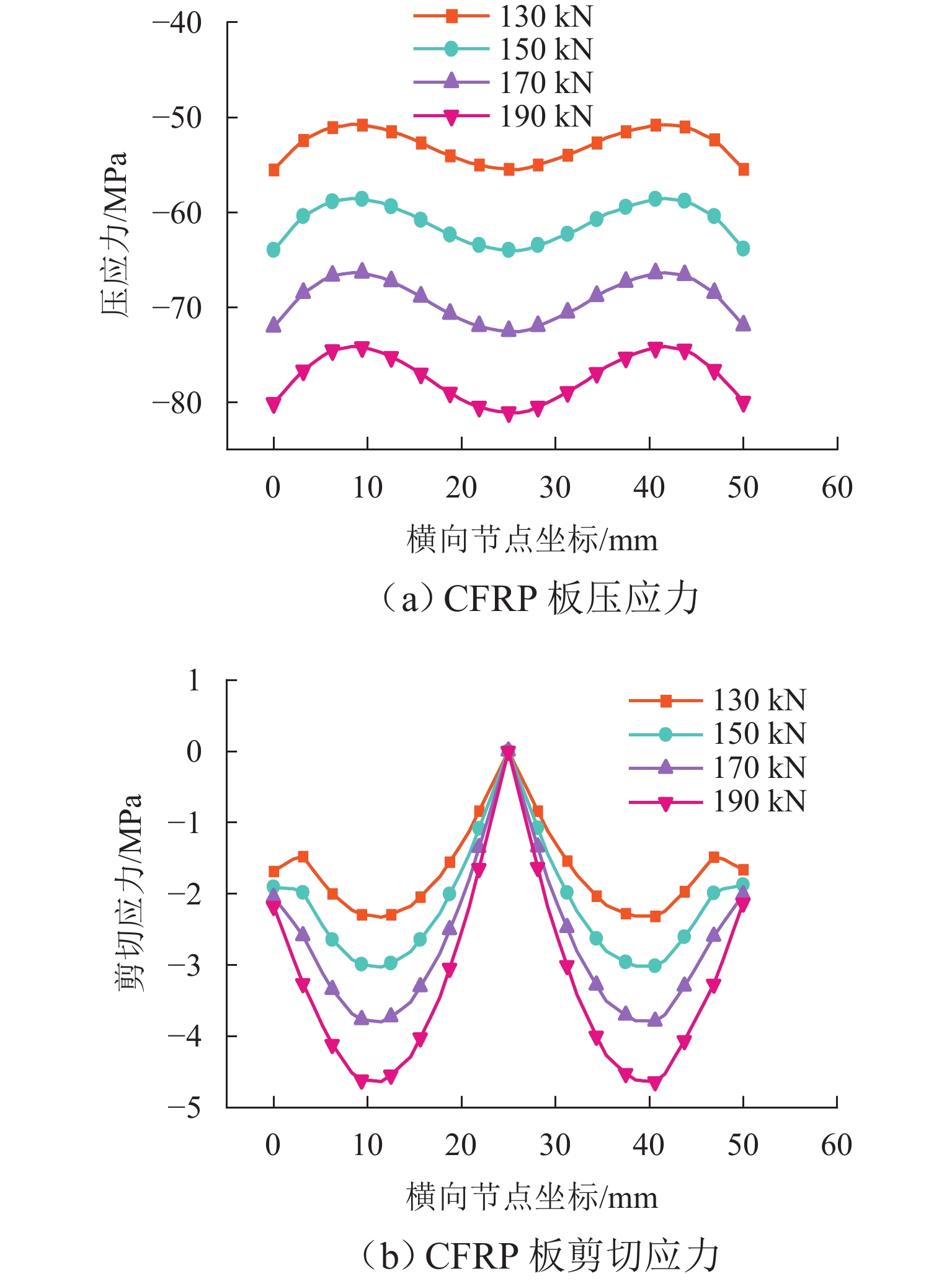 针对传统碳纤维增强复合材料(CFRP)板锚具压应力沿横向分布不均匀,导致张拉过程中板材易发生撕裂破坏的问题,研制了一种CFRP板新型夹持式锚具. 新型锚具在中轴线上布置预压螺栓,同时设定螺栓长度,通过控制螺栓的位移量对CFRP板施加定量的压紧力,分析新型锚具的受力机理;使用有限元软件ANSYS进行模拟,分析影响锚固性能的关键因素;对厚度为2 mm、宽度为50 mm的CFRP板进行静载张拉试验. 研究结果表明:1) 新型锚具的锚固性能与夹片厚度、外夹板厚度及螺栓预紧力密切相关;当夹片厚度为20 mm时,横向上CFRP板的压应力分布较均匀,最大与最小压应力之差仅为9.8 MPa;当上、下外夹板的厚度分别为30 mm和20 mm时,各构件的弯曲应力均保持在安全范围内;当螺栓预紧力为170 kN时,CFRP板的压应力水平显著提高,而剪切应力始终处于较低水平. 2) 在静载张拉试验中,新型锚具承受的最大张拉力为260.7 kN,锚固效率达到了108.63%;CFRP板的破坏形式为炸丝破坏,未出现撕裂等异常破坏形式,锚具的静载锚固性能优异.