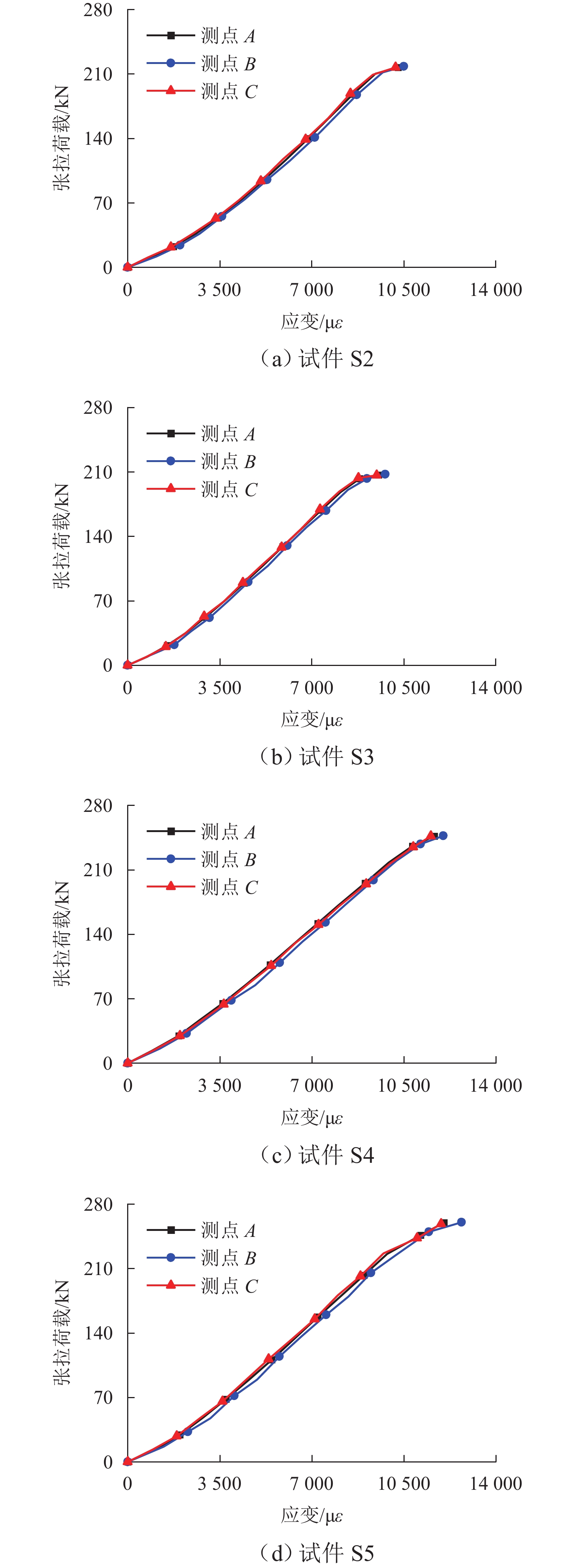 为简化钢壳-混凝土组合索塔结构构造并提升建造效率,对新型的带肋直钩钢筋剪力键进行研究. 首先,对该新型剪力键设计推出与拔出荷载试验,得到各试件的剪切承载力、拔出承载力及相应破坏特征;其次,结合有限元软件进行分析,建立试件破坏模式与承载力之间的对应关系;最后,在分析模型基础上,进一步探讨埋深对剪力键性能的影响,并提出直钩钢筋剪力键的剪切与拔出承载力计算式. 研究结果表明:直钩钢筋剪力键在剪切荷载下表现为加劲肋屈服,在拔出荷载下表现为混凝土冲切破坏,并伴随着直钩钢筋屈服,破坏模式的不同使剪力键的承载力差距最大可达5倍;推出荷载下钢混黏结力占总承载力的30%;直钩钢筋的位置决定了其在拔出荷载下的受力特点及失效模式;减小直钩钢筋与加劲肋间距后,剪力键的拔出承载力提升了35%,增大1倍剪力键埋深后,拔出承载力提升了1倍.