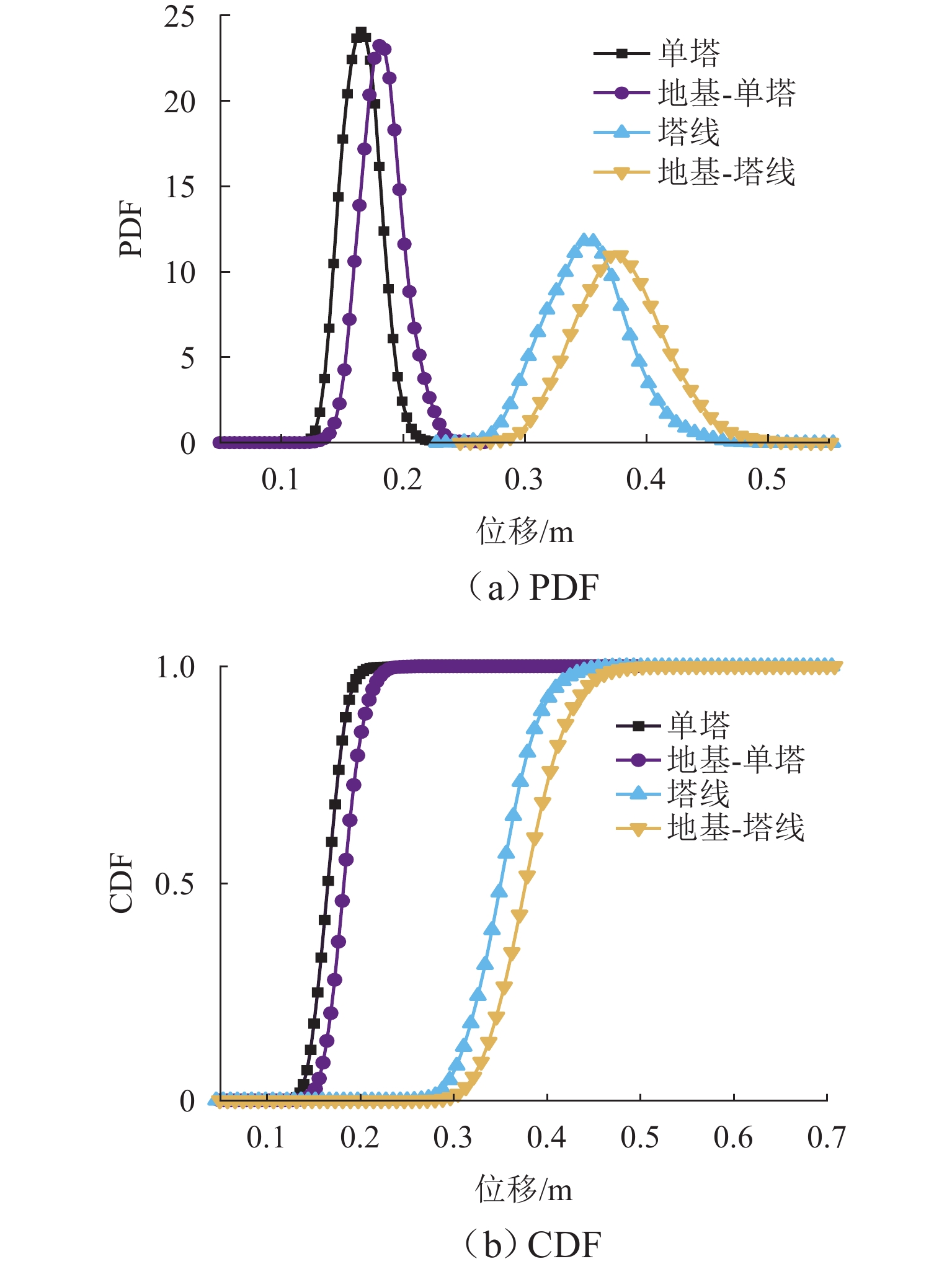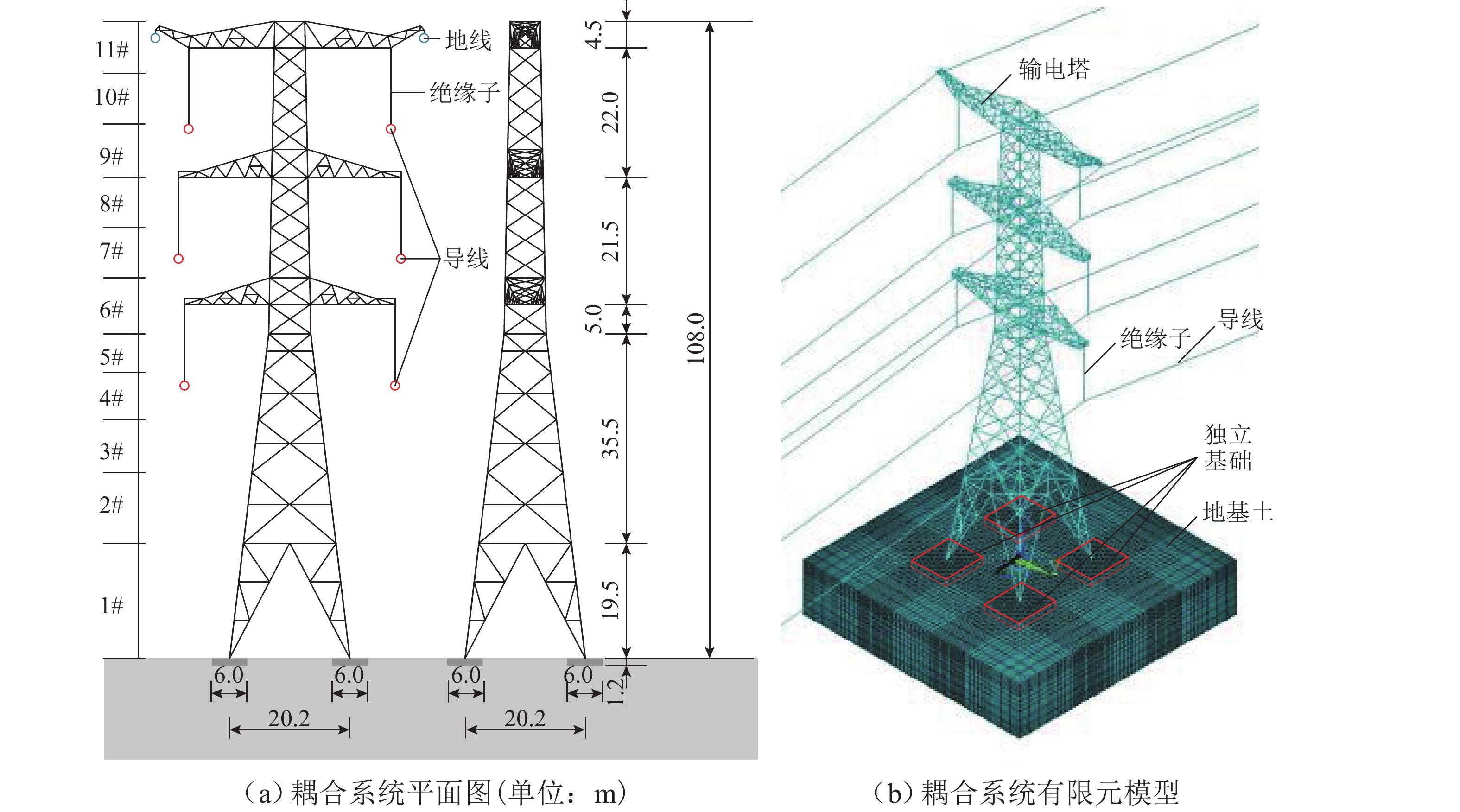 为研究土-结构相互作用和塔线耦合作用对输电塔整体可靠度的影响,建立随机风荷载作用下考虑土-结构相互作用的输电塔-线耦合系统简化力学模型,其中,输电塔、绝缘子、导线和基础4个结构采用多质点力学模型进行模拟,地基土对耦合系统动力响应的影响采用S-R (swing-rocking)模型进行模拟,耦合系统所处随机风场则采用谱表示-降维方法进行模拟;其次,基于耦合系统简化力学模型和概率密度演化方法(PDEM),提出适用于考虑土-结构相互作用的输电塔-线耦合系统整体可靠度分析方法;最后,以某特高压交流输变电线路的直线塔为例,分别计算塔顶位移的概率密度函数、均值和标准差,并以塔顶位移极值为控制变量求解耦合系统的整体可靠度. 分析结果表明:考虑塔线耦合作用后,塔顶位移响应极值的分布函数明显右移,结构失效概率由1.605 × 10−38增加至0.932;考虑土-结构相互作用后,塔顶位移响应极值的分布函数轻微右移,结构失效概率有所增加,与固定端工况相比,中硬土、中软土和软弱土工况下的结构失效概率增幅分别为4.44%、5.22%和11.76%;与蒙特卡洛方法相比,所提方法可高效获得塔顶位移的概率信息,其计算时间仅为蒙特卡洛方法的1/33,而均值与标准差的二范数相对误差在3%以内.