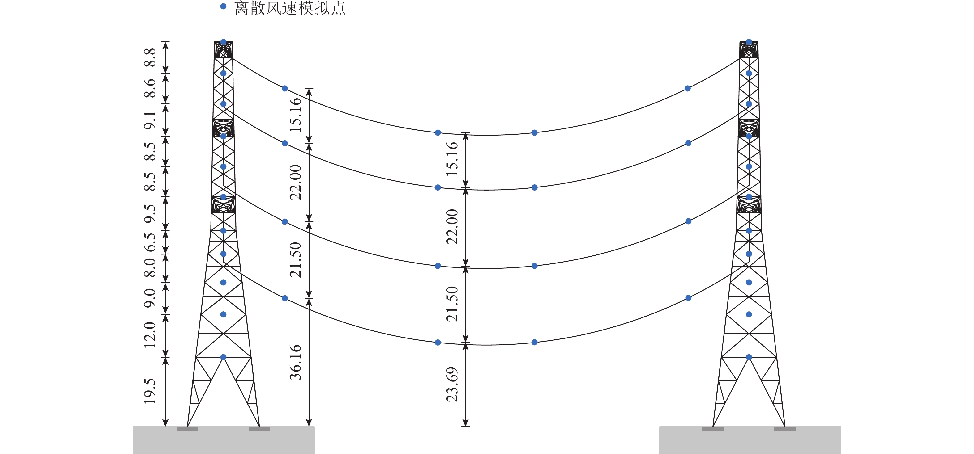 为准确评估长短腿输电塔整体安全水平,依托某500 kV输电线路工程,建立长短腿输电塔精细化数值模型,根据《架空输电线路杆塔结构设计技术规程》(DL/T 5486—2020)以及数值分析结果,给出长短腿输电塔不同失效模式下的功能函数,并结合等价极值事件原理加以等价描述;随后,基于低偏差序列方法生成随机样本点,计算样本响应并获得等价功能函数统计矩;最后,通过改进最大熵法计算长短腿输电塔整体可靠指标. 分析结果表明:本文方法所计算的长短腿输电塔整体可靠指标的相对误差和计算成本分别为Monte Carlo仿真(MCS)法的0.46%和0.05%;单一失效模式下得到的长短腿输电塔可靠指标较整体可靠指标偏低,建议采用整体可靠指标衡量长短腿输电塔的安全水平;塔腿级差和长短腿输电塔整体可靠指标成反比,16 m级差工况下的长短腿输电塔整体可靠指标较等长腿降低了15.72%,设计时应避免级差过大的情况.