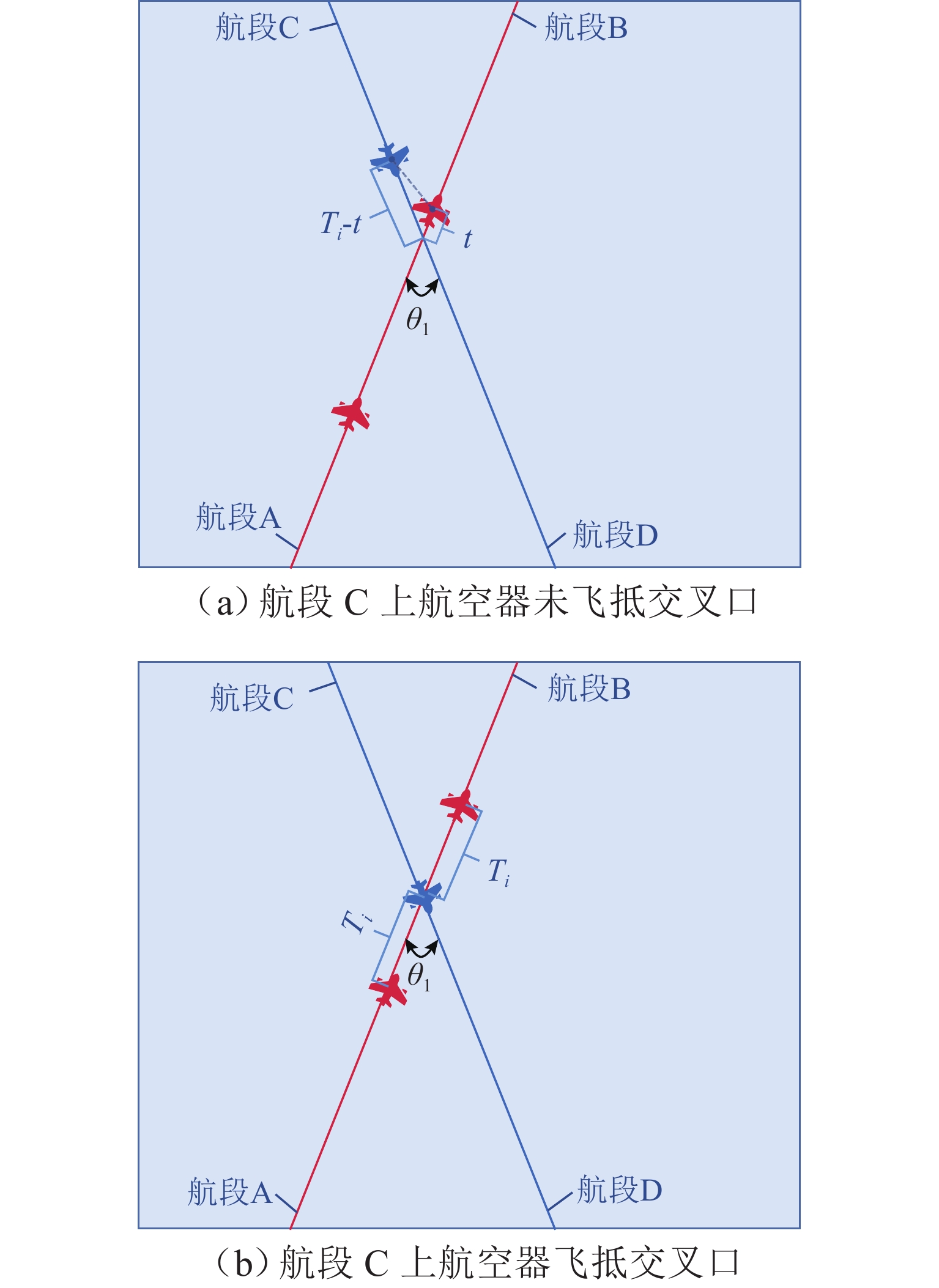 航路交叉口的管制调配一直是影响空管效率的核心问题,以往研究多是针对少量架次航空器进行分析,本论文在航迹运行(trajectory based operations,TBO)环境下,基于自主改航对航路交叉口处交叉航班流的预先冲突解脱方法进行研究. 首先,基于航空器间水平安全间隔,转换计算航空器过交叉口时应保持的最小纵向时间间隔;其次,提出占用时间窗概念,建立基于占用时间窗的冲突检测模型,并考虑航班流通过时间最短制定综合通行原则,判定冲突中需要改航的航空器;最后,针对航班流通行中传统启发式算法时效性不足的问题,利用转弯角限制缩减可行解空间,并建立以改航时间最短为目标的改航点搜索模型,提高求解速度和搜索精度. 以我国东北部典型高空扇区为例,验证所提方法在实际交叉航路运行下的有效性. 仿真结果表明:所提冲突解脱方法的多米诺效应指数(domino effect parameter,DEP)相较于传统等待解脱方法降低了64.7%,且传统方法的解脱总用时为所提冲突解脱方法的7.6倍,所提解脱方法对空域稳定性的影响更小,解脱效率更高.