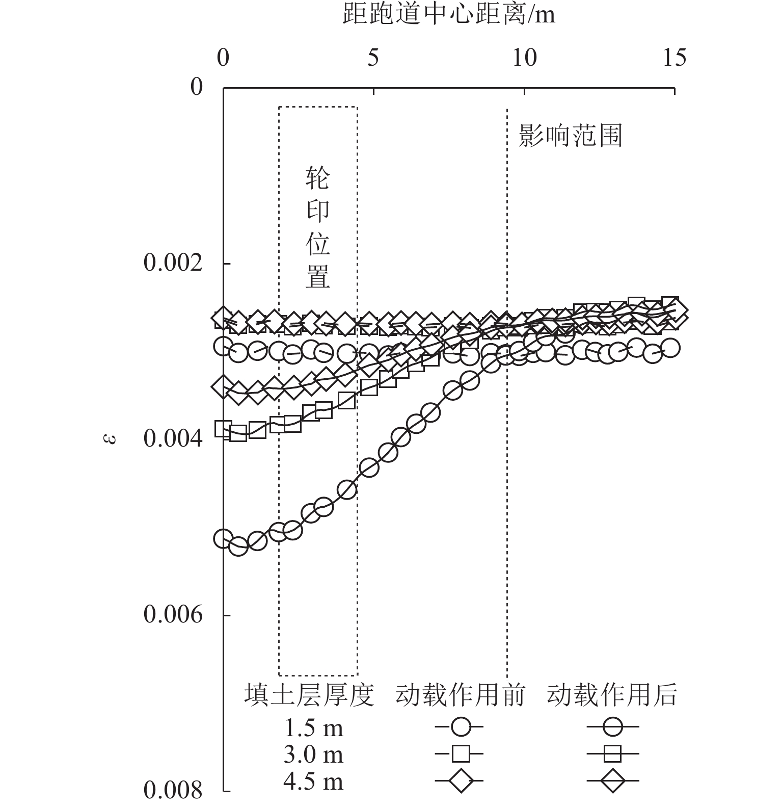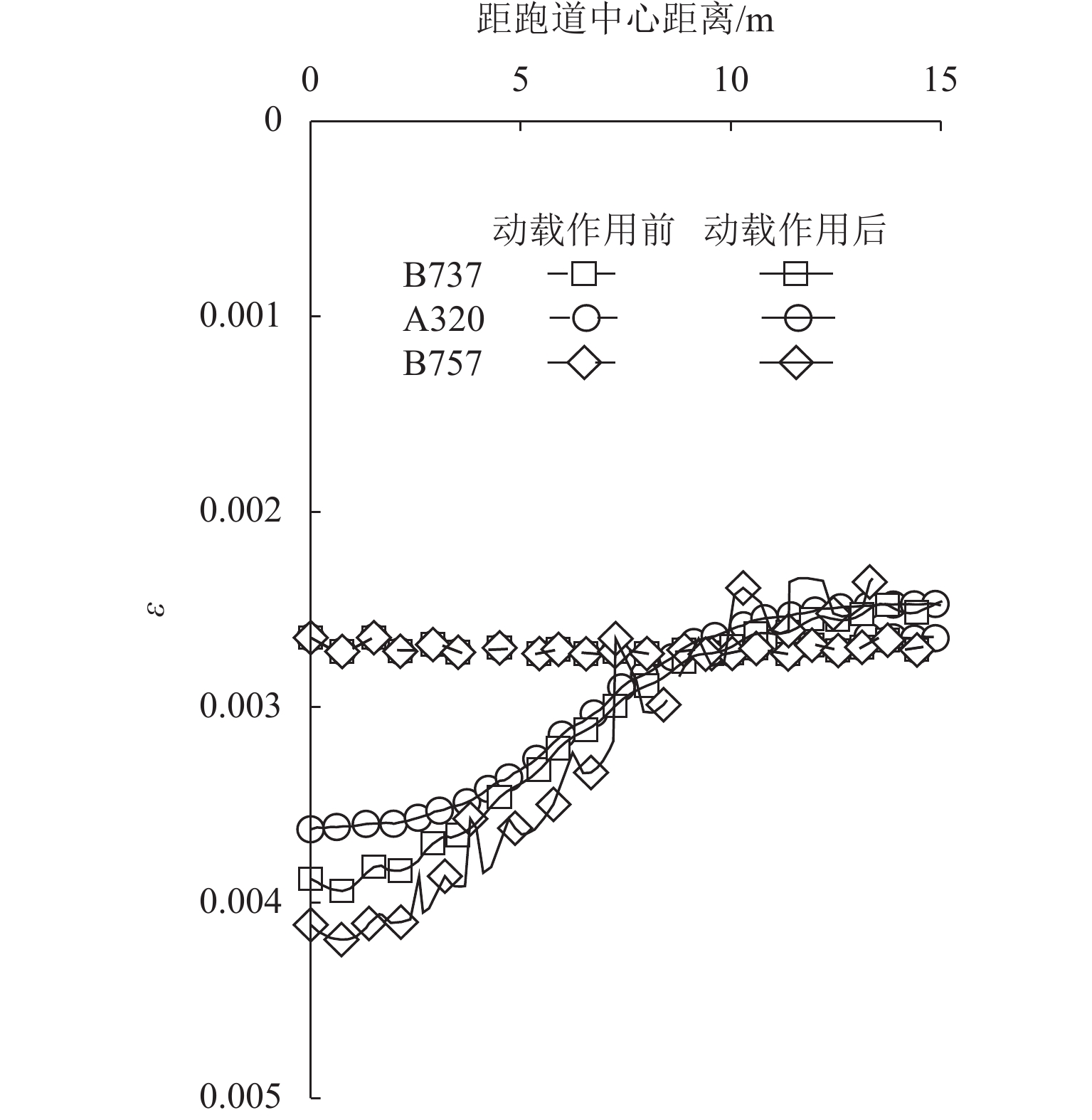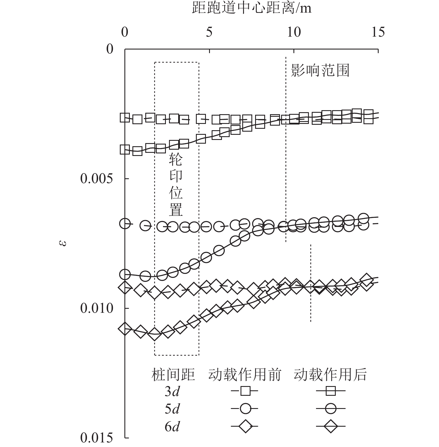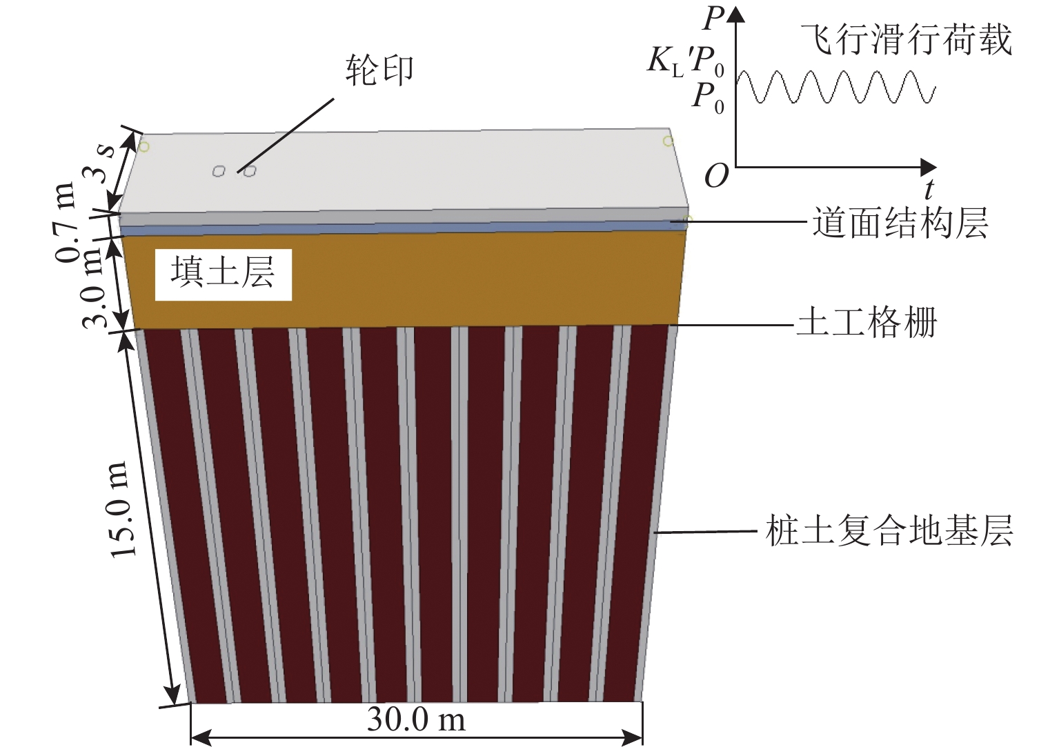 桩网复合地基可以有效降低道路工程工后沉降,近年来常用于对我国沿海机场飞行区的跑道和机坪系统进行地基处理. 然而,目前关于桩网复合地基的研究多集中于工前静承载特性,缺乏跑道下地基工前沉降完成后,飞机滑行荷载作用对跑道桩网复合地基影响的定量评价研究. 本文通过改变填土层厚度、桩间距、飞机机型等参数,基于动载影响系数、工后差异沉降比和土拱度退化系数等指标,利用有限元软件ABAQUS对飞机滑行荷载作用下跑道桩网复合地基的受力变形特性进行数值分析,量化飞机滑行荷载对跑道桩网复合地基承载和沉降特性的影响. 研究表明:当填土层厚度由4.5 m减小至1.5 m时,土拱削弱约3.3%至15.1%;当桩间距由6 d减小至3 d时,土拱削弱约7.8%至12%,软土层位置处的工后差异沉降比可能超过规范建议值;填土层厚度越小、桩间距和飞机重量越大、起落架荷载越集中,飞机滑行荷载作用后的土拱弱化越明显.