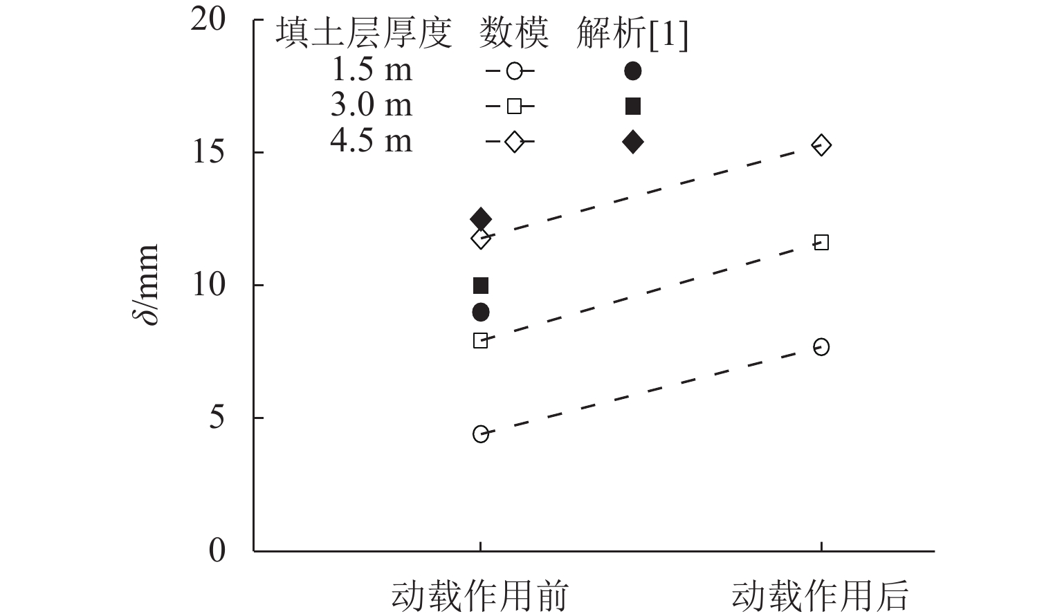 玄武岩纤维泡沫混凝土可作为无砟轨道路基新型填料,为分析其动力性能,通过室内动三轴试验,获取玄武岩纤维泡沫混凝土的动力学基本参数;进一步,构建玄武岩纤维泡沫混凝土无砟轨道路基的足尺室内模型,揭示其在周期荷载作用下的动力学响应;此外,建立玄武岩纤维泡沫混凝土的车-轨-路三维有限元计算模型,分析路基结构在高速行车条件下的变形特性. 研究结果表明:掺入玄武岩纤维后,泡沫混凝土的动力学性能得到增强,玄武岩纤维掺量为0.6%时,达到最优配比,相较于未掺加玄武岩纤维的泡沫混凝土动强度提高90.8%,阻尼比提高46.2%,动模量提高98.1%;玄武岩增强泡沫混凝土无砟轨道路基的整体性较好,荷载能够较为均匀的向下扩散,路基表层动应力最大值为19.37 kPa;通过数值模拟分析,路基振动在高频荷载作用下能够更快恢复平稳状态,在高速行车条件下玄武岩纤维泡沫混凝土路基表面的最大沉降为0.30 mm,相比于传统路基结构,玄武岩纤维泡沫混凝土路基在列车荷载作用下,振动响应频率高,产生的噪声更易控制.