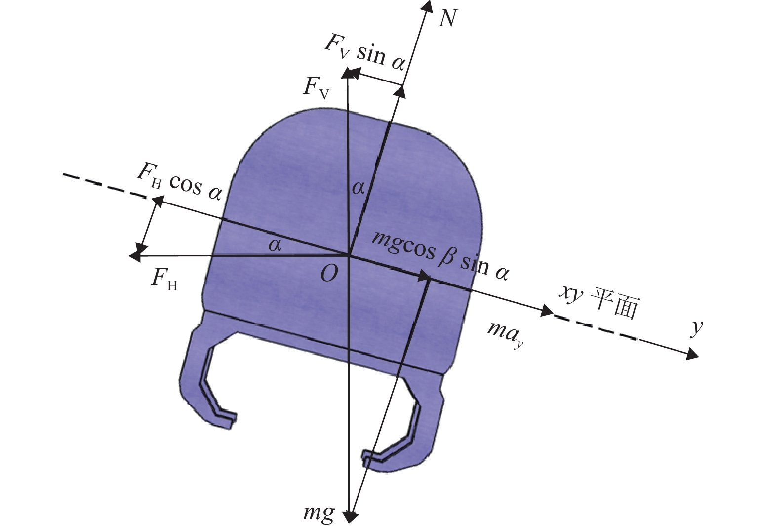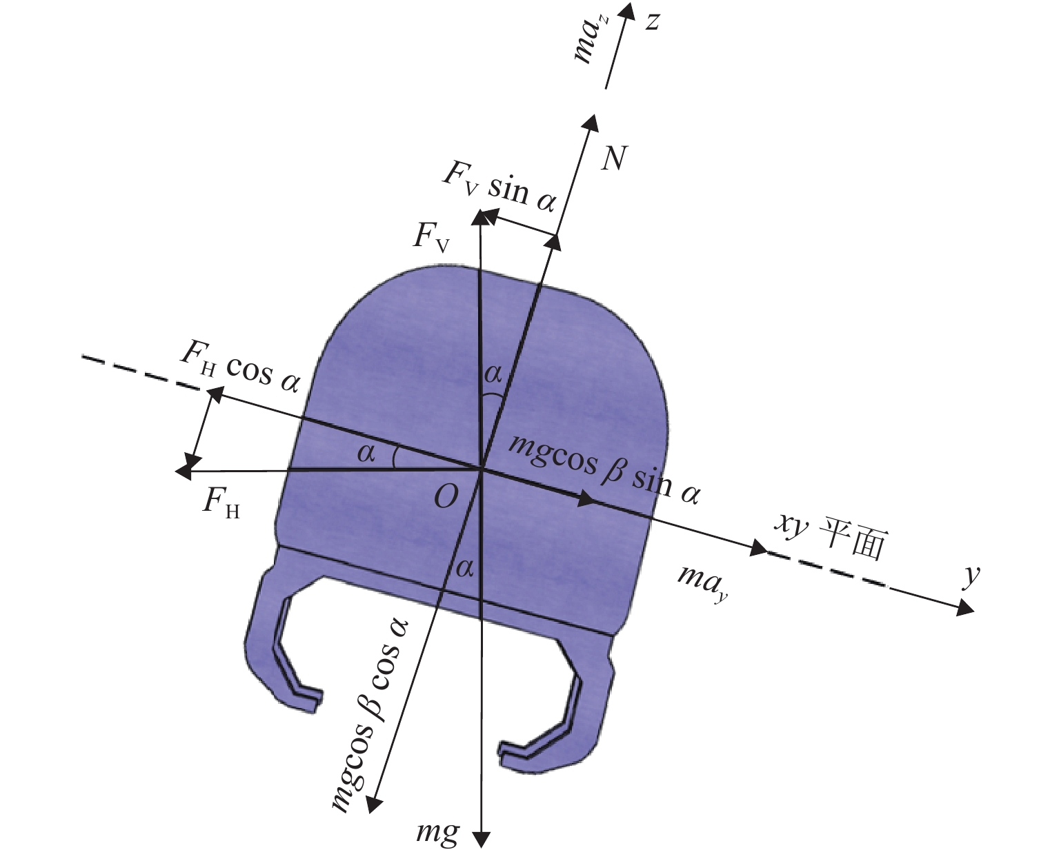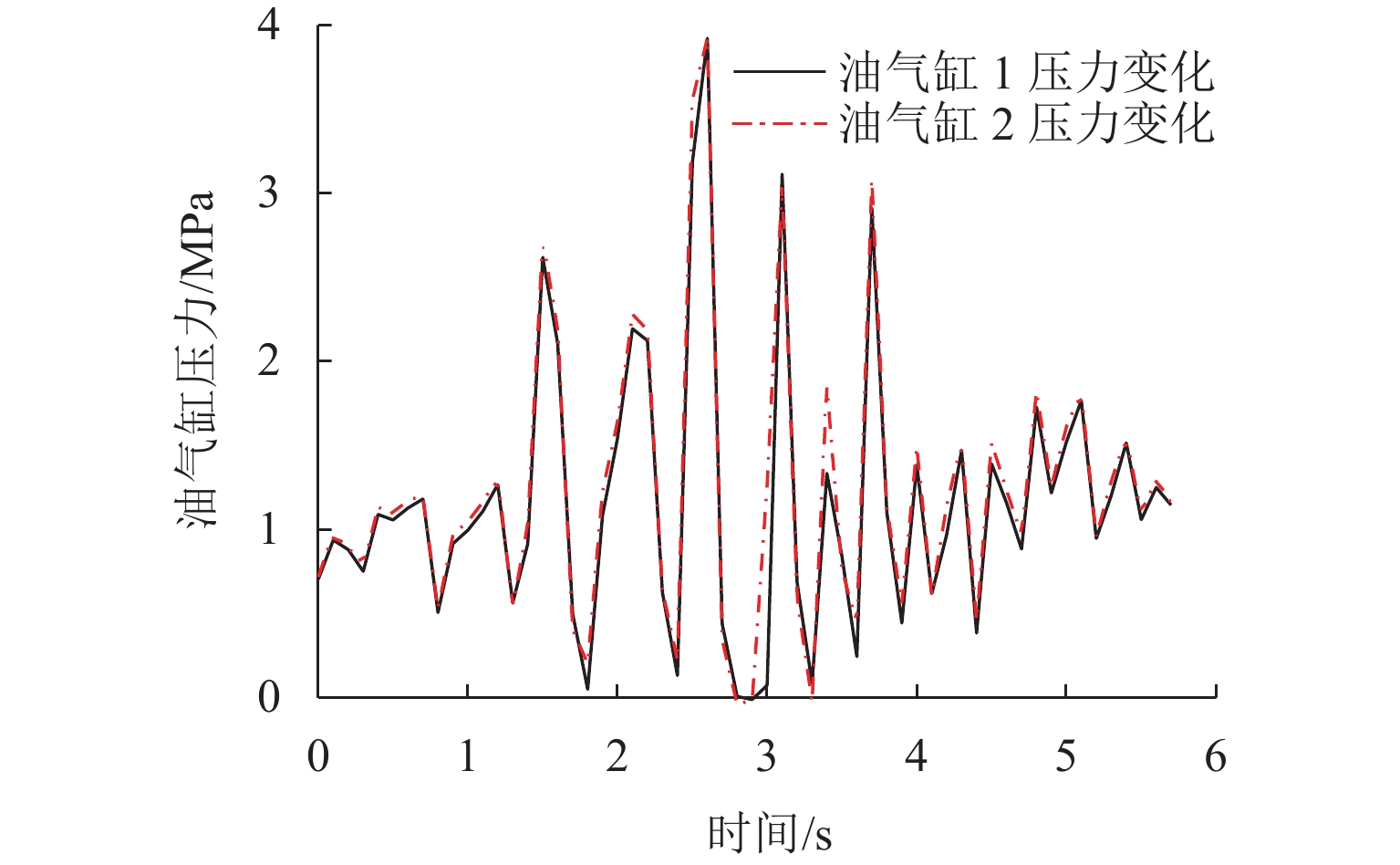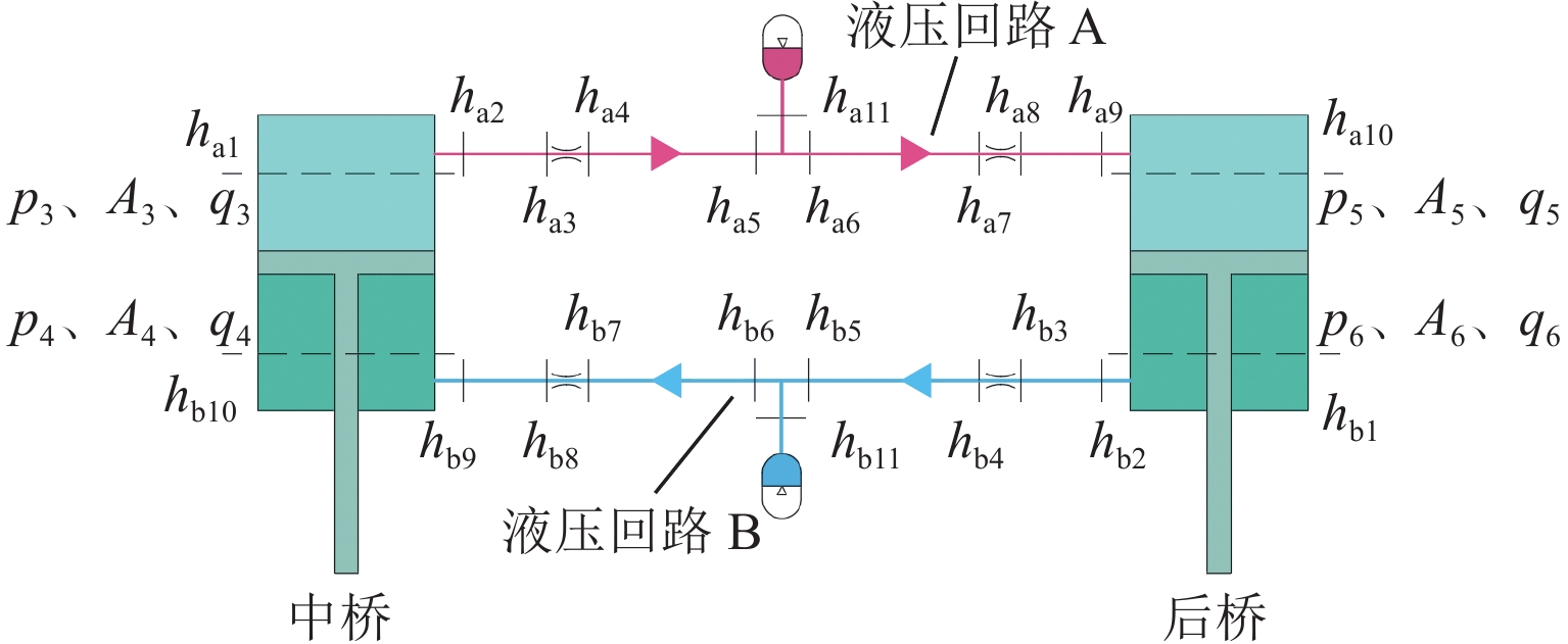三轴矿用自卸车中、后桥为主要承重桥,其输出特性影响车辆的行驶稳定性. 为解决矿用自卸车的承载问题和提高车辆的行驶稳定性,本文提出一种液压互联悬架;采用阻抗传递矩阵法推导悬架的压力—流量关系式,得到1/2车辆机械—液压耦合方程;通过求解系统状态矩阵实现对车身—车轮运动模态的完全解耦,并开展路面障碍试验对悬架的工作特性进行研究. 分析结果表明:所提悬架系统能够降低车身垂跳运动的固有频率,增大阻尼比,使车身垂跳振动快速衰减,且改善了中、后轮的动载荷分配情况;当车辆以15 km/h速度驶越120 mm高的三角形障碍物时,其2个油气缸产生的最大压差达1.15 MPa,峰值响应出现在0.3 s内,有效实现负载均匀;2个油气缸位移量近似相等而方向互逆,很好地起到位移补偿作用,有助于维持行驶过程中的车身姿态.