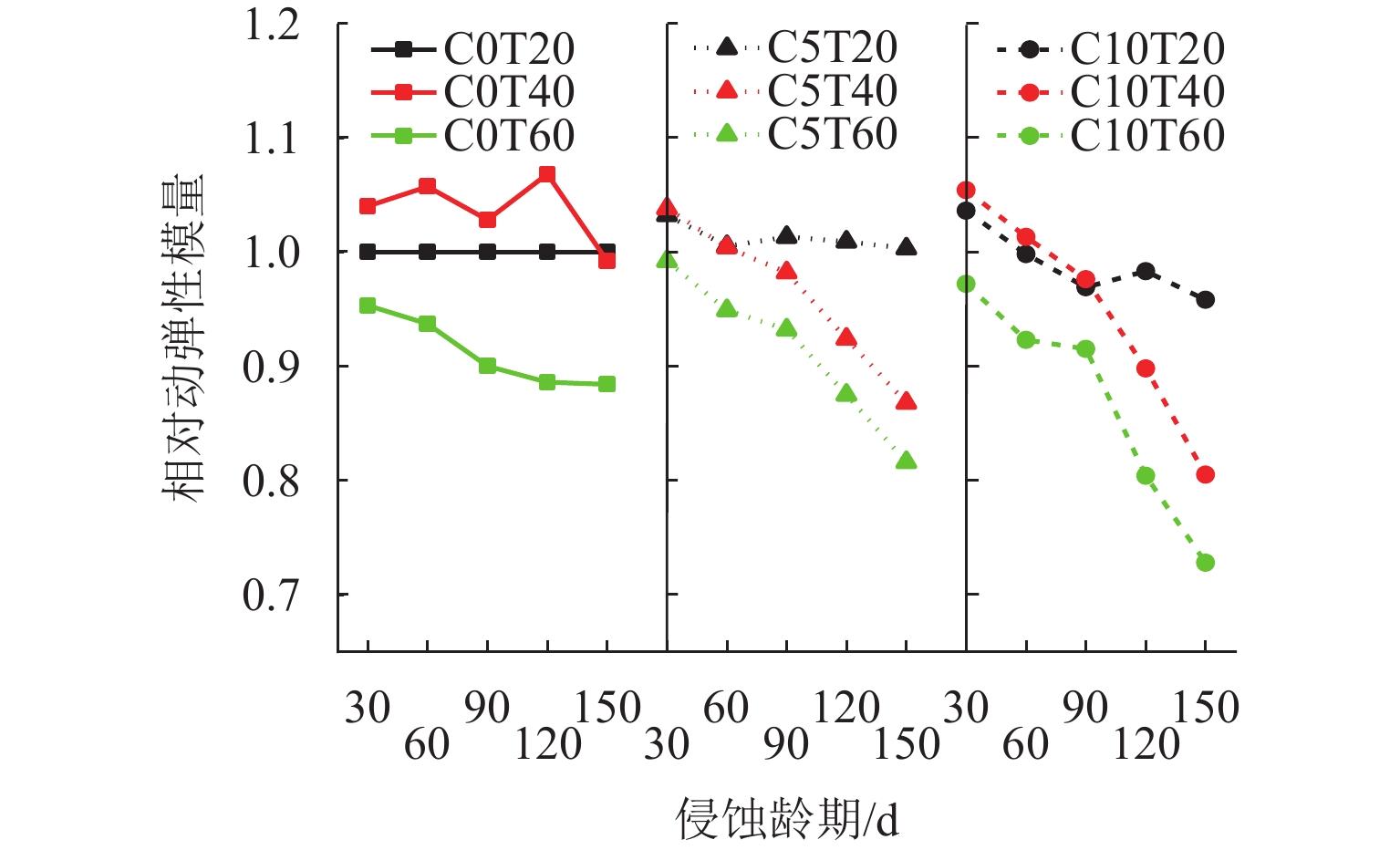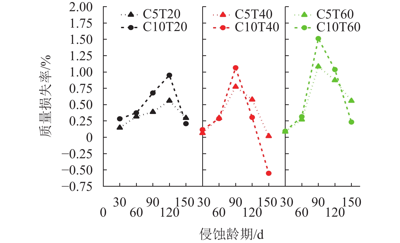 针对海洋工程中混凝土材料在硫酸盐环境中的损伤劣化问题,开展在半浸泡环境中不同浓度的硫酸盐溶液侵蚀和高温作用下混凝土侵蚀试验、微观试验. 通过分析混凝土试件质量变化、动弹性模量、侵蚀产物的成分与含量、硫酸根离子含量,结合微观测试,揭示半浸泡和硫酸盐环境下高温-干湿循环作用下混凝土损伤劣化规律. 结果表明:硫酸盐侵蚀初期,硫酸盐侵入浸泡区混凝土内部,促进水化作用,混凝土内部的AFT、石膏会填充初始缝隙,产物起到填充作用及骨架作用;后期产物量继续增大会对混凝土造成破坏,动弹性模量下降12%~30%;吸附区的混凝土同时受到干湿循环和热循环,2种循环会加剧毛细作用、扩散作用,使盐类在混凝土内部易产生结晶,热循环会加速骨料和水泥基体脱离,形成更多的孔隙,有利于盐类继续侵入;硫酸钠的物理结晶前期填充作用对强度有提升,质量提升0.50%~1.75%,但后期的破坏作用更加严重.