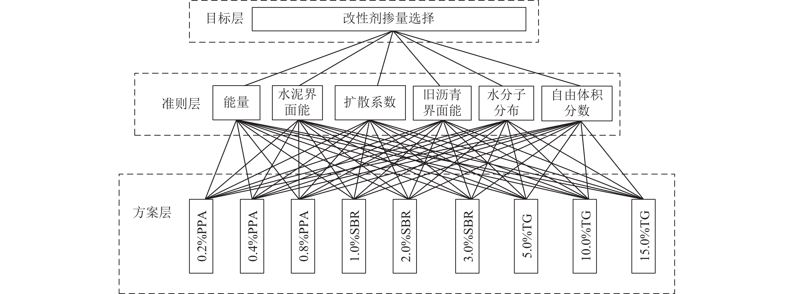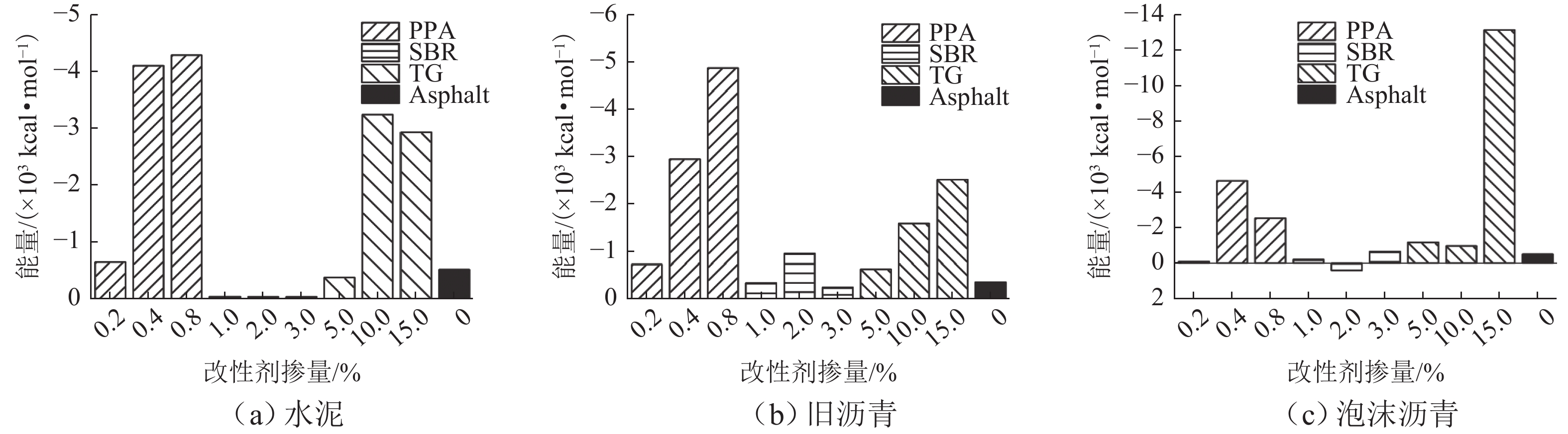 为提升泡沫沥青冷再生胶结料(由水泥、旧沥青和泡沫沥青组成)的黏聚性,选取多聚磷酸(PPA)、丁苯橡胶(SBR)、甘油三酯(TG)3种泡沫沥青冷再生胶结料改性剂,利用分子动力学模拟方法建立不同改性剂及其掺量的泡沫沥青冷再生胶结料分子模型;基于界面能、相互作用能、扩散系数和水分子径向分布函数(RDF)等指标研究不同改性剂及其掺量对泡沫沥青冷再生胶结料界面特性改善效果的影响规律,并通过显著性检验和层次分析法分别探讨各指标间显著性差异和改性方案的权重. 结果表明:添加0.8% 的PPA对泡沫沥青冷再生胶结料黏聚性提升效果最为显著,其可以有效改善泡沫沥青冷再生胶结料的界面能、自由体积和水损害影响,亦使泡沫沥青冷再生胶结料具有较好的扩散能力;添加15.0%TG对泡沫沥青冷再生胶结料的相互作用能改善效果较好,但扩散性能较差;添加2.0%的SBR对泡沫沥青冷再生胶结料的抗水损害能力改善效果最好,但SBR总体改性效果一般; 不同剂掺量之间不存在显著性影响,各改性剂掺配方案相互独立且各有优势.