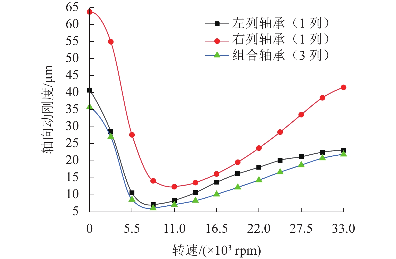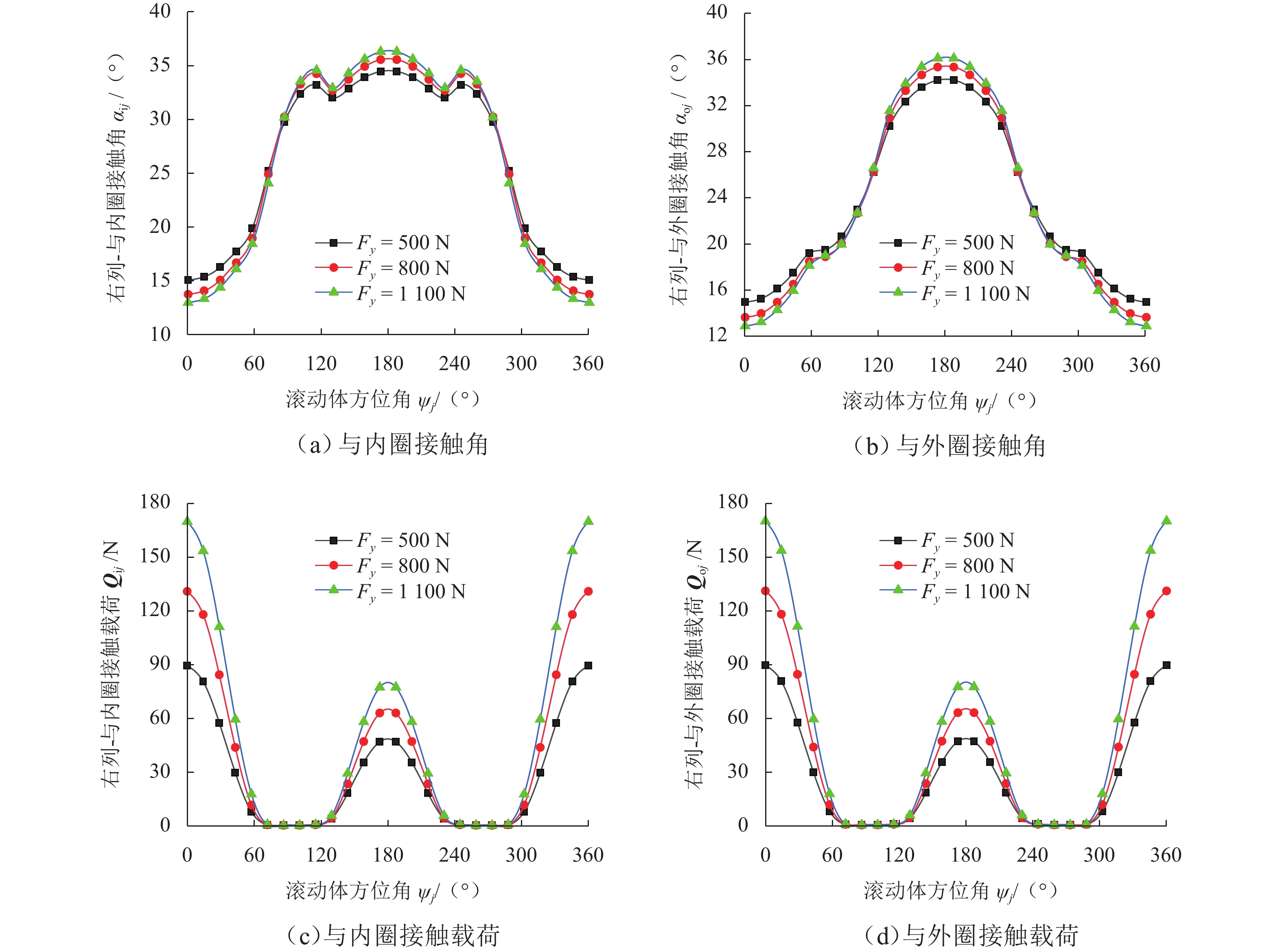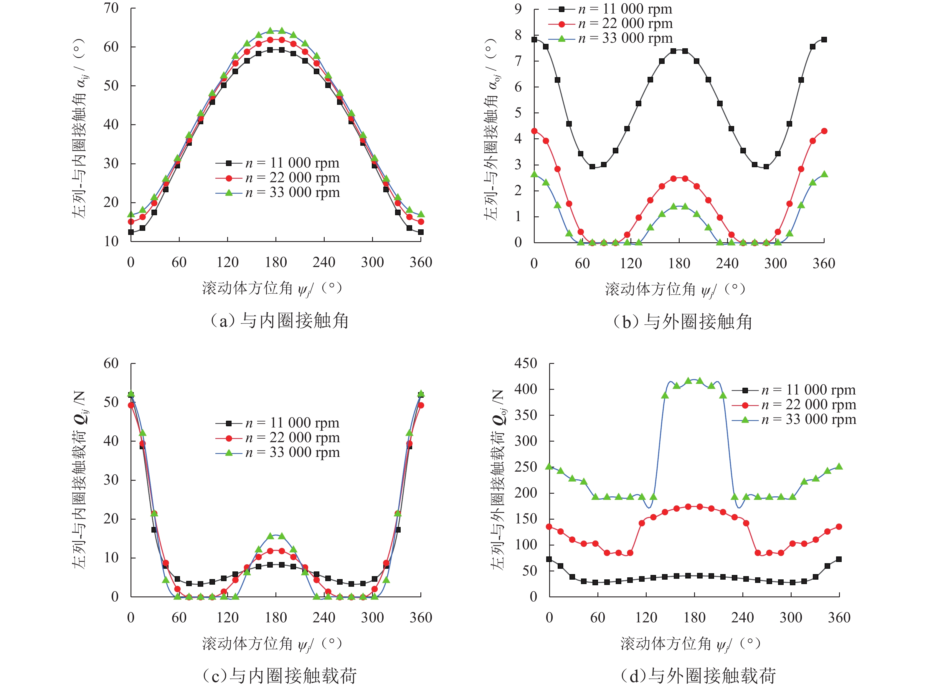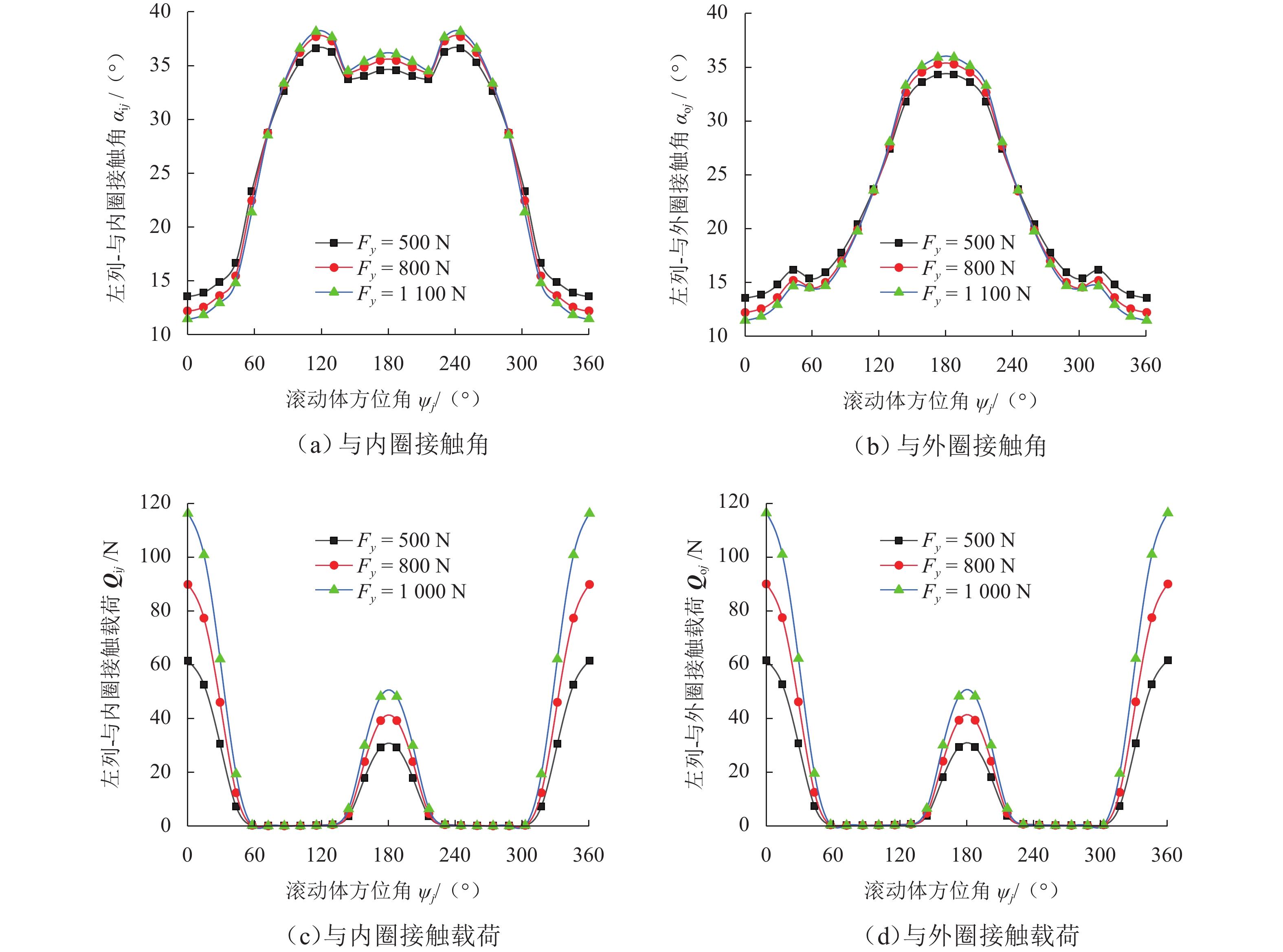 支承轴承的动态载荷分布及刚度特性是引起机床振动和切削稳定性的重要因素,为对比分析TBT组合式球轴承左列和右列在不同工况下的动态载荷分布与动刚度特性,本文基于非线性弹性赫兹接触理论及琼斯哈里斯模型,结合滚动体-滚道接触状态判定准则,提出多列组合球轴承五自由度分析模型;采用改进的迭代算法求解,大大提高了迭代计算在不同外界条件波动下的求解收敛性,得到恒定预紧力作用下TBT组合式轴承组内轴承动态载荷分布和动刚度特性. 研究结果表明:转速、径向载荷、轴向载荷均会改变组合轴承的载荷分布及动刚度特性,且对左列和右列轴承影响效果不同;转速增加会导致组内轴承内部产生非完全接触区域,使轴承载荷分布发生震荡;相较于单个轴承在等效外界载荷条件下,组合轴承的径向动刚度较轴向动刚度提升效果更明显.