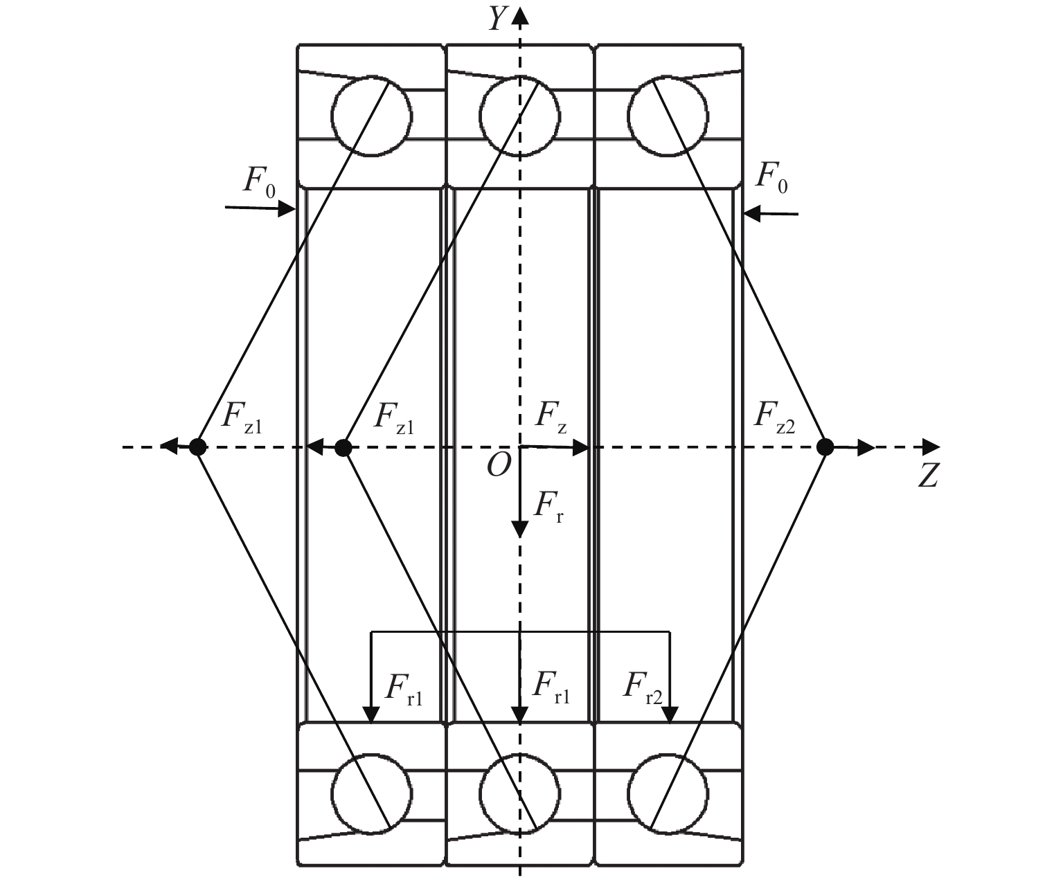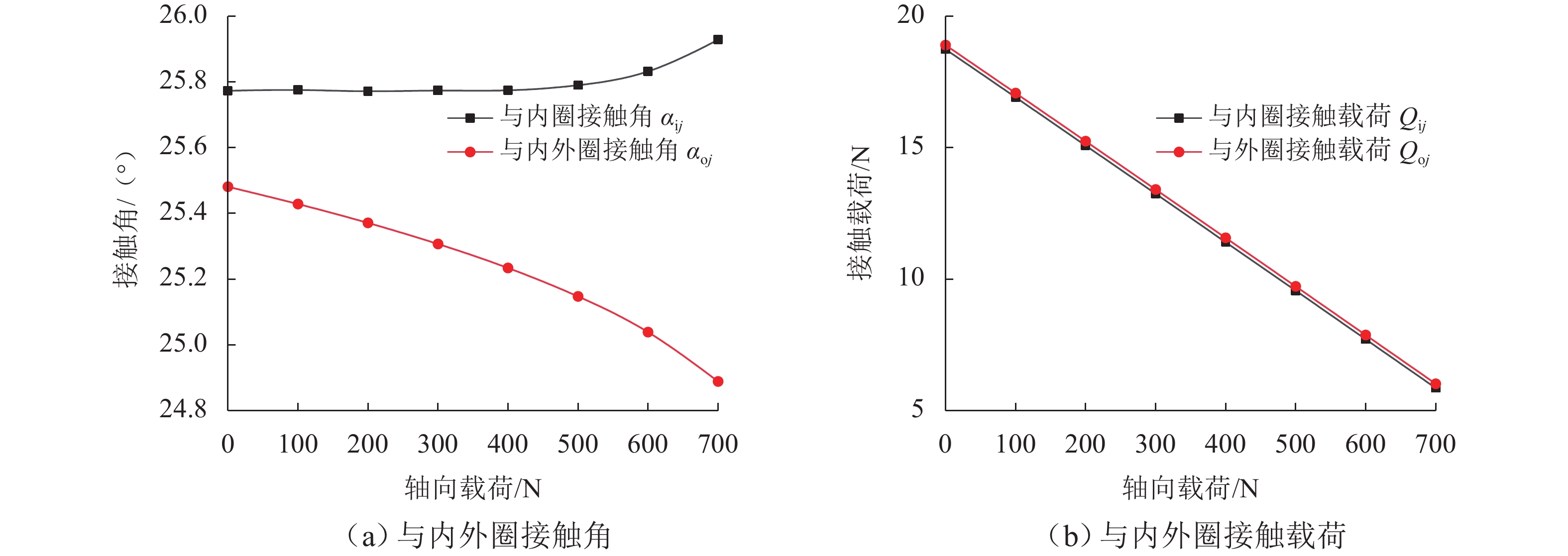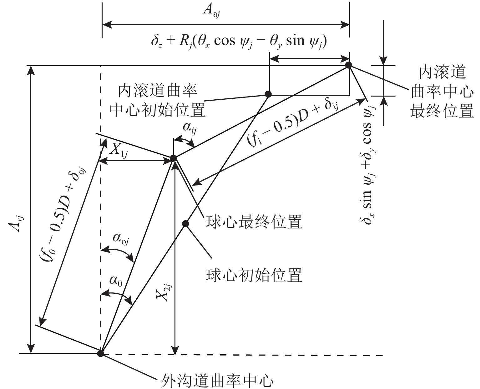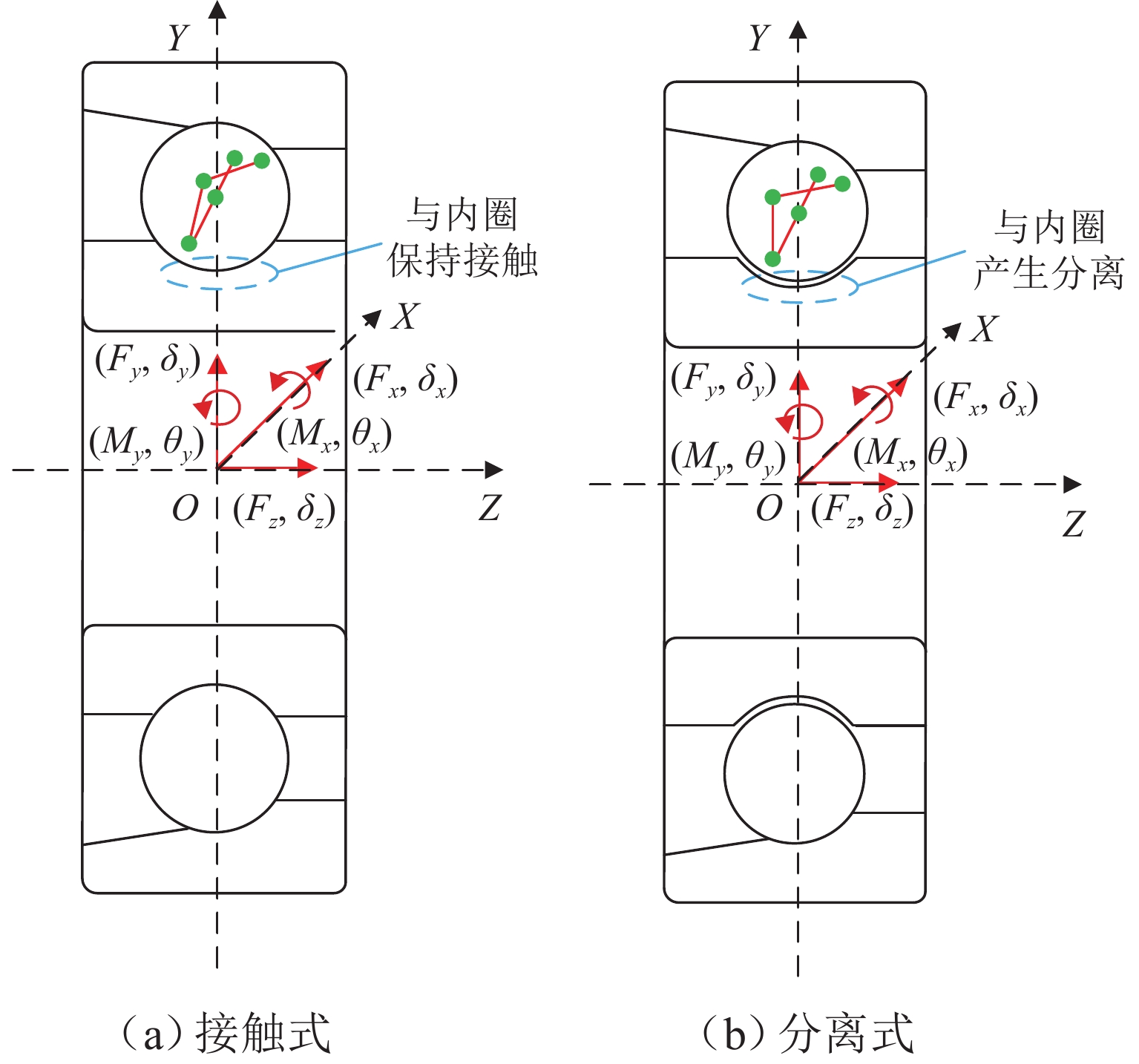 支承轴承的动态载荷分布及刚度特性是引起机床振动和切削稳定性的重要因素,为对比分析TBT组合式球轴承左列和右列在不同工况下的动态载荷分布与动刚度特性,本文基于非线性弹性赫兹接触理论及琼斯哈里斯模型,结合滚动体-滚道接触状态判定准则,提出多列组合球轴承五自由度分析模型;采用改进的迭代算法求解,大大提高了迭代计算在不同外界条件波动下的求解收敛性,得到恒定预紧力作用下TBT组合式轴承组内轴承动态载荷分布和动刚度特性. 研究结果表明:转速、径向载荷、轴向载荷均会改变组合轴承的载荷分布及动刚度特性,且对左列和右列轴承影响效果不同;转速增加会导致组内轴承内部产生非完全接触区域,使轴承载荷分布发生震荡;相较于单个轴承在等效外界载荷条件下,组合轴承的径向动刚度较轴向动刚度提升效果更明显.