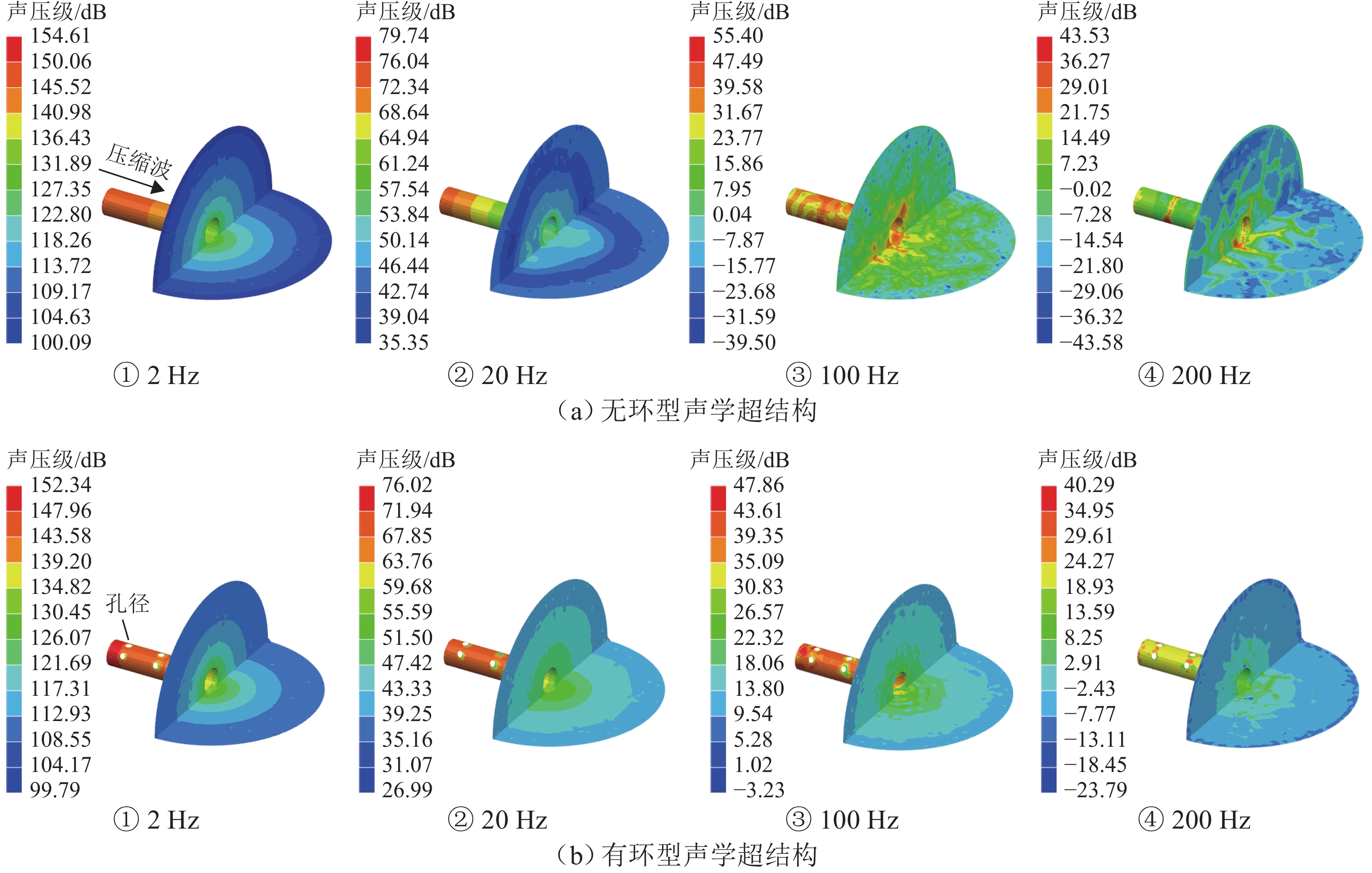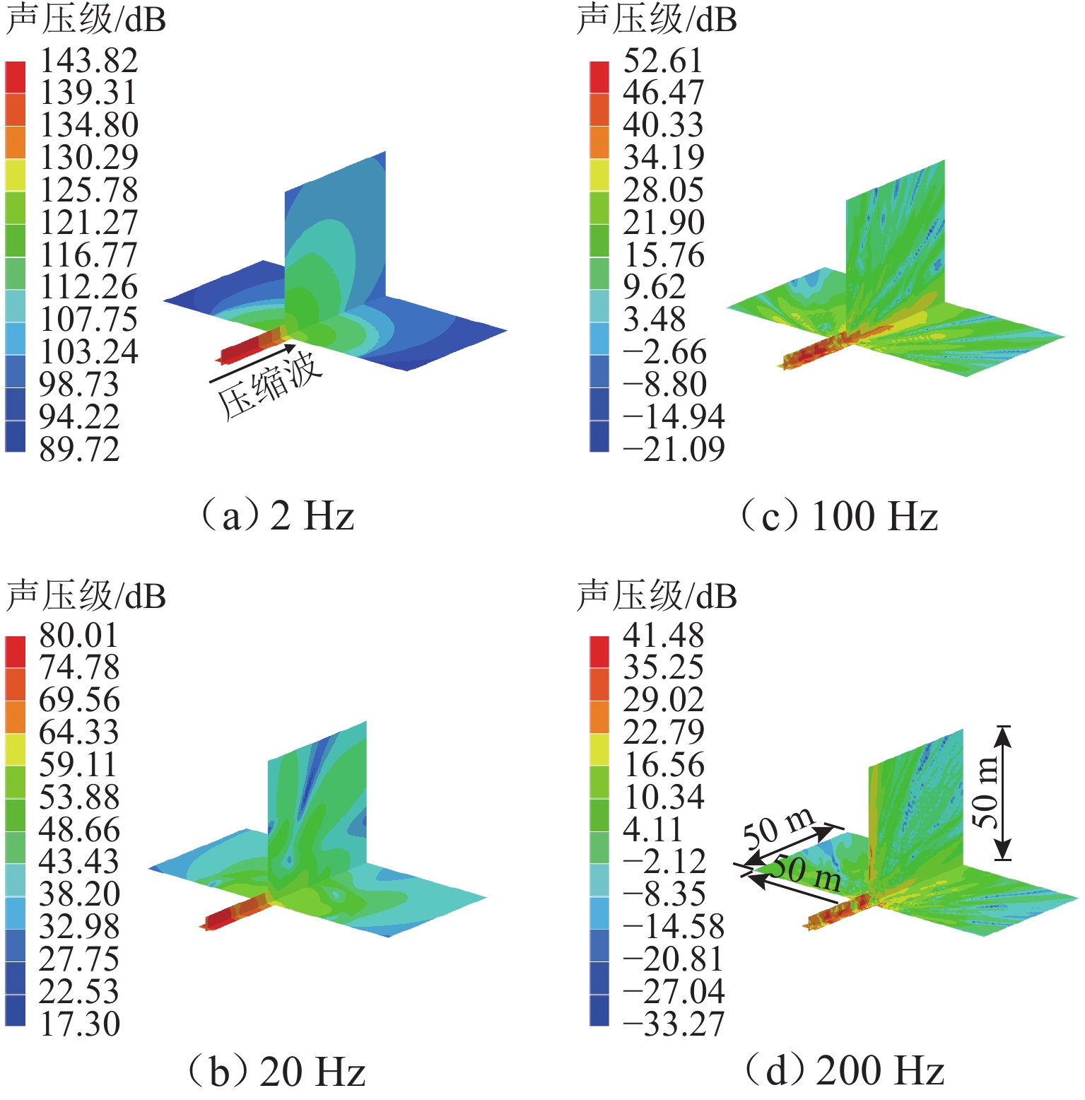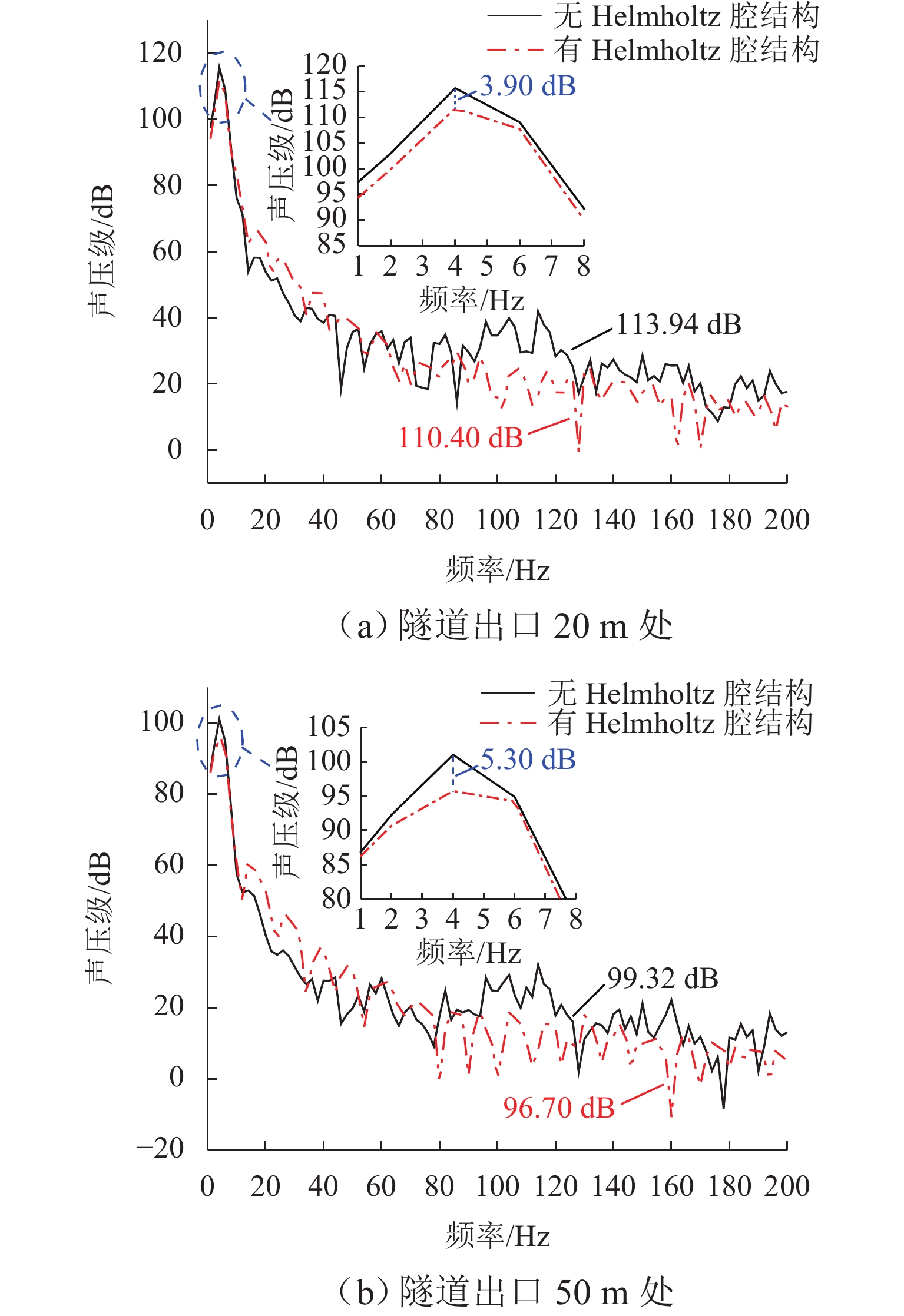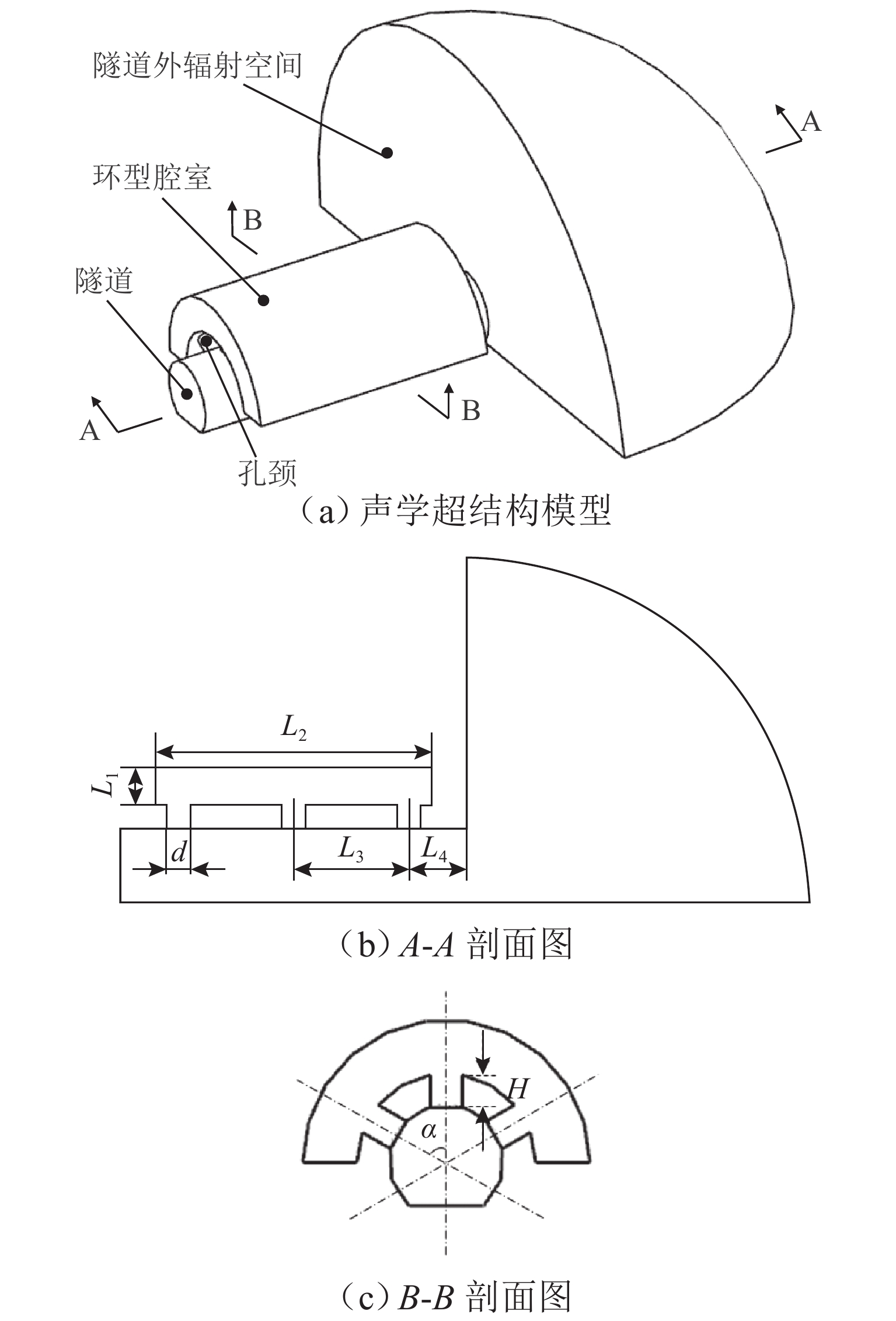 高速地铁进入隧道产生的初始压缩波传播到隧道出口时会产生微压波并引发噪声,某些情况下还会出现音爆现象,给当地居民带来严重的环境问题. 为有效控制隧道出口的微压波噪声,对微压波噪声的声学特性进行数值模拟研究,并提出一种针对低频微压波噪声的声学抑制结构. 首先,采用大涡模拟(LES)方法获取隧道出口的近场非定常流场数据,使用Ffowcs Williams-Hawkings (FW-H)声学类比来预测微压波噪声的声源类型;其次,基于非定常流场数据采用声学有限元法(AFEM)计算微压波噪声的远场辐射,并分析隧道洞口声学结构对微压波噪声的减缓效果;最后,通过动模型试验验证数值方法的准确性. 结果表明:当列车速度为160 km/h时,隧道出口微压波噪声中偶极子噪声占据主导地位;偶极子噪声以半椭球面的形式向外辐射,其能量主要集中在20 Hz频率以下,峰值频率为4 Hz;偶极子噪声沿隧道出口方向上的衰减满足指数衰减规律;隧道洞口增设声学结构后微压波噪声有明显降低,隧道洞口外不同纵向平面上的噪声声压级降低约3 dB,标准测点(20 m和50 m)处的声压级分别降低3.54 dB和2.62 dB.