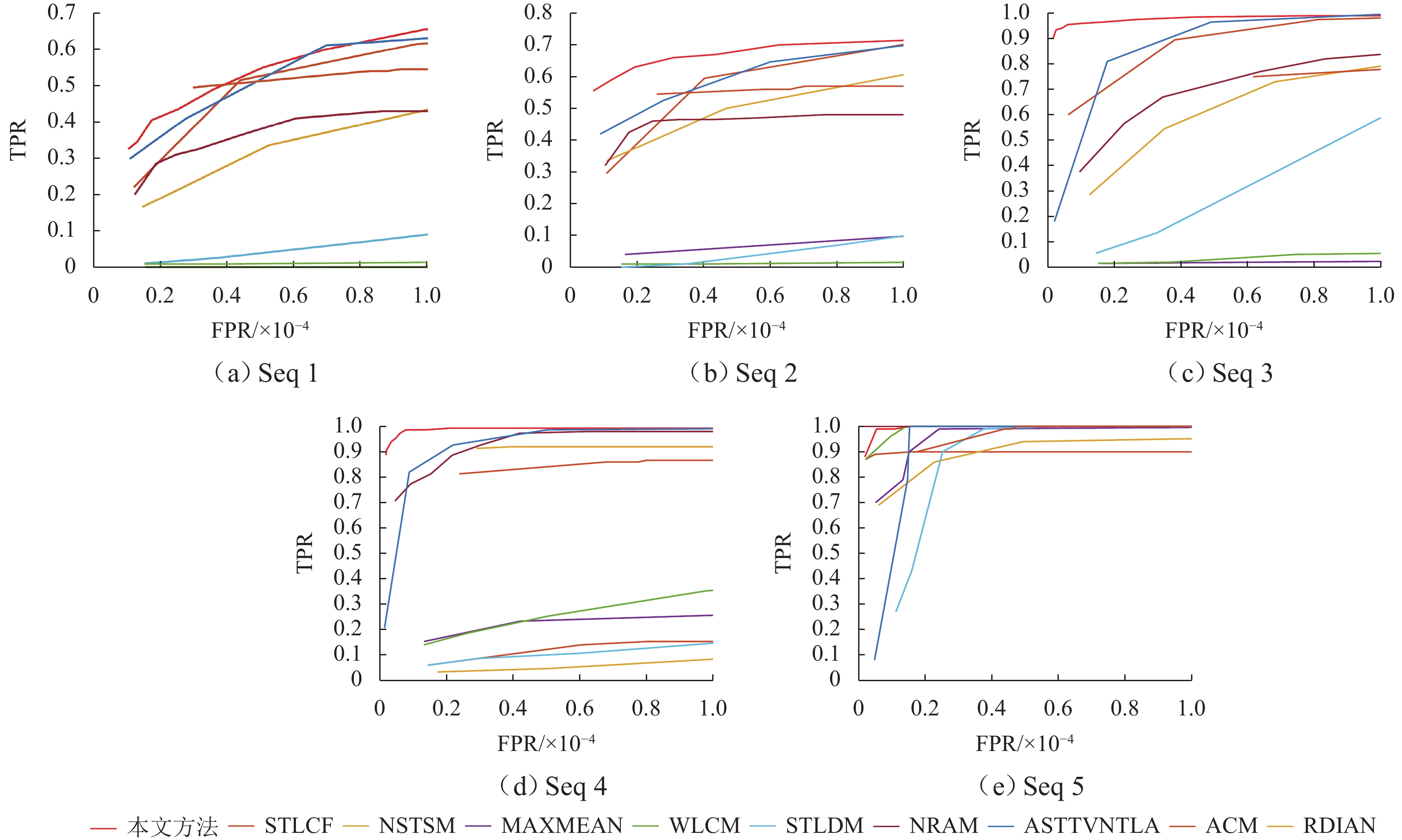 红外成像技术广泛应用于军事和民用领域,其中红外小目标检测作为应用中不可或缺的环节,具有重要的实际价值. 针对现有方法无法有效区分类目标稀疏结构与真实目标的问题,本文提出一种融合时域局部空间熵与空域多尺度特征的红外小目标检测算法. 在时域分支上首先设计基于图像块相似性度量的密度峰值聚类算法,定位红外小目标候选区域,减少对背景的冗余计算. 进一步地,提出一种基于帧间局部差异的时域局部空间熵,充分挖掘目标与背景熵值在局部区域的不同变化特性,解决类目标稀疏结构引起的虚警问题. 此外,引入空域多尺度特征提取分支,构建时空融合特征,降低候选区域定位中的漏检率,提高对不同尺度小目标的检测能力. 在5组不同场景的序列上与9种算法进行对比,本文所提出方法的BSF (background suppression factor)均优于其他方法的,在表现最好的序列5上其BSF值是次优方法的2.02倍,且在ROC (receiver operating characteristic curve)曲线中4组序列上表现为最优. 综上所述,相比于其他方法,所提出方法能够在类目标稀疏结构干扰下精准检出小目标.