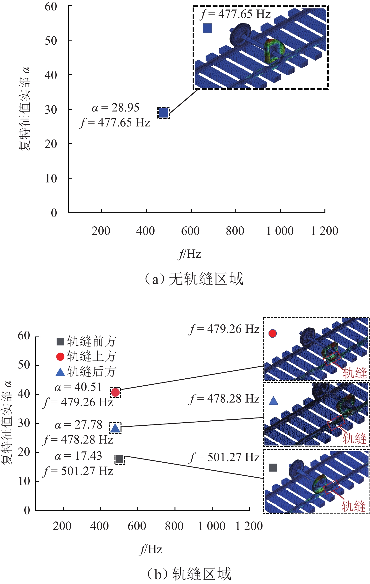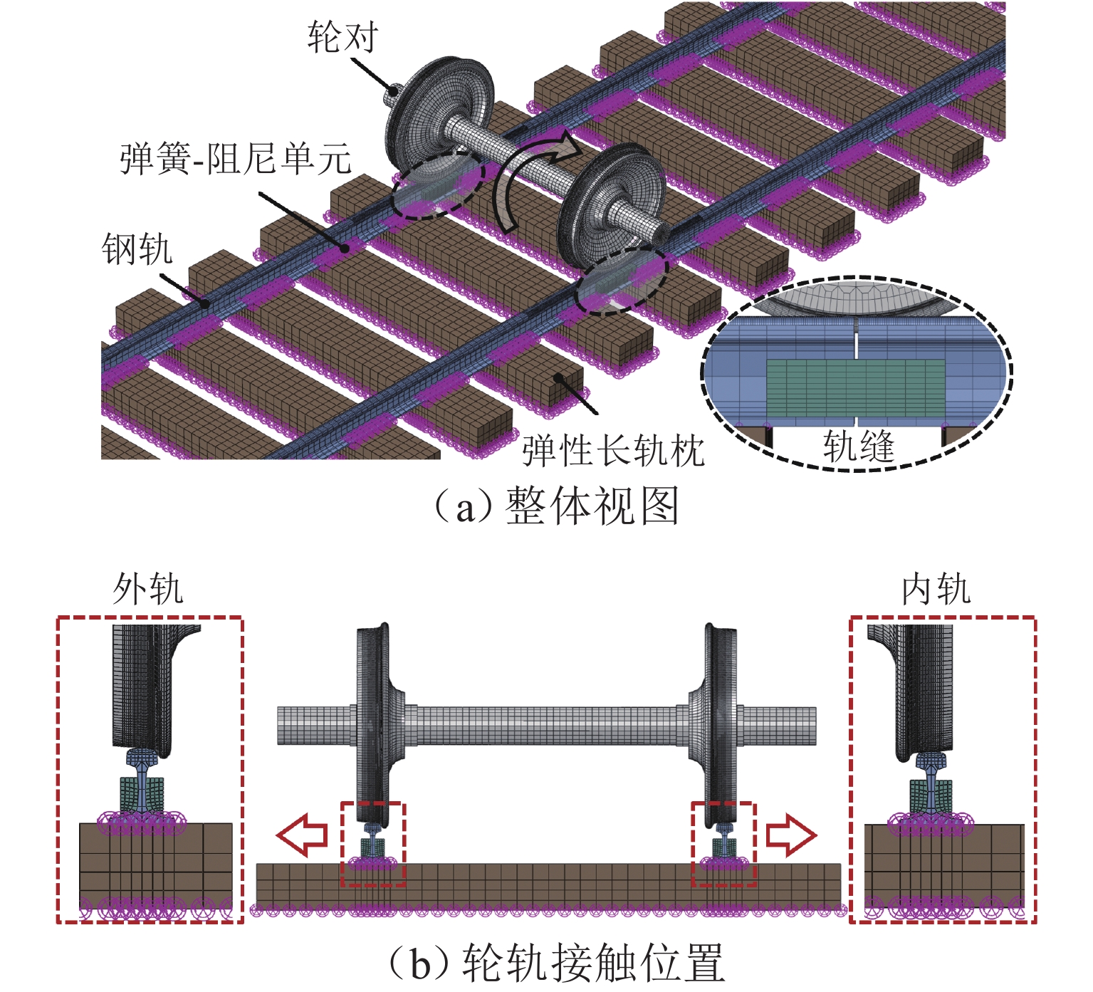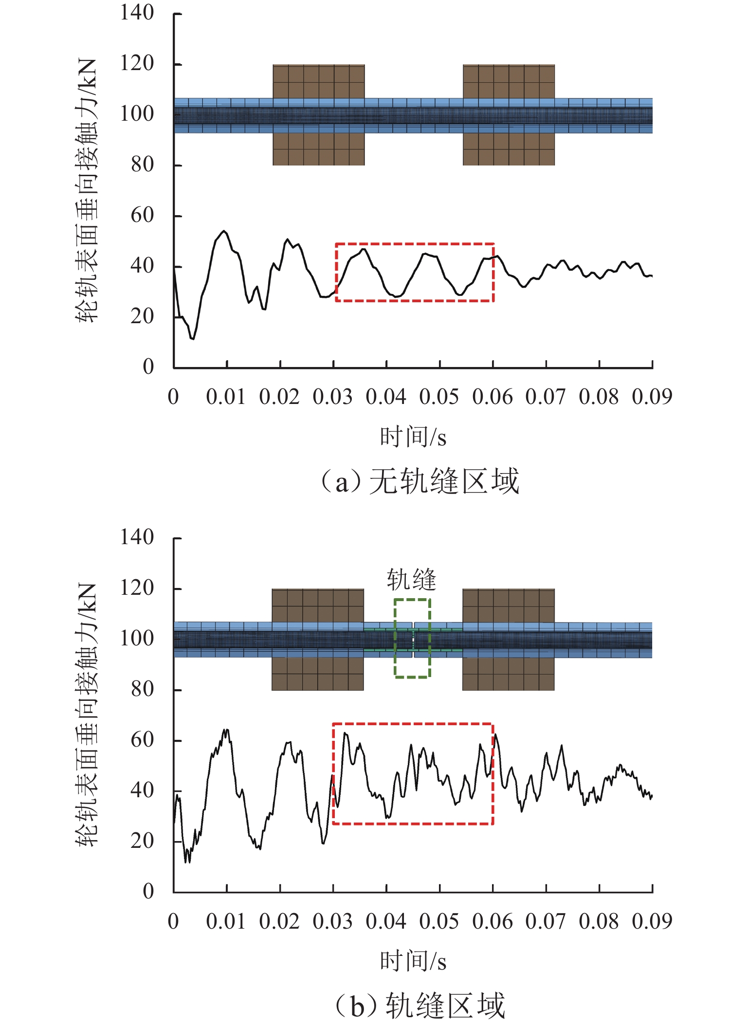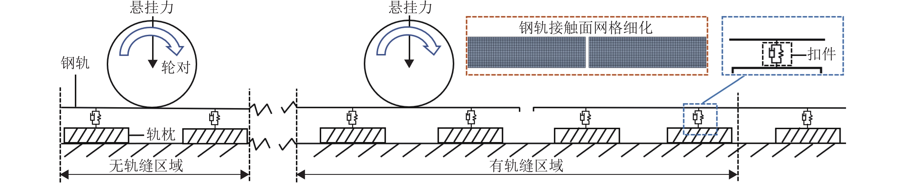 针对重庆地铁小半径曲线有/无轨缝区域存在的2种不同钢轨波磨现象(无轨缝区域的波磨为发生在内轨上的短波波磨,有轨缝区域的波磨为发生在内轨上的长短波波磨),本文基于摩擦耦合振动理论开展2种钢轨波磨现象成因的对比研究. 结合现场调研,针对小半径曲线有/无轨缝区域,建立轮轨系统有限元模型,采用复特征值分析法对比分析2种区域轮轨系统的稳定性;采用瞬时动态分析法探究轨缝不平顺和钢轨波磨不平顺影响下轮轨系统的动态响应. 结果表明:轮轨系统在小半径曲线有/无轨缝区域均存在摩擦自激振动,主要频率分别为 479.26 Hz 与 477.65 Hz,可诱导波长30~40 mm 的短波波磨;轨缝不平顺会增大轮轨系统动态响应,引发的反馈振动主要频率为112.79 Hz,进而诱导波长150~160 mm 的长波波磨;短波波磨不平顺的反馈振动仅起到加剧自身波磨深度的作用,并未诱导新波长波磨产生.