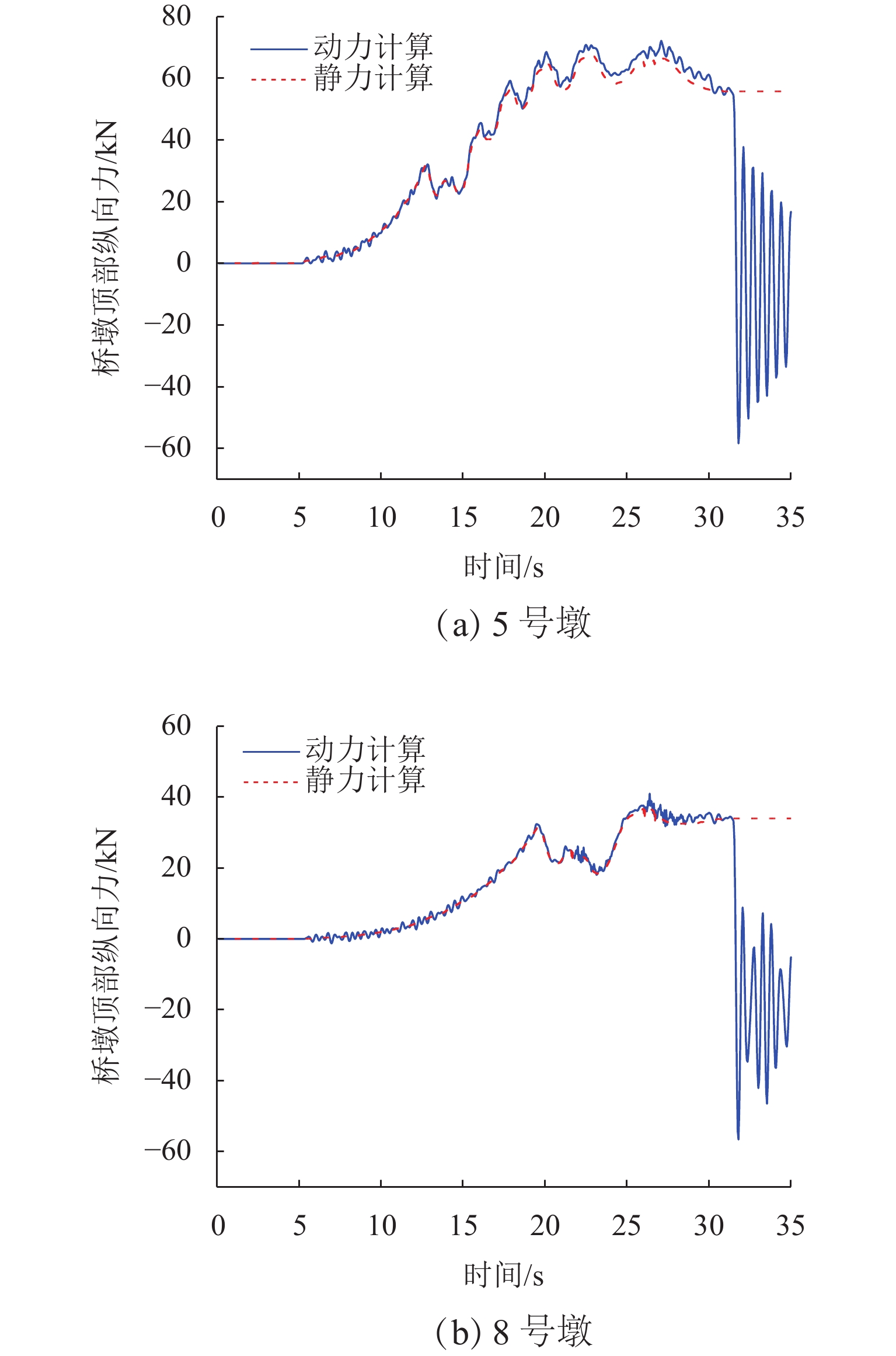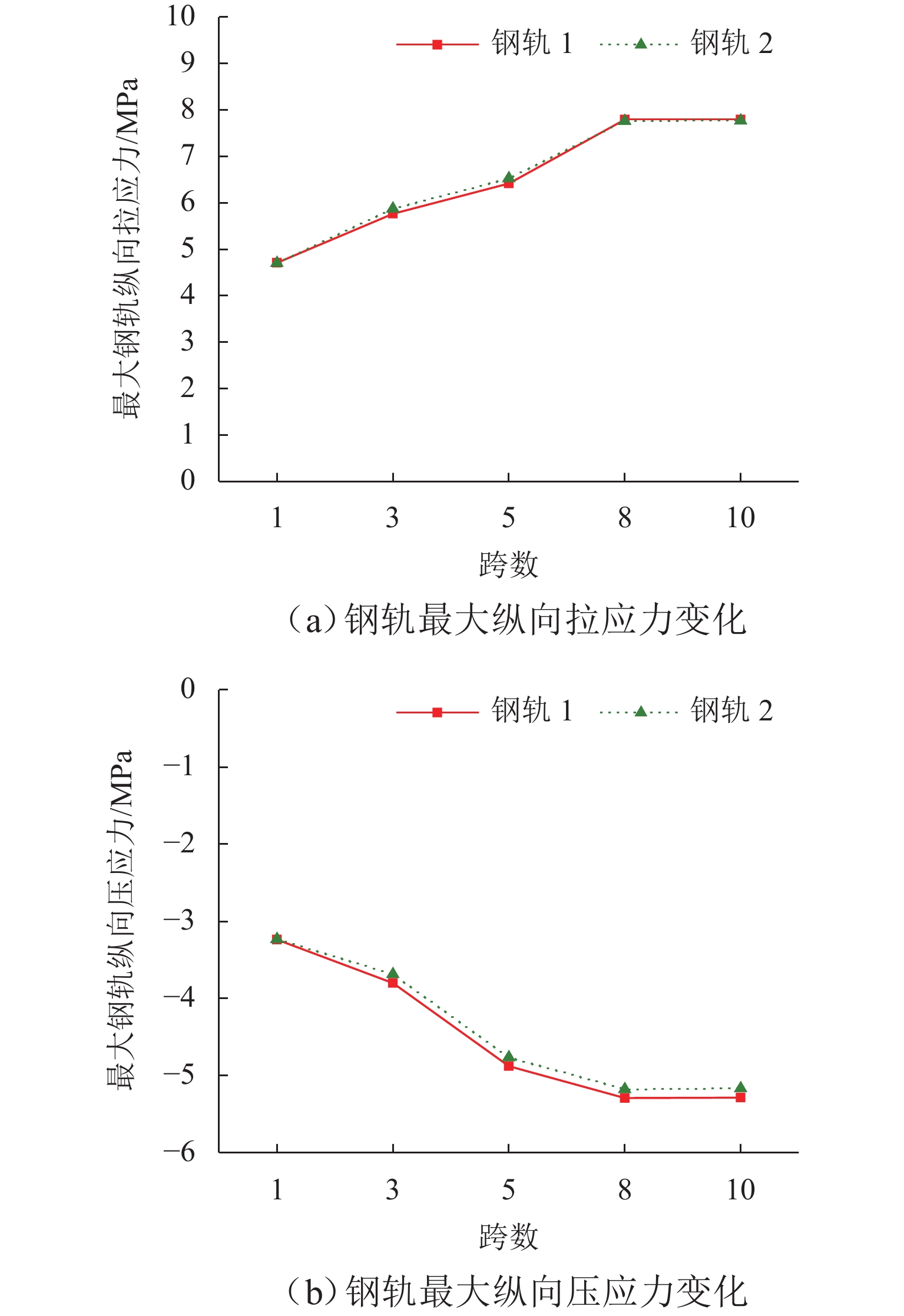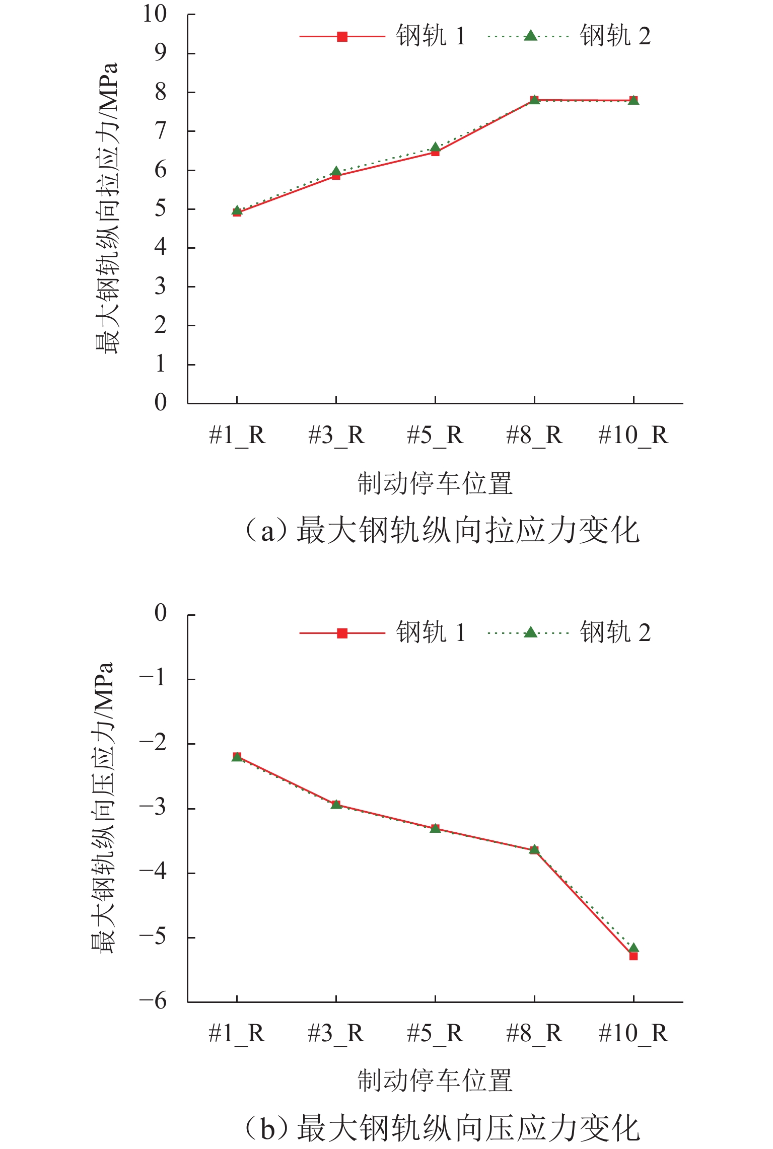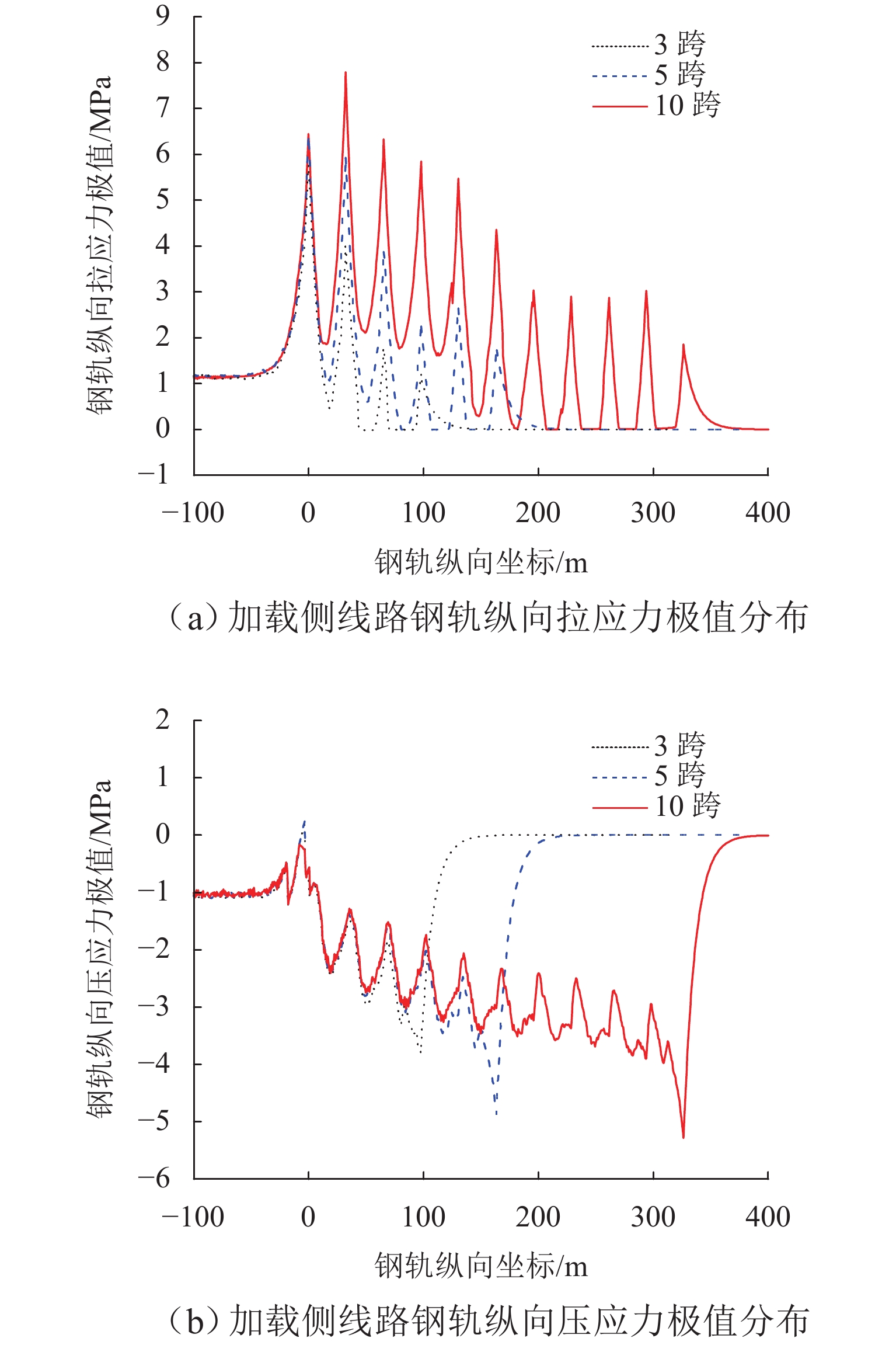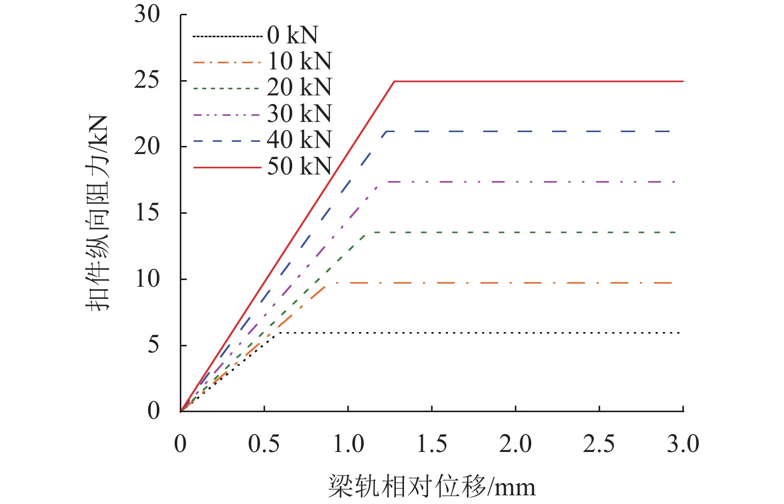 为研究高速列车制动动态过程对简支梁桥墩墩顶纵向力的影响规律,首先,采用多体系统动力学仿真方法计算获得高速列车轨面制动力时程曲线;然后,对WJ-8型小阻力扣件进行纵向阻力试验,揭示加载频率和竖向荷载对扣件纵向阻力特性的影响规律;最后,将车轮竖向力和纵向力作为移动集中荷载作用于钢轨上,考虑不同扣件所分担的不同程度动态竖向力及对应的随竖向力而变化的扣件纵向阻力,建立了高速铁路多跨简支梁梁轨纵向相互作用有限元模型,;采用动力时程方法分析了不同制动停车位置和不同跨数对梁轨动力响应的影响,并与静力计算结果进行比较. 结果表明:扣件纵向阻力受加载频率影响不大但对其承受的竖向力敏感;制动停车位在最后一跨桥台位置时,钢轨纵向力及墩台顶纵向力达到最大;随着跨数增加,钢轨纵向力及墩台顶纵向力均增加,但在8跨之后几乎不再变化;静力分析和动力分析所得钢轨纵向应力和位移最大量值存在差异,对应的动力放大系数约为1.05;受列车纵向制动力最大的桥墩的动力放大系数约为1.07,而受力较小桥墩的动力放大系数达到了1.93.