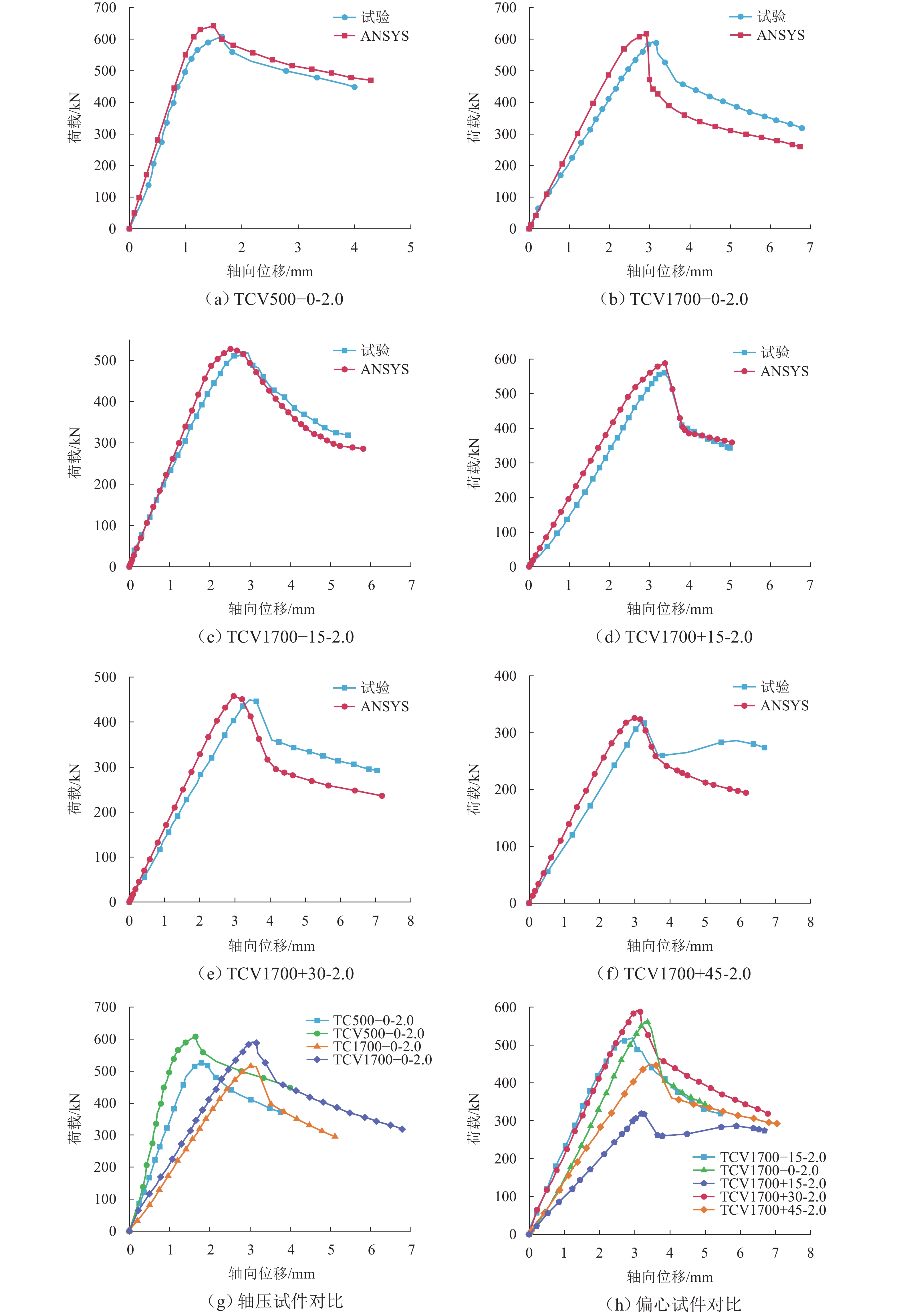 为研究腹板加劲冷弯薄壁型钢T形拼合边柱的受压性能,对8组试件开展轴压与偏压试验,结合有限元模型验证及参数分析,揭示“V”形纵向加劲肋对构件破坏模式和承载力的影响规律,并提出改进的承载力计算方法. 研究结果表明:轴压作用下未设加劲肋的T形拼合边柱单肢腹板率先出现局部屈曲,最终导致整体压溃破坏;增设“V”形加劲肋后,可以提高单肢C形钢腹板刚度,改善T形拼合边柱的局部屈曲模式,承载力提高约15%;随着偏心距增大,试件破坏模式基本相同,极限承载力呈下降趋势;基于有效宽度法预测轴压和偏压承载力结果均较保守,有限元结果和试验结果均大于计算结果,二者比值的平均值分别为1.238和1.143;修正后的有效宽度法预测结果与模拟值比值在1.000~1.074,预测结果较为准确.