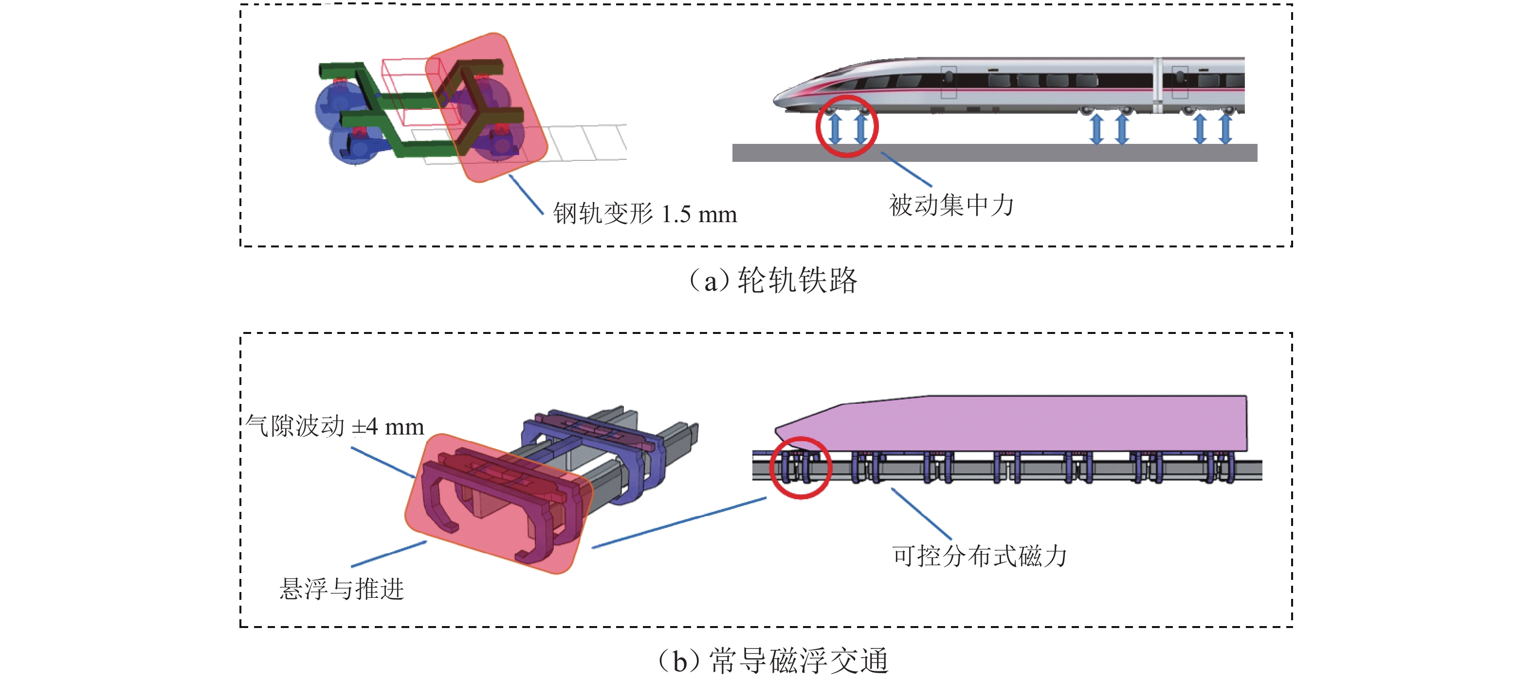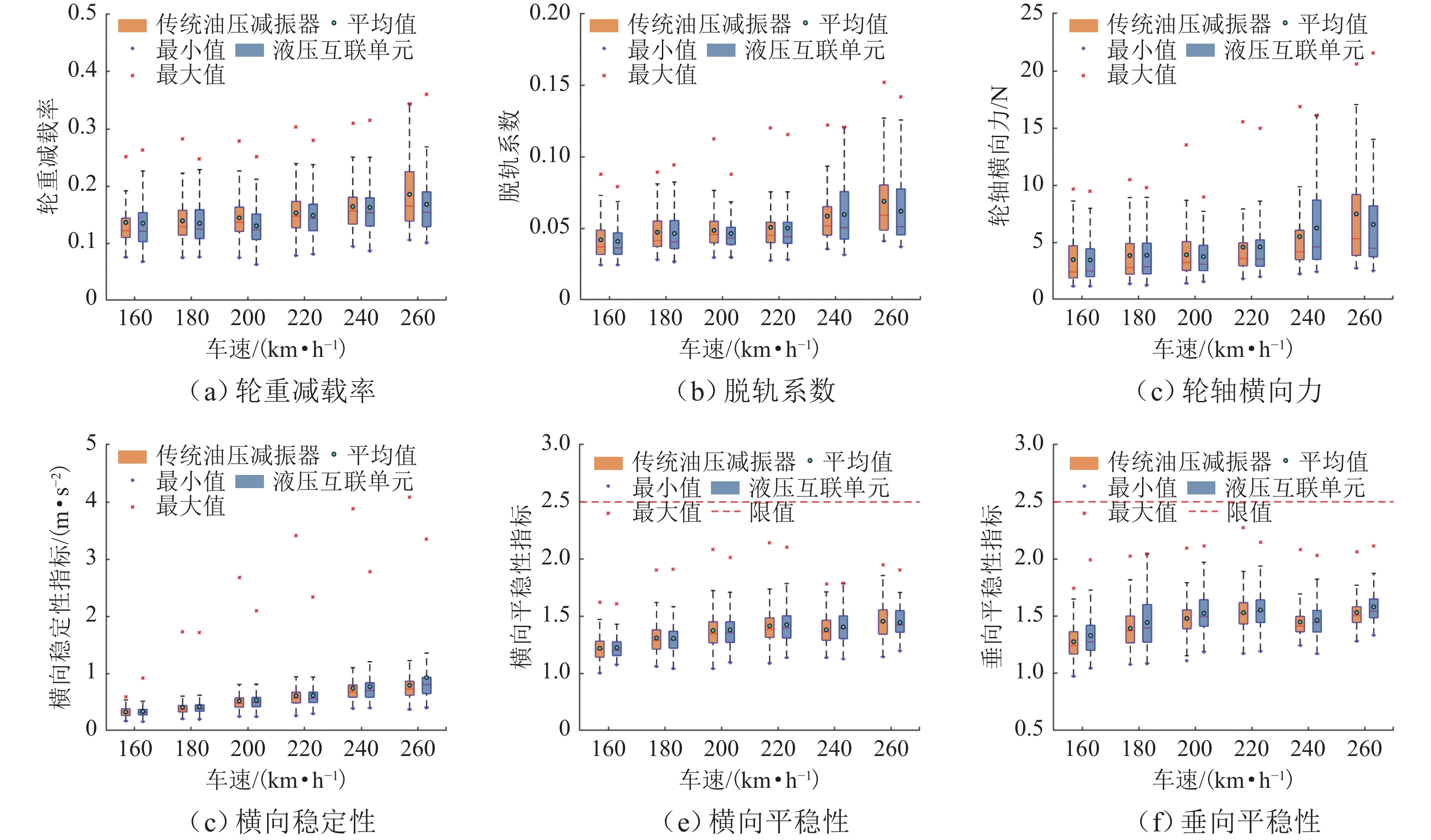 针对高速动车组轴箱内置式转向架抗侧滚刚度不足问题,提出采用液压互联单元替代传统减振器的一系悬挂构型,可在不增加悬挂垂向刚度的前提下提升抗侧滚刚度. 首先,推导油液压力、流量和输出力平衡方程,基于SIMPACK建立车辆系统非线性动力学模型,并通过MATLAB/Simulink建立液压互联单元仿真模型,实现车辆-液压互联单元系统的联合仿真;开展液压互联单元准静态特性测试和整车滚振台架动力学试验,验证了仿真模型的准确性;针对车辆多种运行工况,仿真分析液压互联单元关键参数对车体侧滚角、脱轨系数和平稳性指标的影响规律;开展线路动力学试验,验证车辆通过曲线时动力学性能的改善效果. 研究结果表明:液压互联单元的侧滚刚度明显大于传统液压减振器,车辆曲线通过时车体侧滚角可降低0.5°以上,有利于缩窄动态限界和保障倾覆安全性;线路试验表明,液压互联单元与传统油压减振器两种方案的各项动力学指标相当,通过液压互联单元解决转向架抗侧滚能力不足问题是可行的.