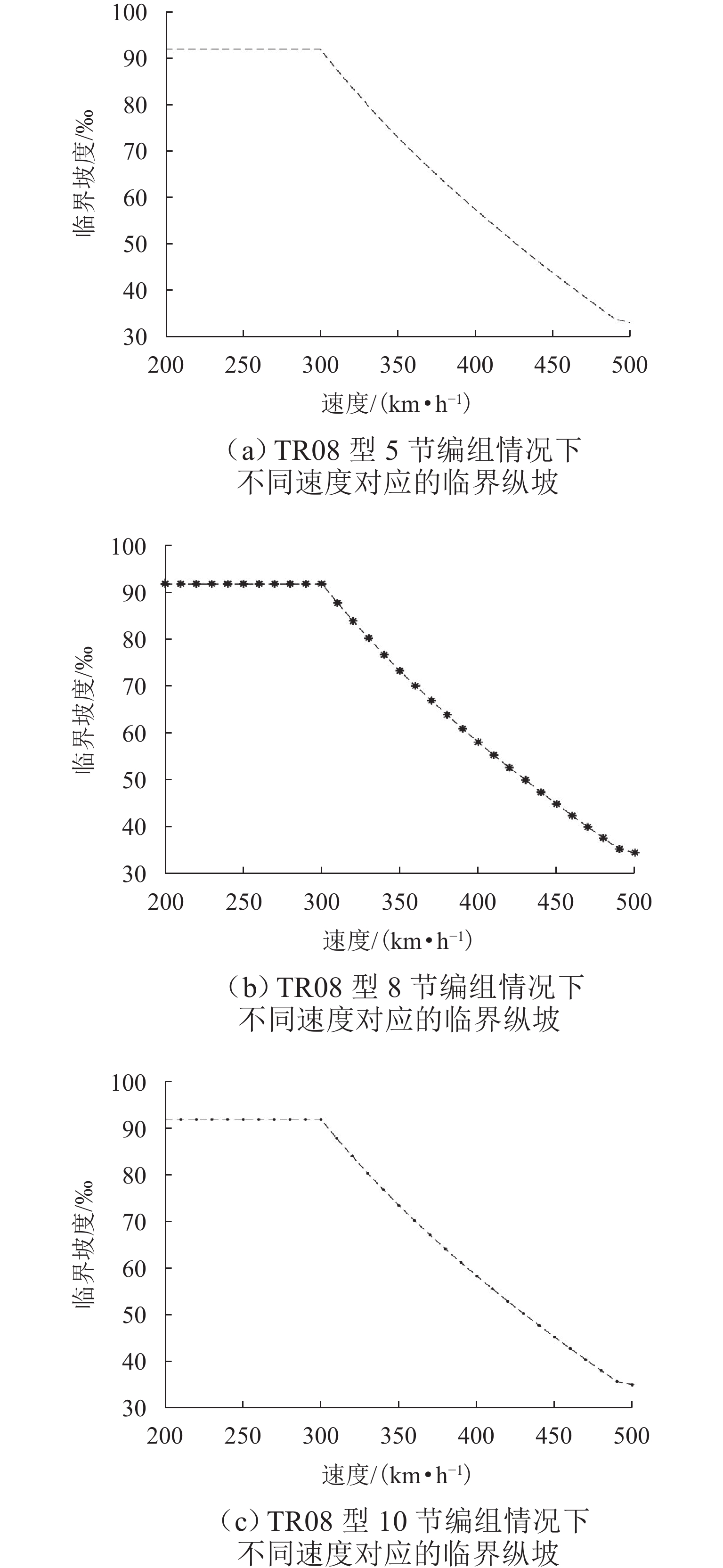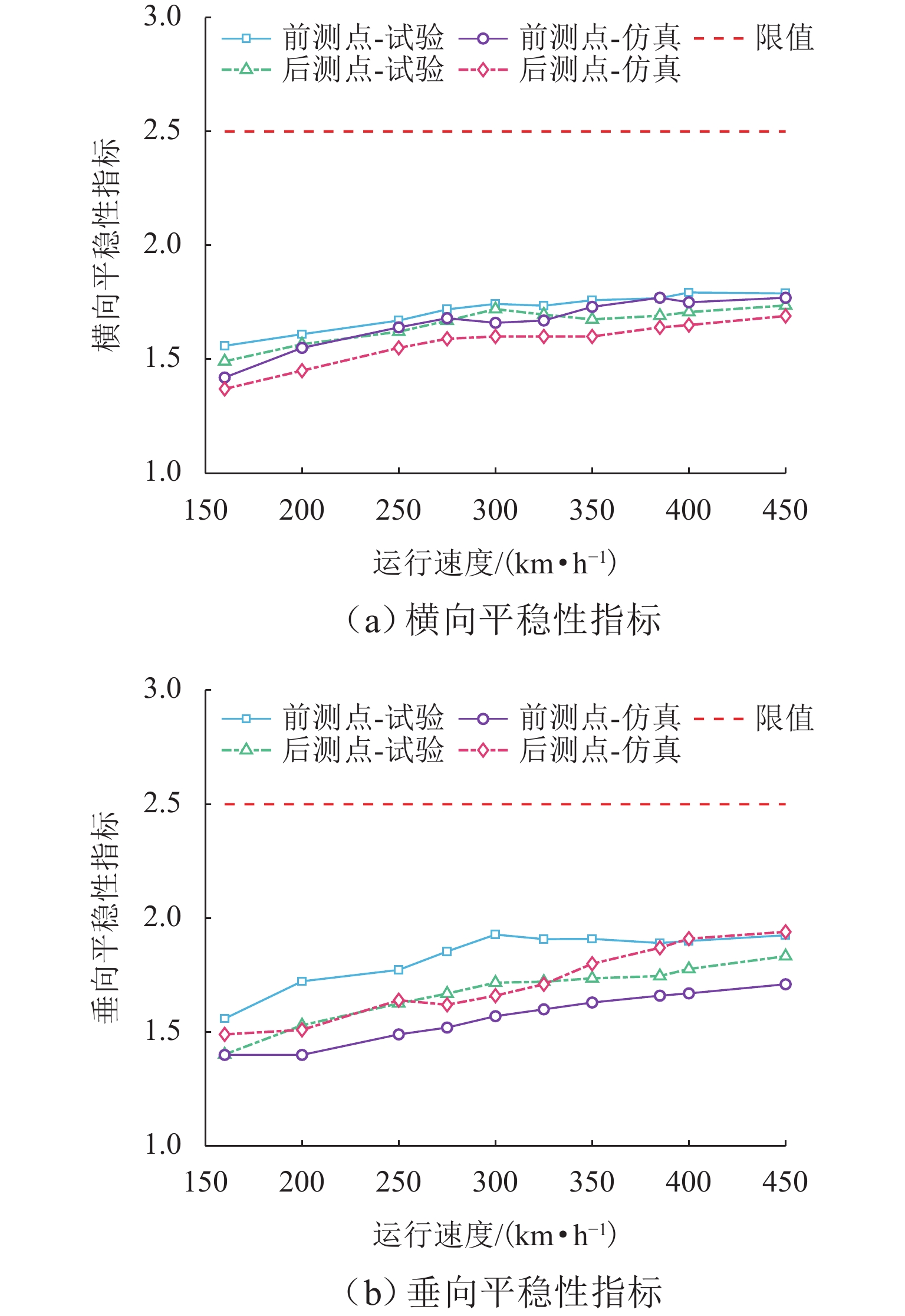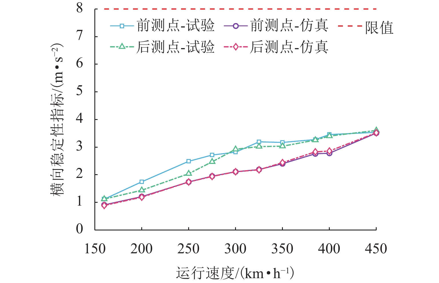 针对400 km/h速度等级高速铁路车轮多边形和钢轨波磨安全限值缺乏的问题,提出确定轮轨周期性短波不平顺安全限值的3个原则:基于《TB 10761—2013高速铁路工程动态验收技术规范》规定的轮轨垂向力不超过170.00 kN、基于由武广线实测数据拟合得到的弹条与钢轨振动加速度关系以及弹条共振疲劳断裂时由弹条加速度确定的钢轨振动加速度小于3 250.00 m/s2、基于轮轴至少服役30年换算确定的轮轴疲劳损伤寿命超过1 200万公里. 依据以上3个原则建立CR400BF型高速动车组的车辆-轨道刚柔耦合动力学模型,开展CR400BF动车组受大幅值轮轨周期性短波不平顺耦合激励时的轮轨力、钢轨振动加速度、轮轴疲劳损伤寿命计算;在此基础上,研究时速400公里高速铁路轮轨周期性短波不平顺的安全限值. 结果表明:120~200 mm波长、0.020 mm幅值的钢轨波磨与0.025 mm幅值的14~22阶多边形耦合激励时,轮轨力不超过170.00 kN;120~200 mm波长、0.040 mm幅值的钢轨波磨与0.020 mm幅值的14~22阶多边形耦合激励时,钢轨振动加速度不超过3 250.00 m/s2;在120~200 mm波长、0.040 mm幅值的钢轨波磨与0.030 mm幅值的14~22阶多边形耦合激励时,轮轴疲劳损伤寿命超过1 200万公里. 因此,建议将时速400 km/h高速铁路的轮轨周期性短波不平顺的安全限值定为0.020 mm,与时速350公里限值一致.