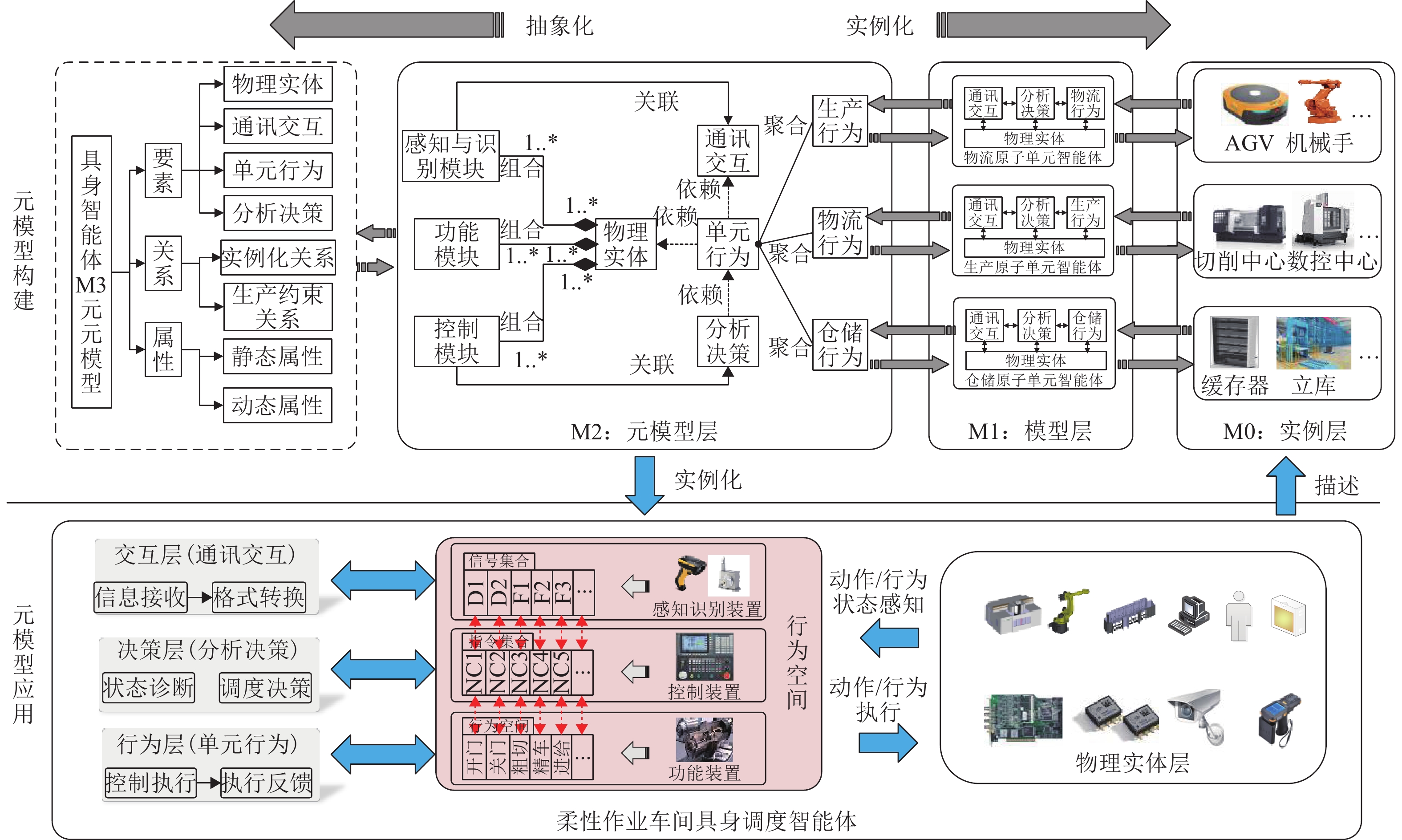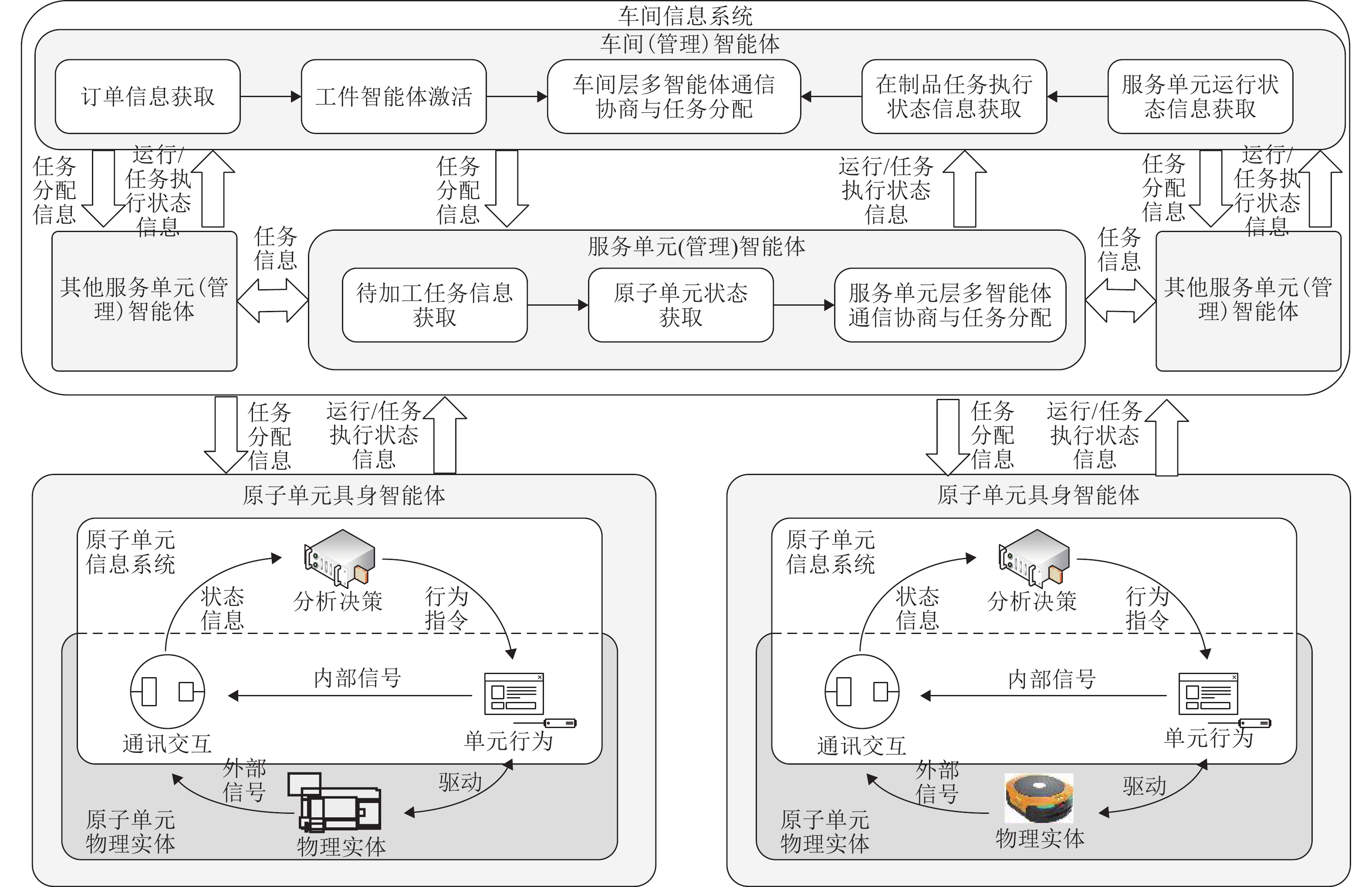 为提高柔性作业车间调度系统在扰动事件发生时的稳定性与响应效率,实现基于具身智能体的柔性作业车间多智能协同调度方法,首先,根据柔性作业车间调度问题特点,通过对具身智能体的构成要素、关系及属性的分析与抽象,提出柔性作业车间具身调度智能体元模型,实现具身调度智能体的统一建模;其次,在对元模型实例化后,设计分布式多智能体调度策略集合,构建具身多智能体调度系统,并结合Q博弈协商机制实现了多智能体的协同调度;最后,以某小型结构件车间为例,与现有多智能体调度方法进行对比. 研究结果表明:在新订单到达和机器故障扰动下,调度方案稳定性分别平均提高42.75%和42.88%,智能体间通讯量分别平均减少58.33%和62.5%,计算响应时间分别平均减少32.27%和33.28%.
