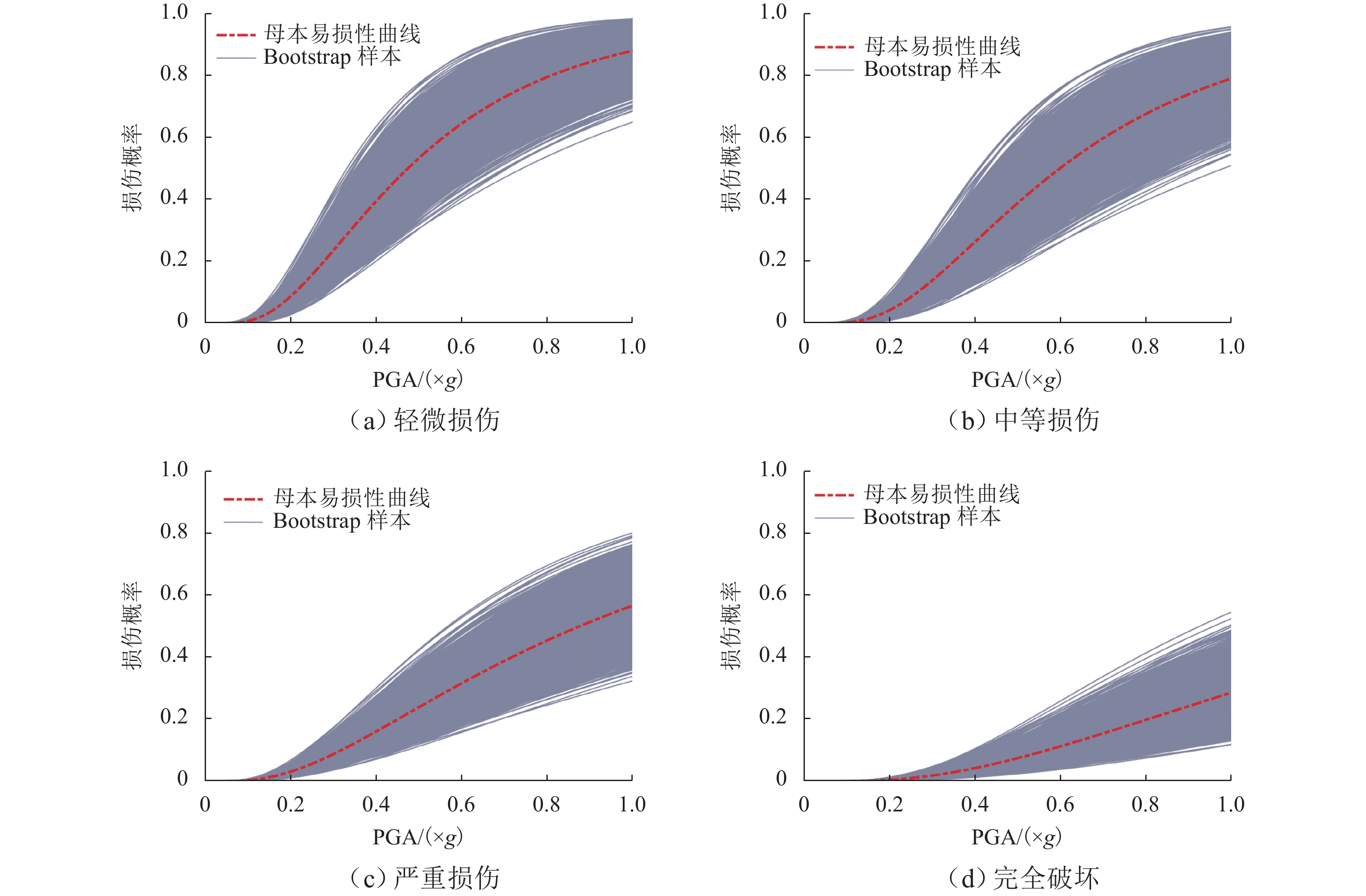为研究地震动不确定性对桥梁结构地震需求和易损性的影响,明确地震动不确定性在其地震易损性分析中的传播规律,提出一种基于Bootstrap的桥梁地震易损性不确定性量化方法. 首先,通过概率地震需求分析确定地震动强度指标与桥梁结构地震需求之间的对应关系;其次,考虑地震动样本数量对桥梁结构地震需求模型和易损性的影响,采用Bootstrap方法对概率地震需求模型参数和易损性曲线的不确定性进行模拟;最后,以一座3跨简支梁桥为例,分别采用50、100、300条地震记录对其进行地震易损性分析,量化不同地震样本下概率地震需求模型和易损性的变异性. 研究结果表明:地震作用下,桥梁结构的地震需求和易损性均具有较大的不确定性,当采用100条地震记录进行分析时,桥梁各个损伤状态下失效概率的变异性都在10%以上,严重损伤状态下失效概率的变异性甚至高达30%;在进行桥梁地震易损性分析时,宜将不同地震动强度下桥梁结构的失效概率表示为区间随机变量,从而考虑由于地震记录样本所导致的地震易损性变异性;Bootstrap方法可以有效地模拟桥梁结构地震需求和地震易损性的不确定性,能够为小样本情况下桥梁结构概率地震需求模型统计不确定性模拟和地震易损性分析提供了一条有效途径.