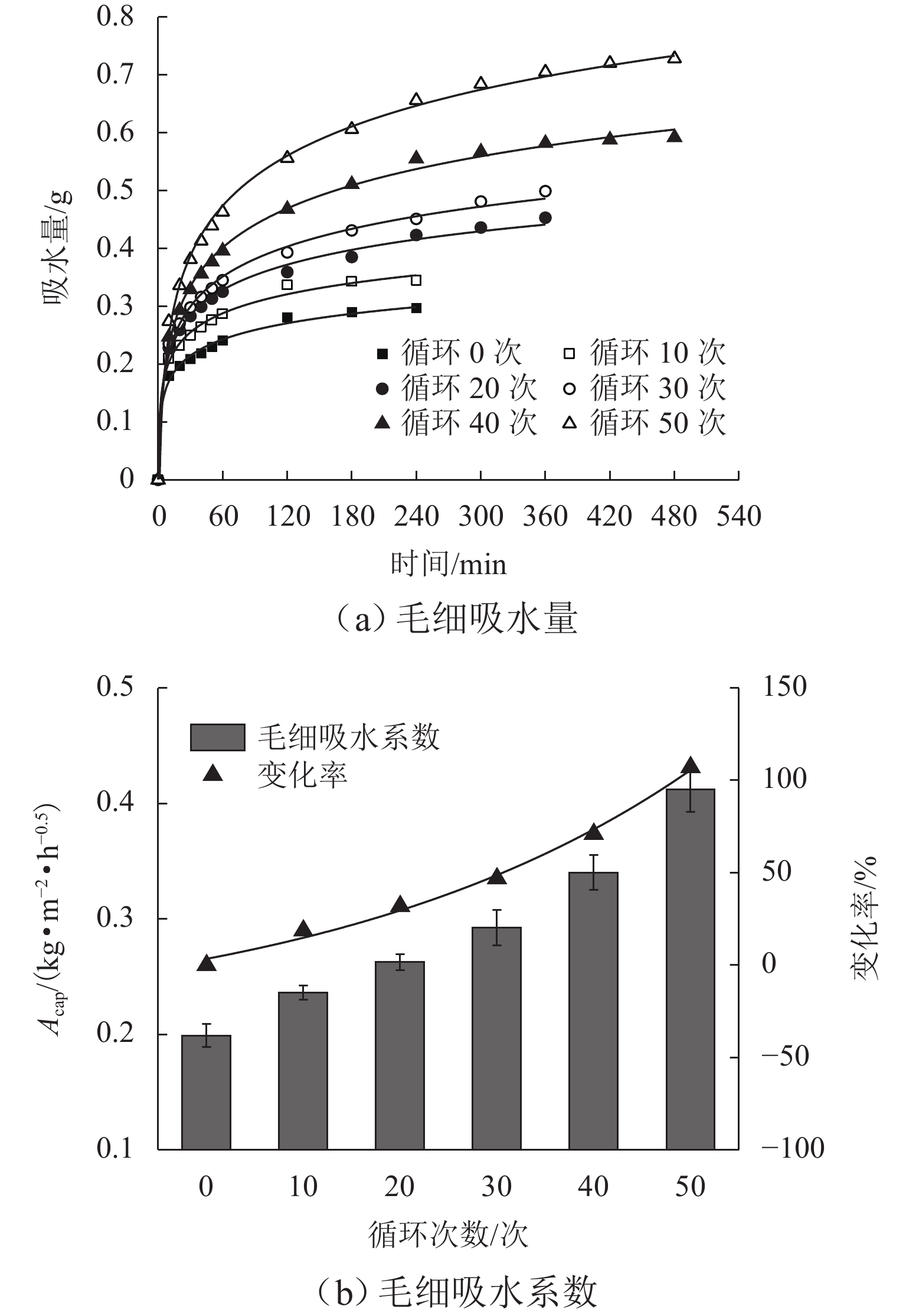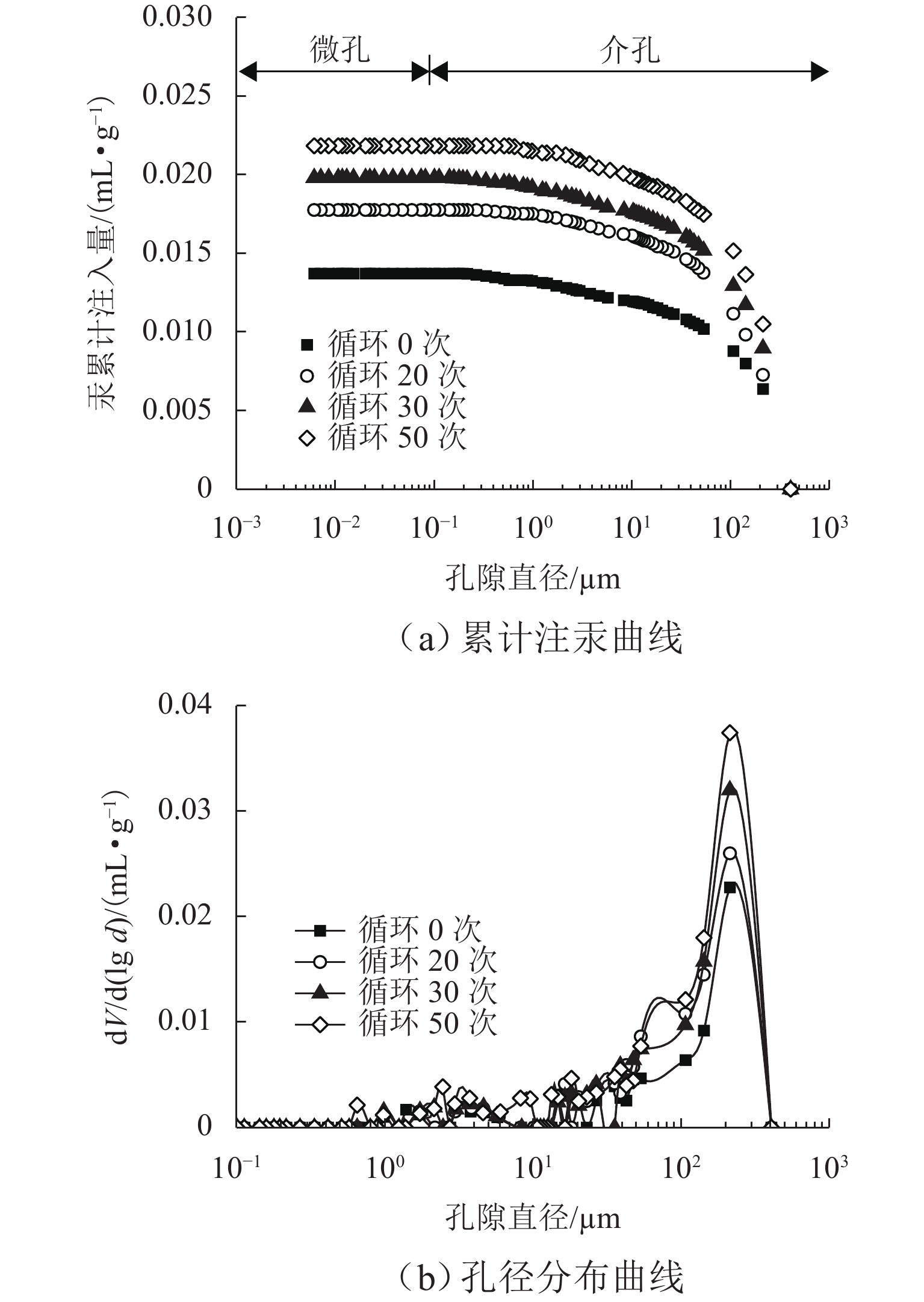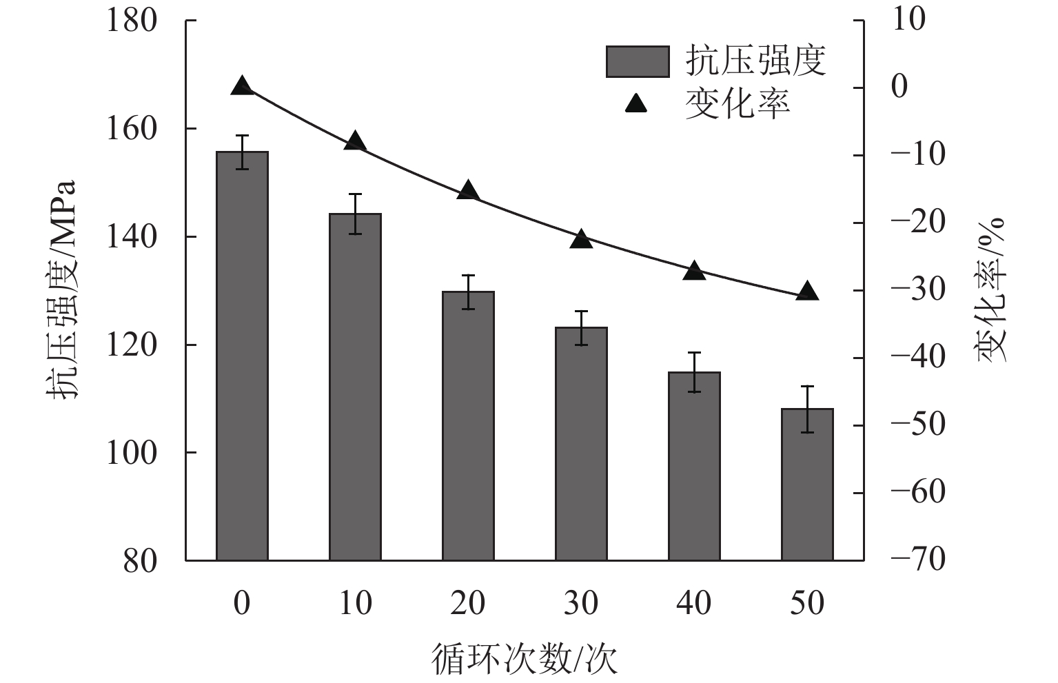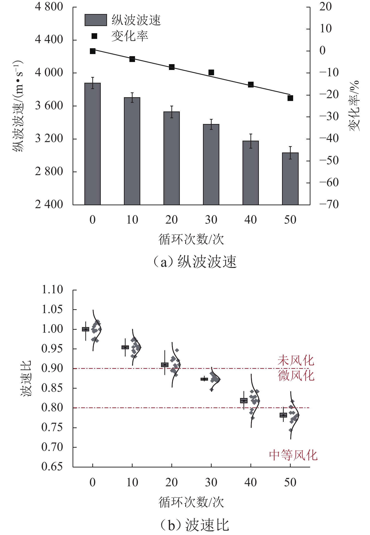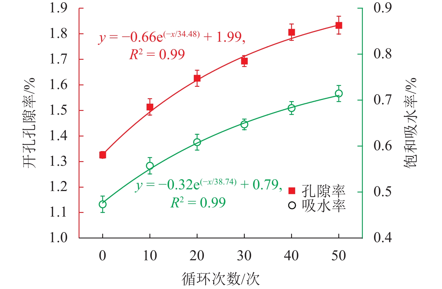 冻融循环是影响北方灰岩质文物的主要因素之一,普遍诱发多种表层风化病害,严重威胁文物的长久保存. 针对新鲜灰岩开展浸水冻融模拟风化试验,综合多种表征技术获取物理力学性质指标发展规律,结合孔隙结构变化从宏观和微观尺度定量揭示灰岩的冻融损伤机制,并通过熵权-线性加权法实现灰岩风化的综合评估. 结果表明:冻融循环50次后,纵波波速、表面硬度显著下降,损失率均在10%以上,毛细吸水系数提升了1倍以上;单轴抗压强度衰减率为30.6%,循环次数越大灰岩压缩后的结构完整性越差;灰岩孔隙主要由介孔(0.1 ~