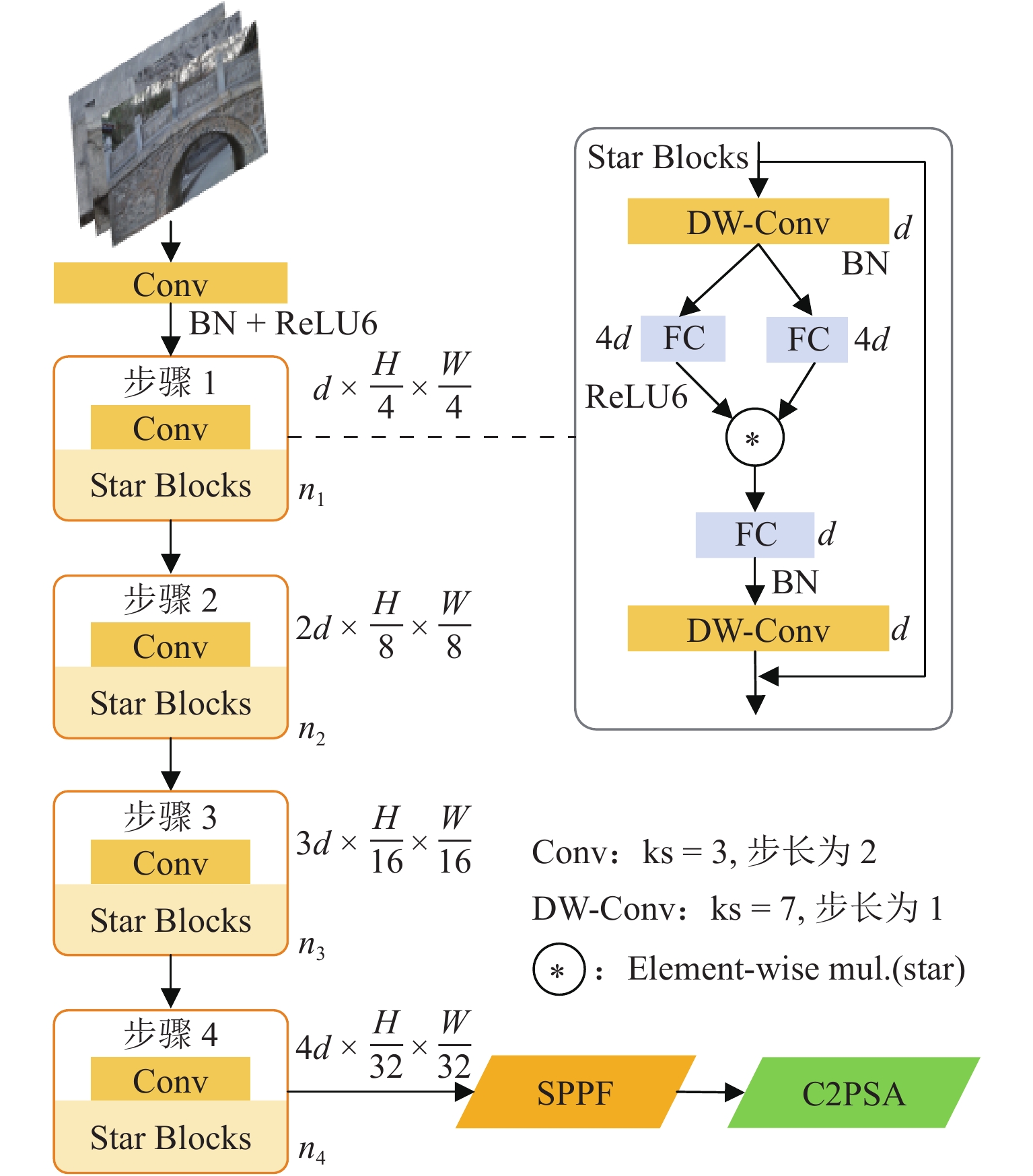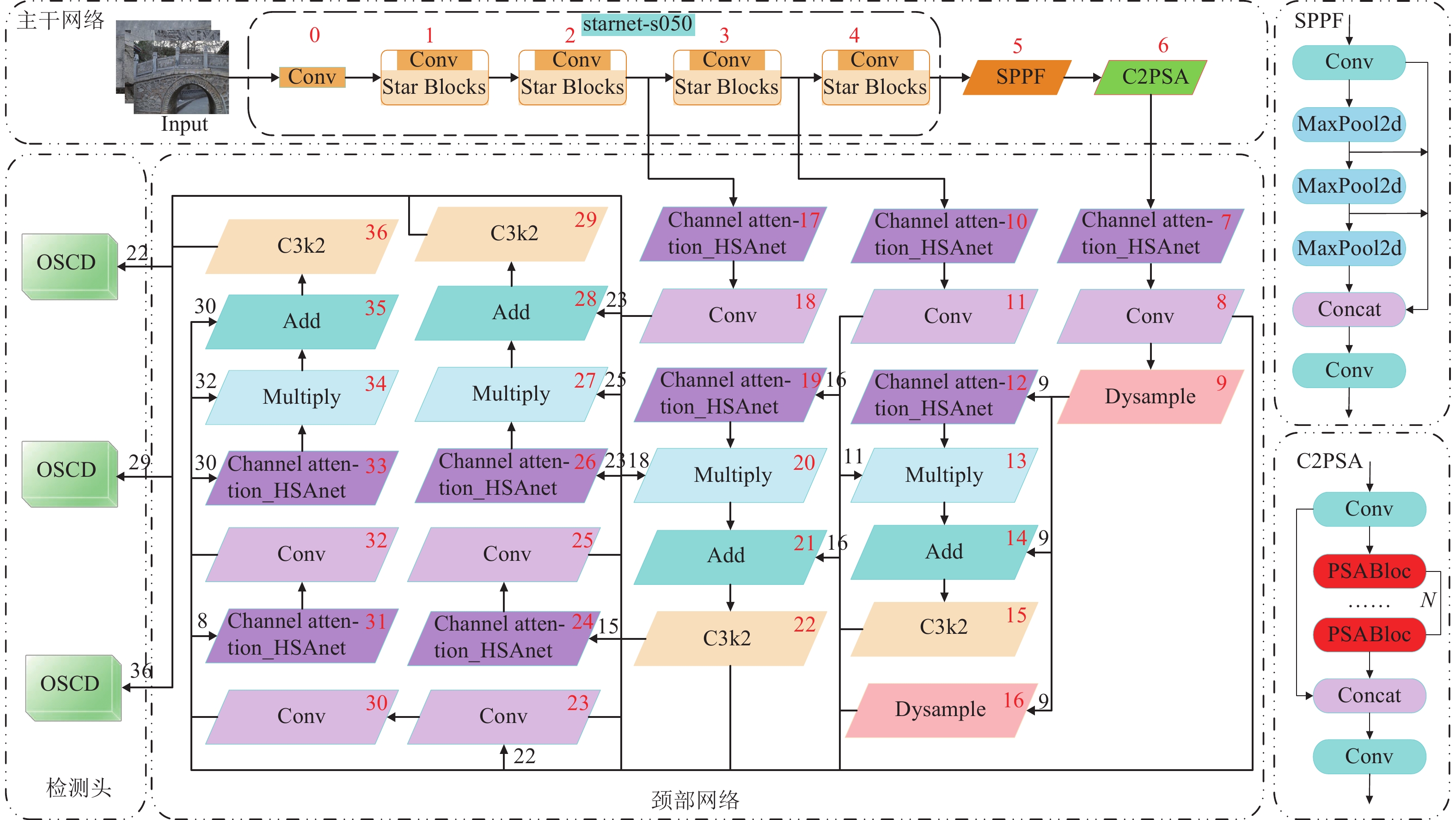 混凝土表面裂缝检测为桥梁结构的运维提供关键技术资料与决策要素,然而,裂缝识别作为结构裂缝检测的重要步骤,存在裂缝目标识别与裂缝信息提取集成度不高的问题. 为此,提出一种基于计算机视觉与混合测量技术的结构裂缝识别方法. 首先,利用YOLOv8 (you only look once version 8)目标识别算法,实现结构裂缝的快速识别与定位;其次,基于稠密深度反向投影网络(D-DBPN)和UNet网络构建SR-UNet裂缝分割模型,并引入边界损失对原有损失函数进行改进,降低正负样本不平衡的影响,实现像素级裂缝提取;然后,结合连通域去噪、边缘检测等形态学技术,采用基于最短距离法与正交骨架法的混合方法对裂缝进行像素宽度测量;最后,利用LabelImg软件制作包含3 123张裂缝图像的识别定位数据集进行模型训练与测试. 研究结果表明:YOLOv8模型在裂缝测试集上的准确率为83.41%,召回率为84.93%,