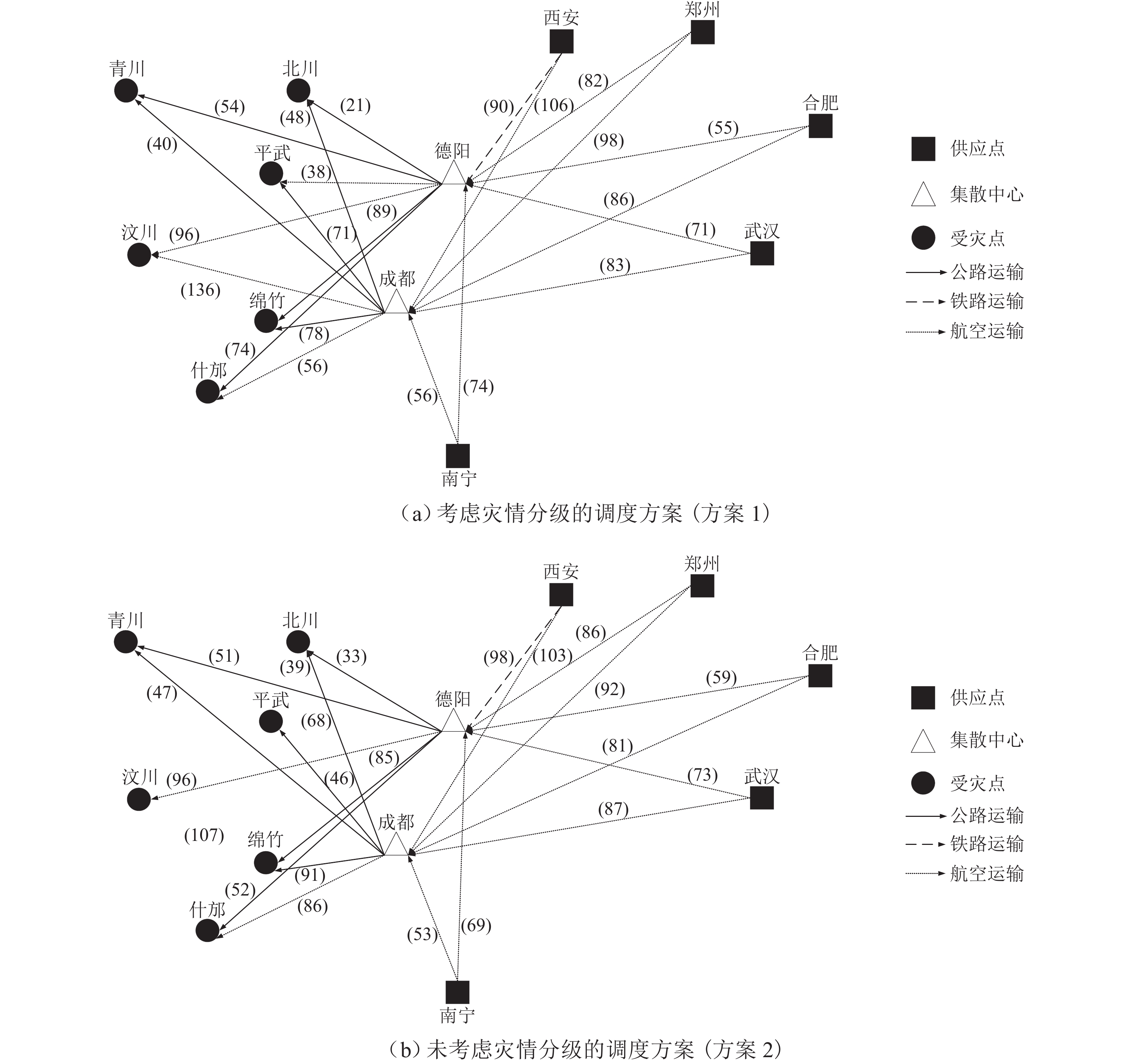 长大隧道恶劣环境与复杂交通网络为多工种施工车辆的安全、效率和有序运输带来诸多挑战. 针对目前隧道内部运输组织管理仍停留在宏观组织策略层面,缺乏对施工车辆时刻表和运行路径做出精细化决策的问题,本文提出考虑交通冲突的长大隧道内部多工种施工车辆的时刻表和运行路径优化模型,在疏解隧道内部车流间交通冲突的前提下最小化施工车辆的总运行(行驶)时间,以提高生产效率和保证系统安全;在此基础上,将优化模型进行线性化处理,重构为整数线形规划模型,通过Gurobi求解器进行求解. 研究结果表明:隧道运输组织方案在优化前后,车辆的总运行(行驶)时间保持512 min不变,而交叉冲突从19个减至0个,相向冲突从2个减至0,即优化方案在不增加施工车辆总运行时间的前提下,完全避免了交通冲突,保证施工车辆的运输安全,具备可实操性.