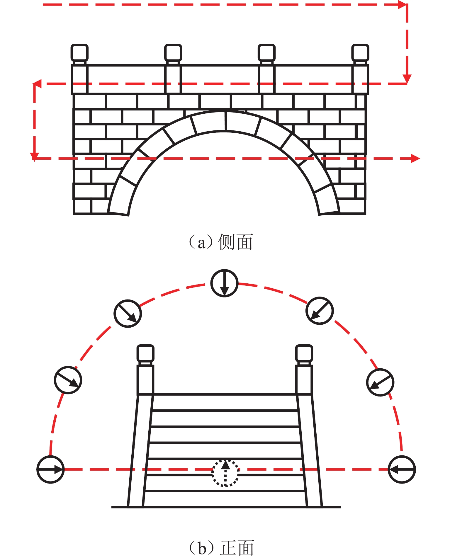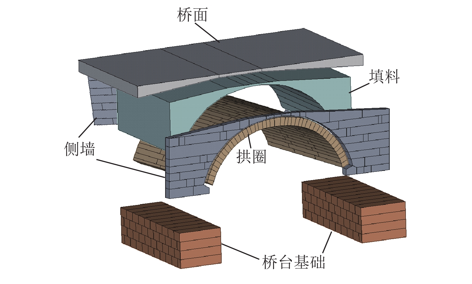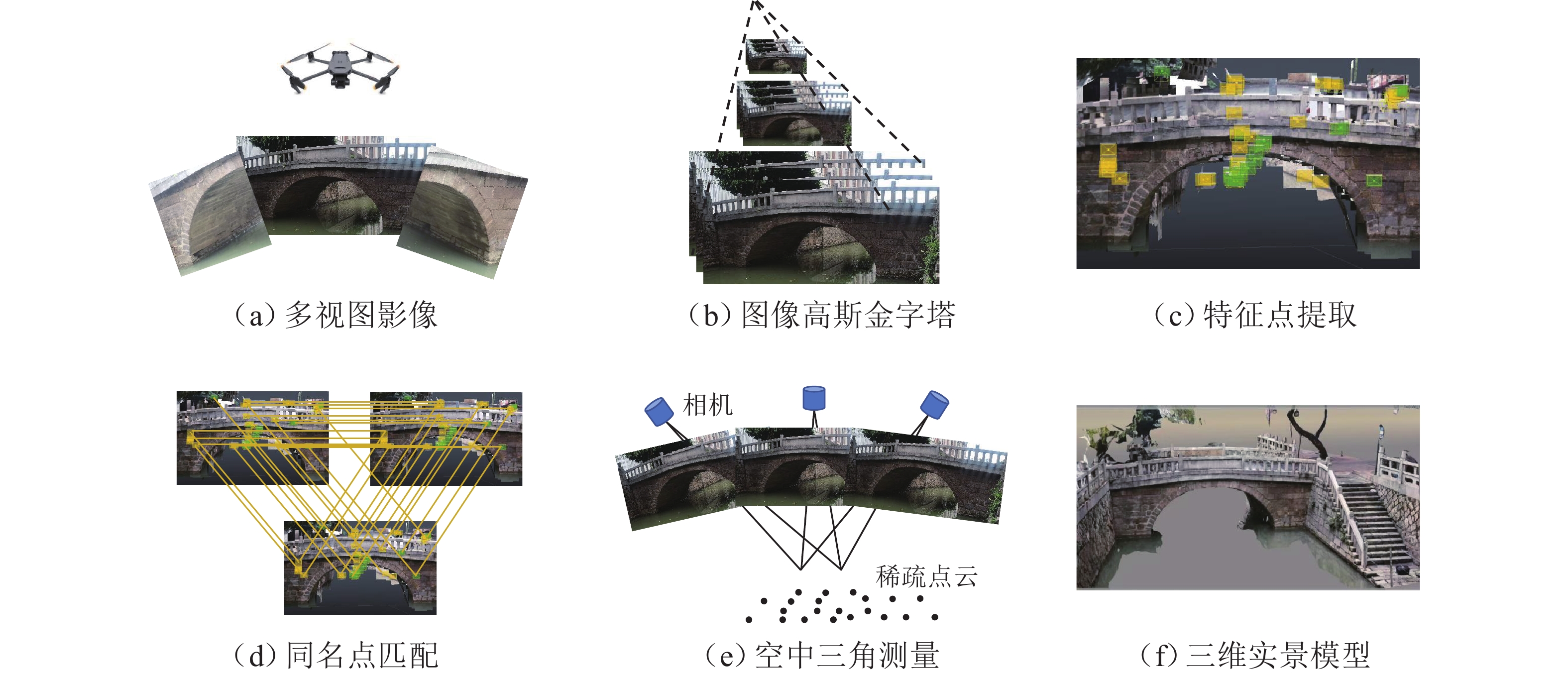 为实现古石拱桥数字化建模与性能评估,基于无人机倾斜摄影和图像轮廓提取技术开展古石拱桥逆向建模方法研究. 首先,使用无人机采集石拱桥的多视角序列图像;其次,基于运动恢复结构(SfM)和多视图立体匹配(MVS)算法,构建石拱桥的三维(3D)实景模型;接着,基于石块与砂浆存在色差和石块几何规则性的特点,提出色差强化与小面积杂质滤除策略,改进Canny边缘检测,引入循环识别四边形与形状优化改进多边形逼近算法,实现表面轮廓的自动化识别;然后,基于地面控制点标定真实尺度,利用提取的轮廓坐标参数化建模,生成有限元模型;最后,使用提出方法对透龙桥进行建模和性能分析,并与试验结果进行对比. 研究结果表明:透龙桥3D实景模型表面未检出明显病害,最大尺寸误差为0.8%;有限元模型的挠度最大计算误差为2.1%. 该方法能够准确反映古石拱桥的几何形态和力学性能,为其数字化保护与性能评估提供技术支持.