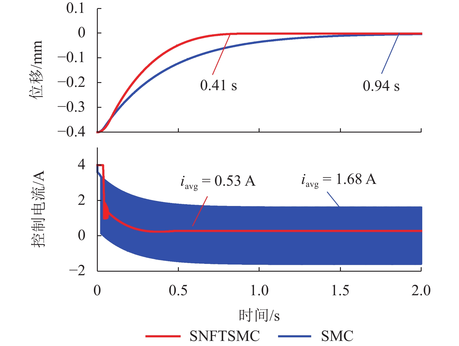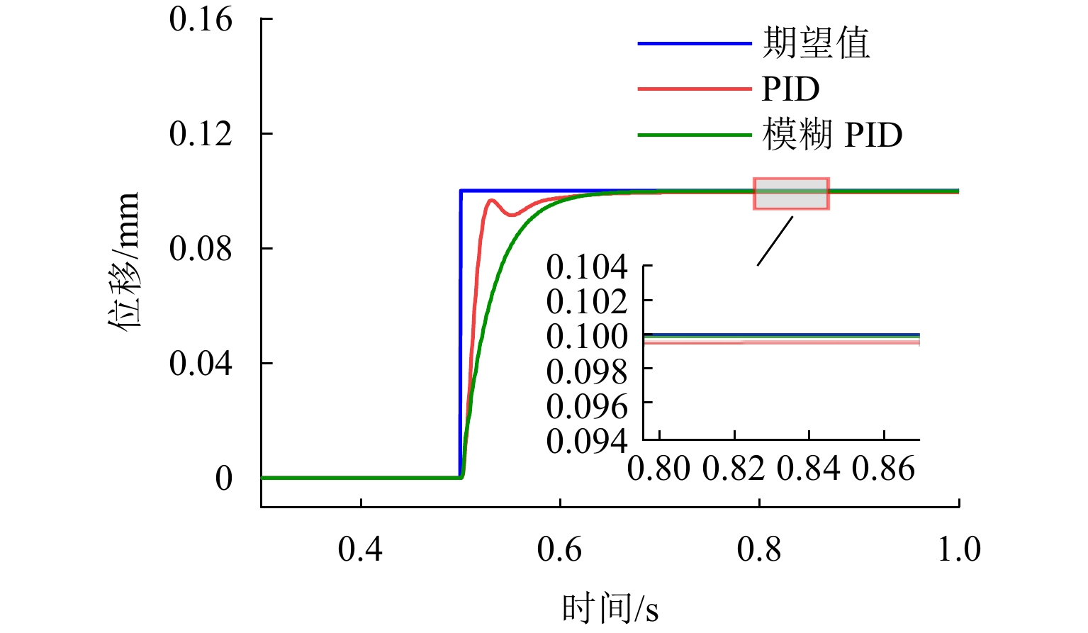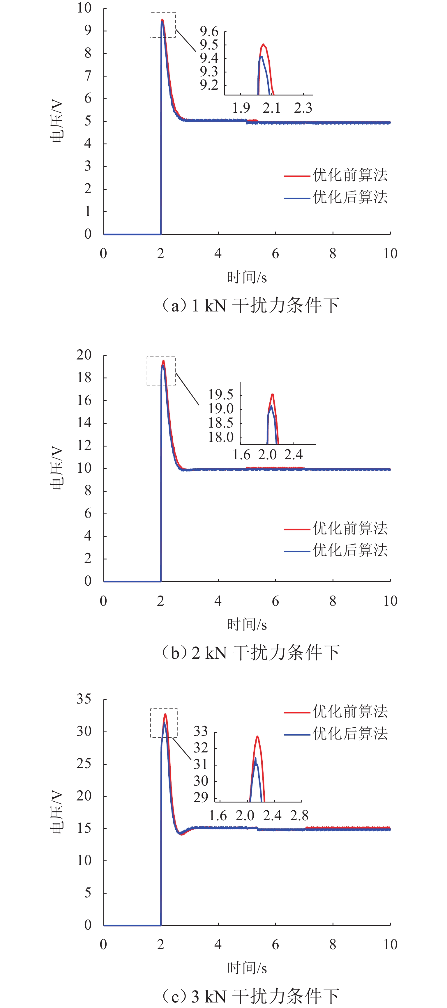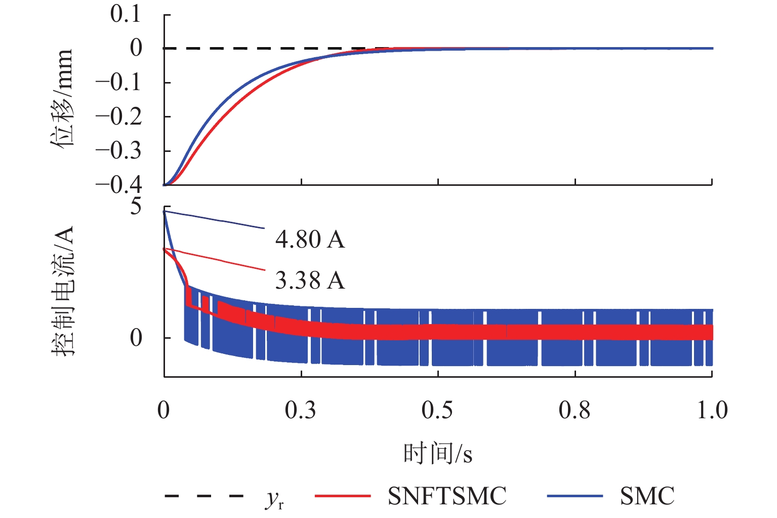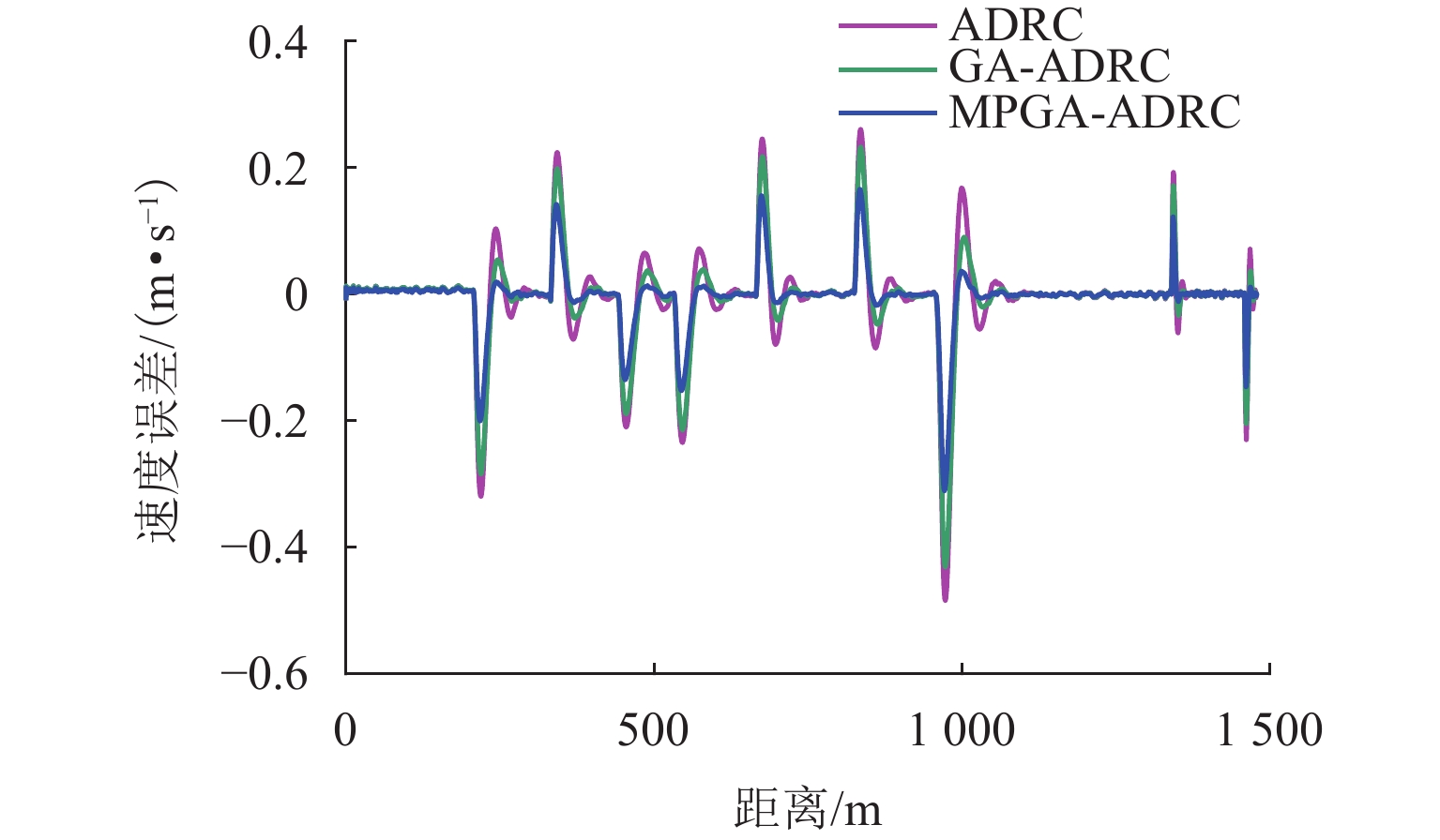 ResultsThe simulation results show that under the disturbance-free condition, the system can effectively realize the lateral trajectory tracking control function under PID, MPC, NMPC, and NMPC-ESO control strategies. The response speeds of the various controllers are relatively similar. The PID controller exhibits the largest overshoot, while MPC experiences some overshoot, though significantly smaller than that of PID. Both NMPC and NMPC-ESO have minimal overshoot, with their response curves closely resembling each other, indicating that ESO has no noticeable effect. Under external disturbance conditions, the addition of ESO significantly improves the anti-disturbance ability of NMPC. The lateral displacement fluctuations are minimal for NMPC-ESO, and the system recovery time is the shortest. When sensor measurement noise is introduced, the system can stably control within a range close to the target position under NMPC control, but there is still an error compared to the target position. Due to the excessive sensitivity of ESO to the noise, it overcompensates the deflection angle, leading to instability in the NMPC-ESO control after ESO’s application. To address this issue, an EKF is introduced to suppress the impact of internal noise on ESO’s disturbance estimation. Under both internal and external disturbance conditions, NMPC-ESO-EKF significantly improves the lateral trajectory tracking accuracy by 89.77% and greatly enhances the anti-disturbance ability, demonstrating the necessity of incorporating EKF. The experimental results indicate that the error between the values filtered by EKF and the true values is very small. PID-EKF exhibits significant overshoot and oscillation under various operating conditions, which poses safety concerns in practical engineering applications. Under short-distance constant reference signals, compared to PID-EKF control, NMPC-ESO-EKF reduces the overshoot by 98.90% to 2.12 mm, with the shortest system settling time of 4.7 s, which is reduced by 47.78%. Under square wave reference signals, the trajectory tracking curves of MPC-EKF, NMPC-EKF, and NMPC-ESO-EKF are all relatively stable, with NMPC-ESO-EKF showing the smallest average overshoot and tracking error, improving performance by 93.77% and 36.13%, respectively, compared to PID-EKF. Under long-distance constant reference signals, larger overshoots are observed across all controllers. After applying continuous disturbances, each controller can make the system return to the stable target value. After stabilization, the input deflection angle fluctuates around −10° to continuously resist external disturbance; the displacement fluctuation amplitude of MPC-EKF is the largest, with the longest recovery time; the anti-disturbance ability of NMPC-ESO-EKF is optimal, with the fluctuation amplitude reduced by 34.51% and the recovery time shortened by 42.08% compared to PID-EKF.