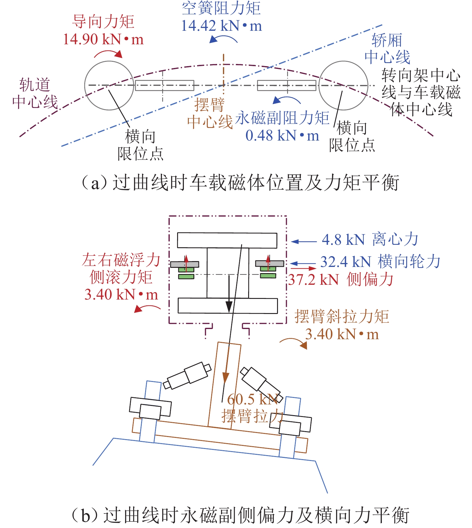 Methods In order to achieve precise control of the lateral motion and enhance the lateral anti-disturbance ability of the PMEDS vehicle, a lateral operation mode was proposed, and a lateral nonlinear dynamic model was derived. Moreover, an improved nonlinear model predictive lateral tracking controller (NMPC-ESO-EKF) with constraints was established, and its effectiveness was verified by simulation and experiment. Firstly, the working principle of the radial annular Halbach permanent magnet wheel was introduced; the feasibility of compensating for the lateral force of the system by deflecting the magnetic wheels was analyzed, and the vehicle’s lateral operation mode via symmetrically deflecting the same-side magnetic wheels was proposed. Secondly, according to the principle of lateral operation, the lateral damping term was introduced to derive the lateral nonlinear dynamic model for the PMEDS vehicle. Then, based on the dynamic model, a nonlinear discrete state-space model was derived as the prediction model; a cost function and the amplitude constraint of the deflection angle were designed. According to the prediction model, cost function, and system constraints, the nonlinear model predictive controller (NMPC) was established; the control problem was transformed into a nonlinear programming problem in the finite time domain. Meanwhile, in order to improve the anti-disturbance ability of the NMPC, the extended state observer (ESO) was constructed to observe the internal and external disturbances of the system, compensating for the control input. In order to reduce the sensitivity of ESO to sensor measurement noise, an extended Kalman filter (EKF) was introduced to filter the raw signals. Moreover, the convergence of the overall control framework was demonstrated. Finally, the simulation and analysis of lateral constant trajectory tracking and lateral anti-disturbance under internal and external disturbances conditions were conducted using the MATLAB/Simulink-Simscape joint simulation platform. Additionally, experiments were performed by using the lateral running experimental device and the principle prototype, covering short-distance constant trajectory tracking, square wave signal trajectory tracking, and the analysis of anti-disturbance ability under long-distance constant trajectory tracking.