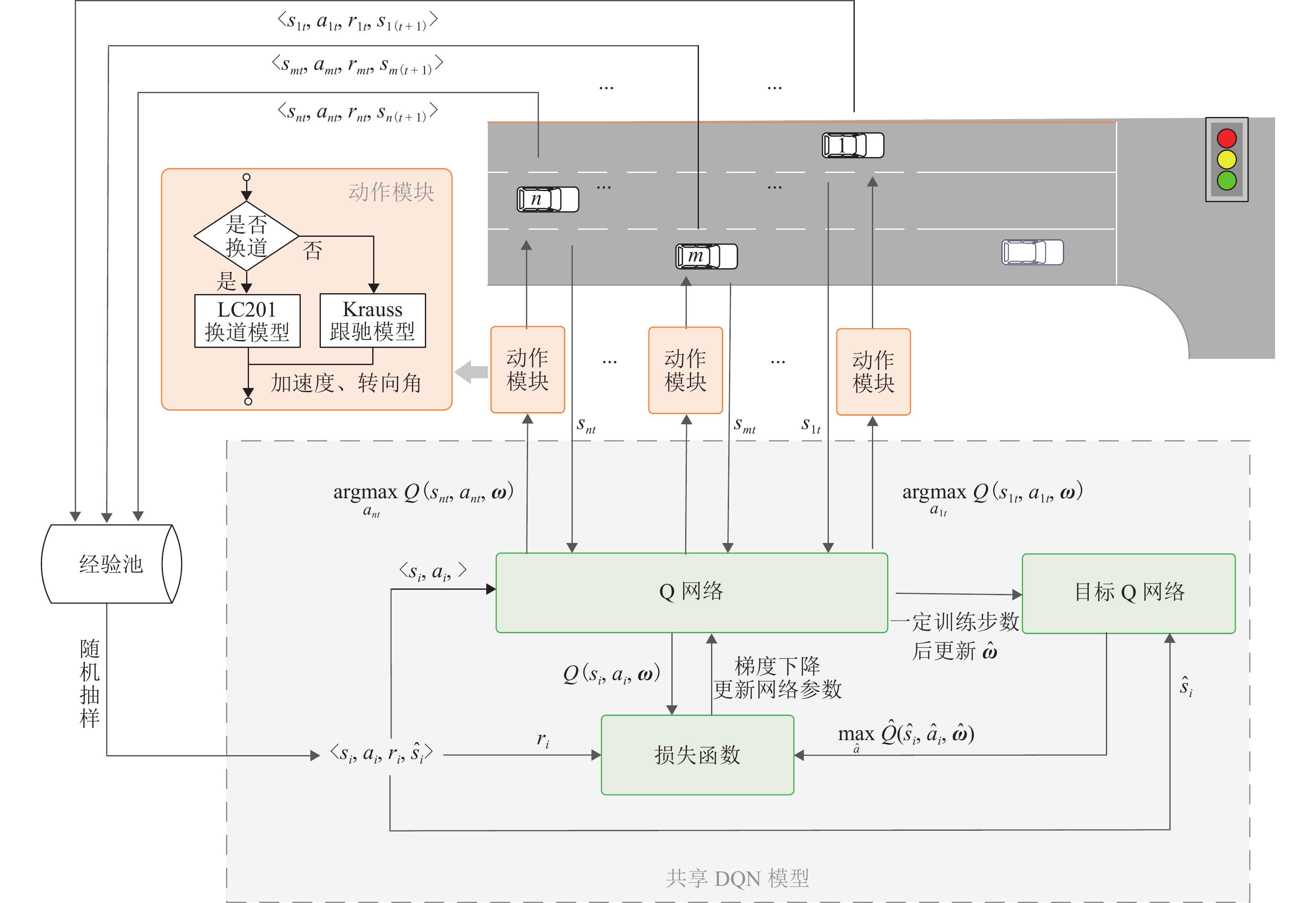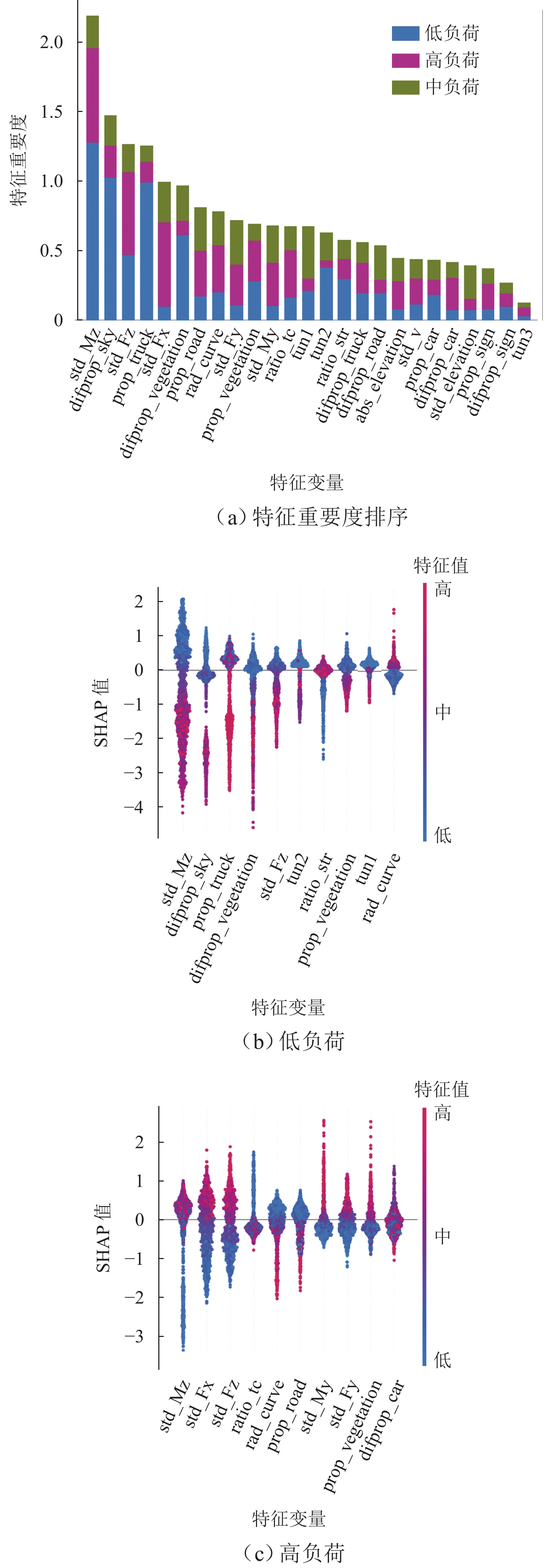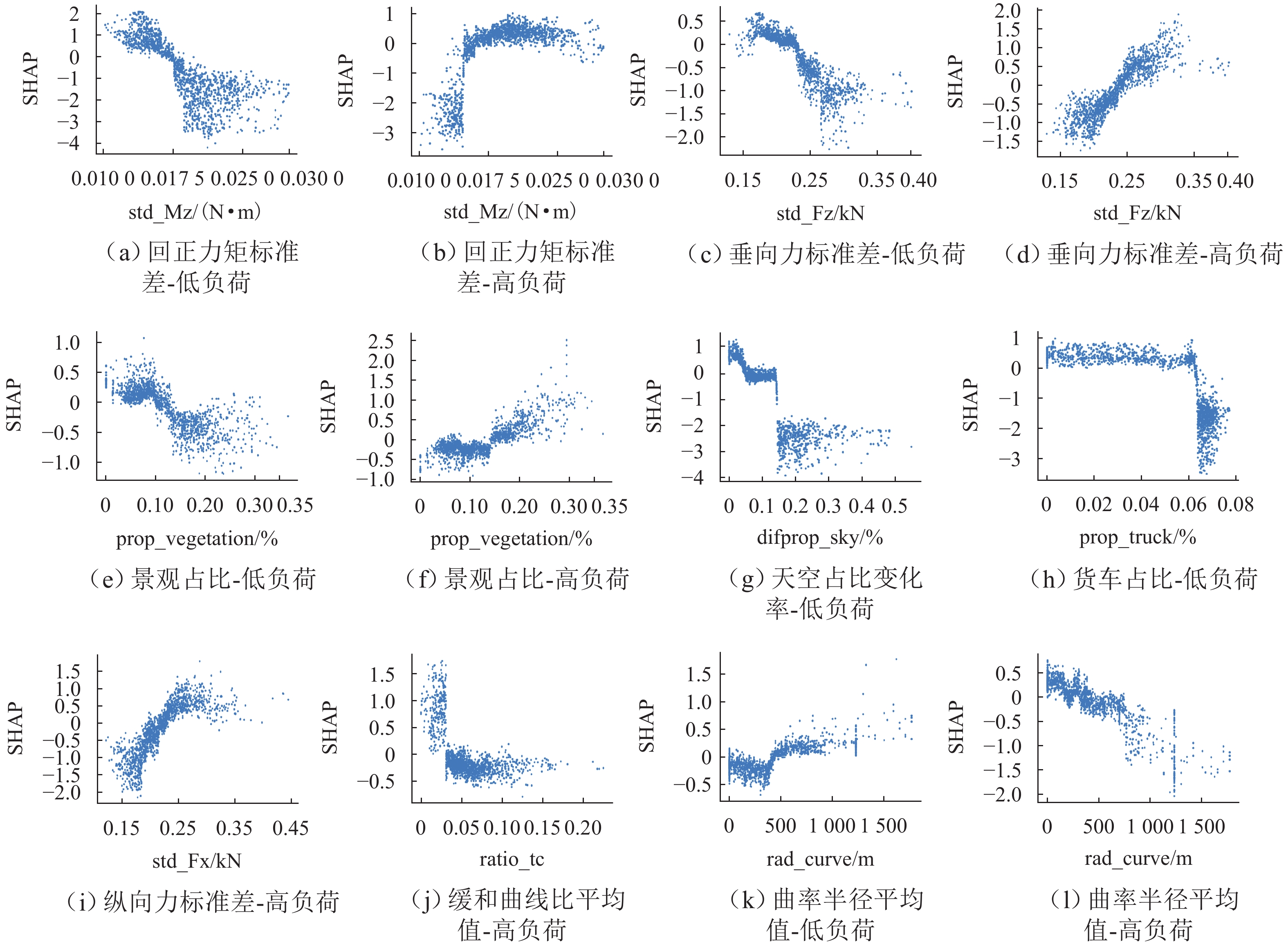 To enable real-time driver stress detection without relying on physiological signals, a method based on road alignment parameters, video images, and six-component tire forces was proposed. The proposed method utilized a computer vision model, namely Deeplabv3, to extract semantic information of scene elements from driving videos for characterizing the driving environment. The scene element parameters were incorporated with vehicle dynamics parameters and road alignment parameters to construct a multimodal parameter feature set. Subsequently, a machine learning algorithm was used to achieve driver stress detection. To verify the effectiveness of the proposed method, a field driving experiment was conducted on Jinliwen Freeway for collecting drivers’ eye movement, heart rate data, vehicle dynamics parameters, road alignment parameters, and driving video. The eye movement and heart rate data were utilized to measure stress levels. The random forest, support vector machine, XGBoost, and LightGBM algorithms were applied to build a stress detection model, and shapley additive explained (SHAP) was adopted to analyze influencing factors. The results show that LightGBM has the best performance, with macro average and weighted average F1 values reaching 91.99% and 93.25%, respectively, indicating that the proposed method can achieve accurate stress detection. Additionally, when the standard deviation of aligning torque, vertical force, and longitudinal force exceeds 0.016 3 N·m, 0.237 kN, and 0.229 kN, the average curvature radius of the road section is less than 317 m, and the average transition curve ratio of the road section is less than 0.029 6; the change rates of sky proportion, vegetation proportion, and truck proportion exceed 5.89%, 14.85%, and 6.37%, and the probability of the driver being in a high-stress state is higher. As the required data is easy to collect, the proposed method has a high application feasibility and can provide a reference for the evaluation of freeway safety and comfort. Moreover, it provides theoretical support for the landscape and alignment design of freeways, as well as the design of vehicle driver warning systems.