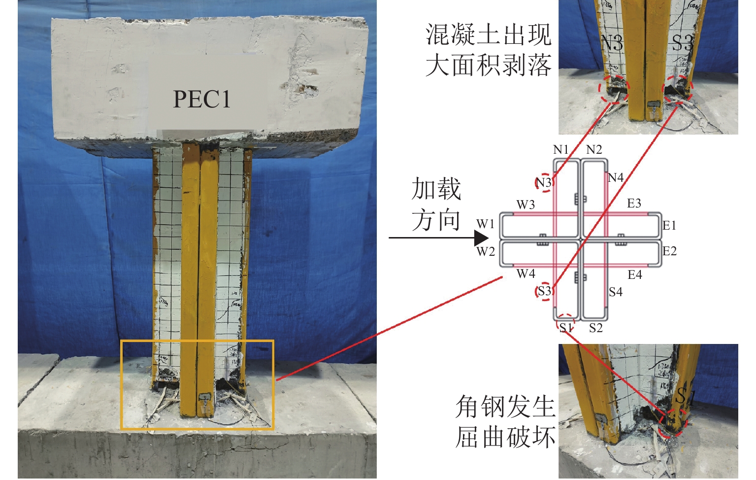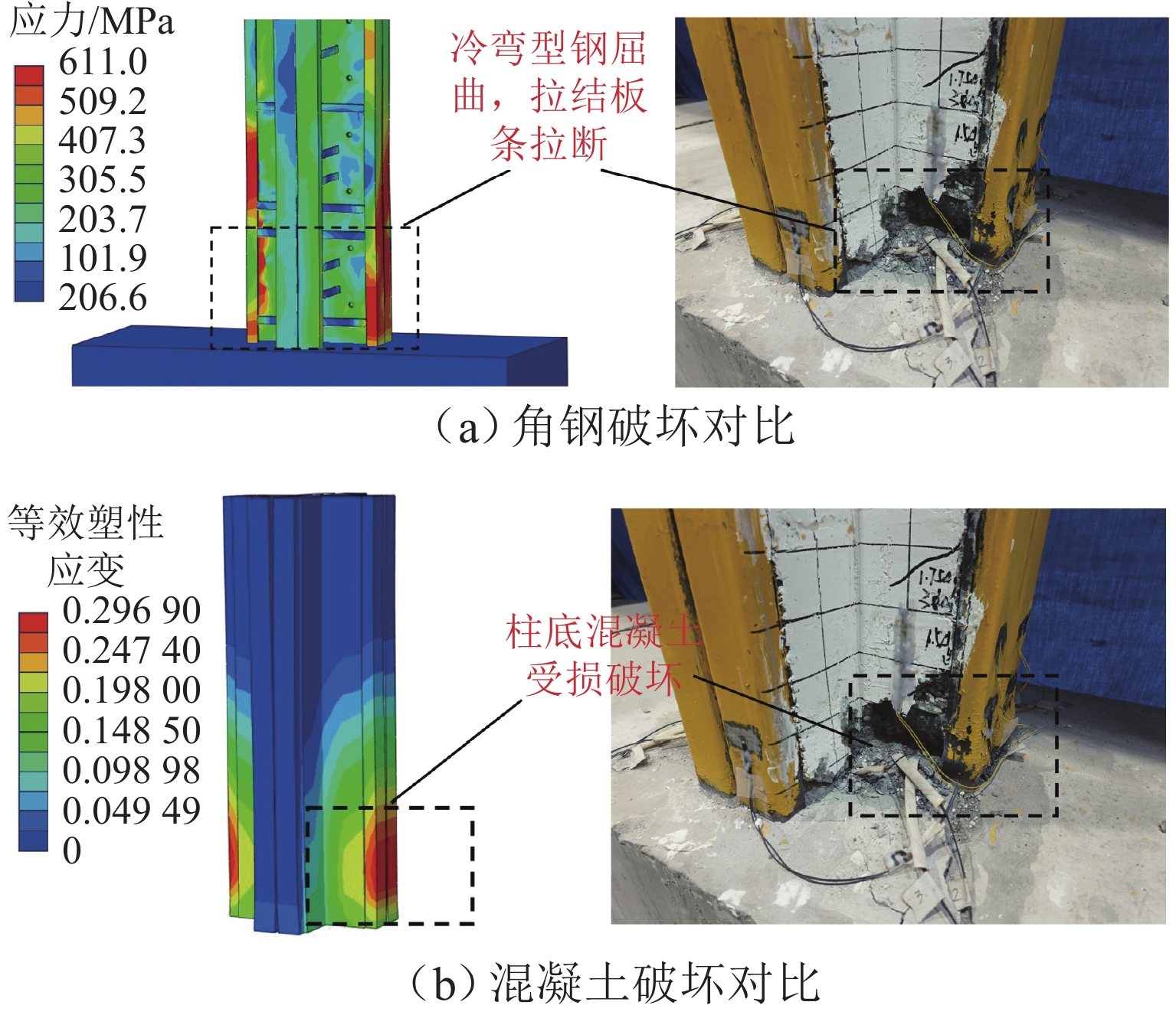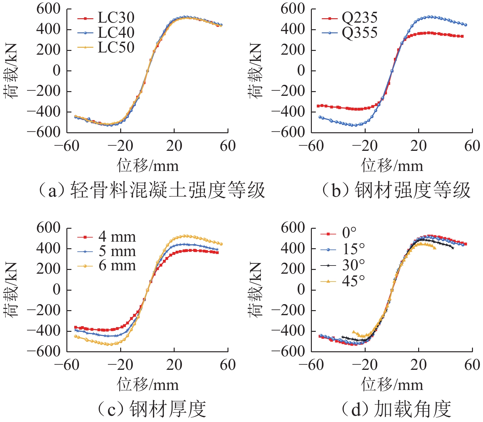 To address the problems of local buckling of cold-formed thin-walled steel members and cracking of ceramsite lightweight concrete, while considering the aesthetic requirements for interior building layouts, a prefabricated cross-shaped column partially encased with cold-formed thin-walled steel and filled with lightweight concrete was proposed. To investigate the seismic performance of these special-shaped columns, four cross-shaped columns were designed and fabricated using different coarse aggregate replacement rates as a parameter, and the low cyclic reversed loading tests were carried out. Based on the experimental study, the finite element software ABAQUS was used to analyze the lightweight aggregate concrete strength, steel plate strength, steel plate thickness, and loading angle. The test results indicate that the hysteretic curves of the four specimens are symmetrical and full, exhibiting a shuttle shape. A compression-bending failure mode of the specimens was observed. As the coarse aggregate replacement rate increases from 0% to 30%, 70%, and 100%, the specimen weight decreases by 77 kg/m3, 176 kg/m3, and 252 kg/m3, respectively; the carbon emission reductions decrease by 19.18%, 38.11%, and 49.93%; the ultimate load-bearing capacity decreases by 1.0%, 4.7%, and 9.2%; the ductility coefficient increases by 1.4% at first, and then decreases by 3.8% and 4.2%; the energy dissipation reduces by 8.6%, 2.5%, and 6.7%. The use of fly ash ceramsite to replace ordinary stone as a concrete coarse aggregate has no significant effect on the seismic performance of the columns but shows great potential for carbon emission reduction compared to ordinary concrete. Increasing the strength of lightweight aggregate concrete does not significantly improve the load-bearing capacity, ductility, or energy dissipation performance of the specimens. When the steel plate strength increases from Q235 to Q355, the ultimate load-bearing capacity of the specimens increases by 45.1%. When the steel plate thickness increases from 4 mm to 5 mm and 6 mm, the ultimate load-bearing capacity of the specimens increases by 14.8% and 35.5%, respectively. The least favorable loading angle for the specimens is 45°.