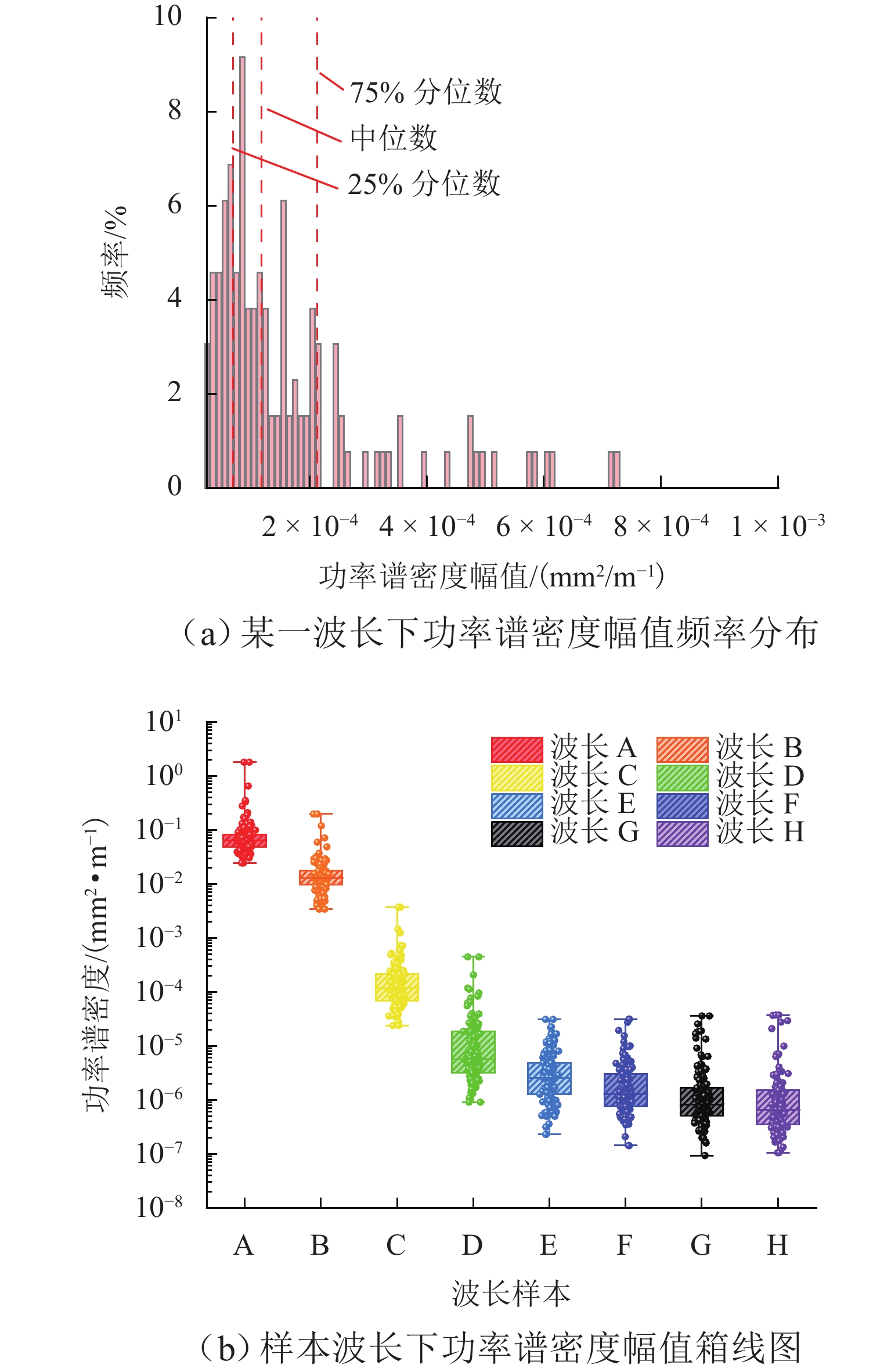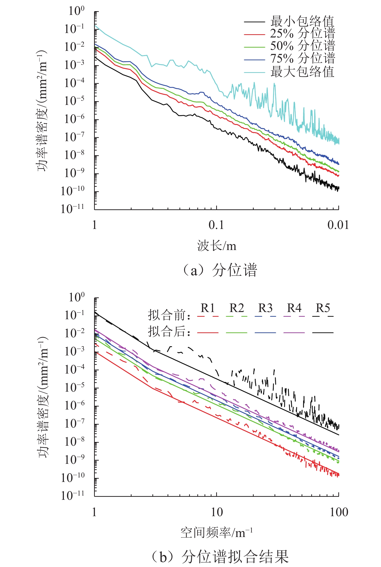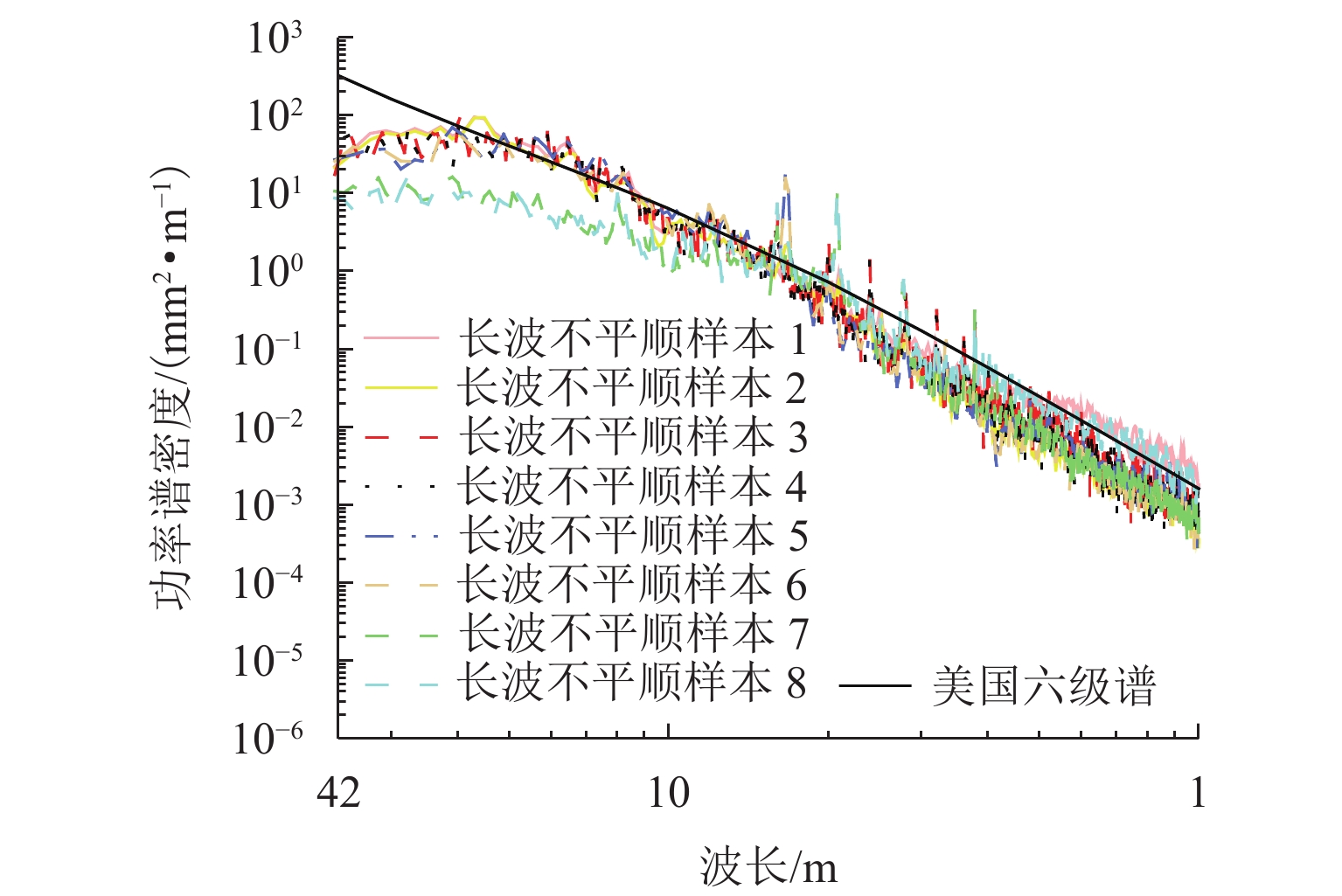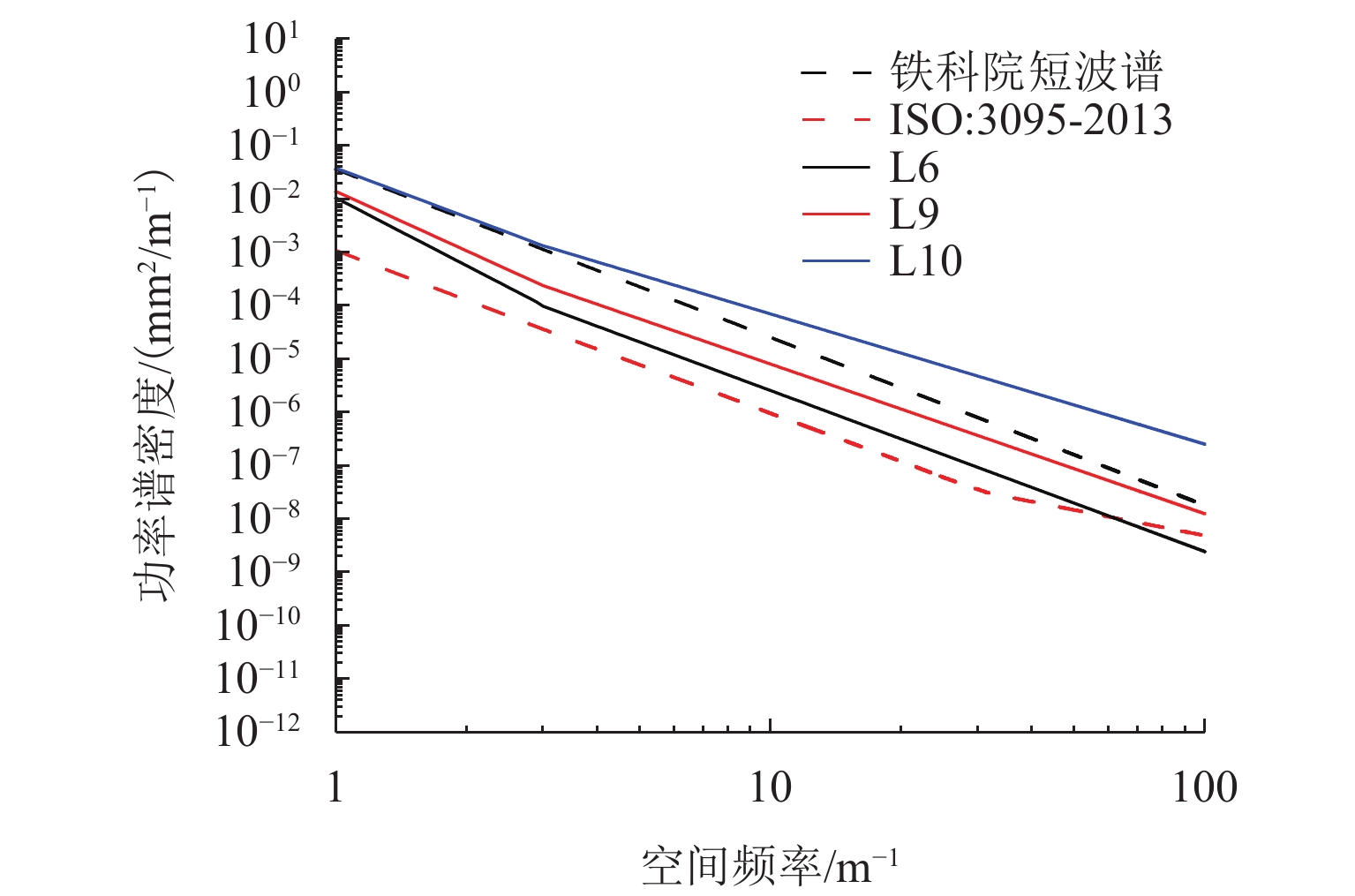 为建立用于地铁振动噪声数值仿真预测的轮轨宽频激励模型,依托北京地铁线路实测轨道长波不平顺、钢轨表面粗糙度和青岛地铁实测车轮踏面不圆顺数据,开展地铁轨道长波不平顺选取与轮轨短波粗糙度谱研究. 首先,采用Welch法对实测轨道不平顺数据进行功率谱密度估计,并给出了钢轨短波不平顺功率谱和车轮不圆顺功率谱表达式及其拟合参数;长波方面,以速度等级对应的单项高低TQI值相近原则选取典型轨道谱;短波方面,以四分位数分别将钢轨表面短波不平顺功率谱和车轮不圆顺功率谱划分为五个等级,并考虑二者相干性提出轮轨粗糙度谱. 研究结果表明:依据单项高低TQI值相近原则,选取的美国六级谱与北京设计速度80 km/h的地铁线路轨道长波(1~42 m)不平顺功率谱吻合良好;钢轨表面短波不平顺功率谱和车轮不圆顺功率谱在同一短波波长下幅值分布均具有显著的偏态分布特征;短波0.01~1.00 m内的不同等级大小轮轨粗糙度谱主要受车轮不圆顺谱主导,严重时甚至超过了铁科院短波谱.
