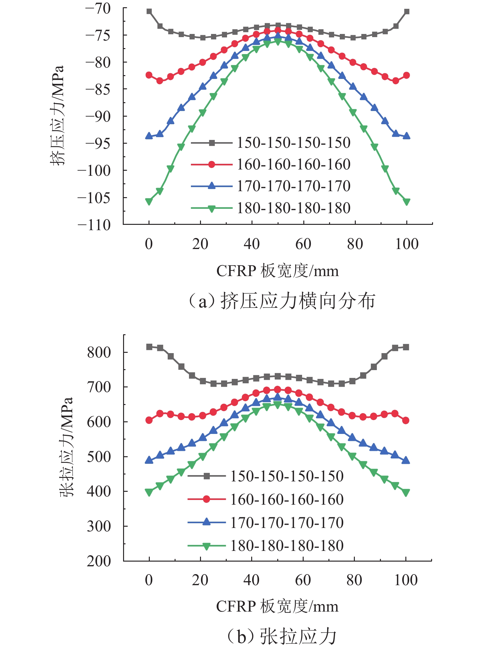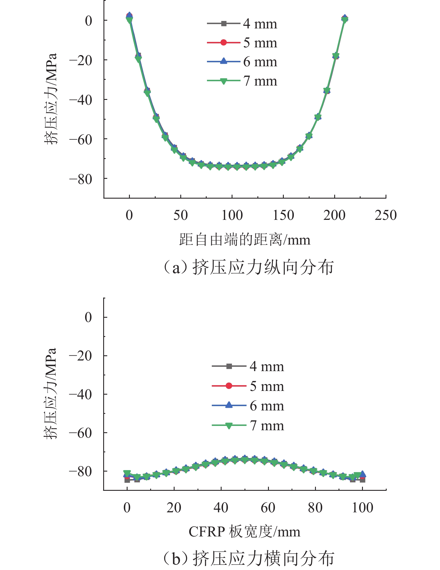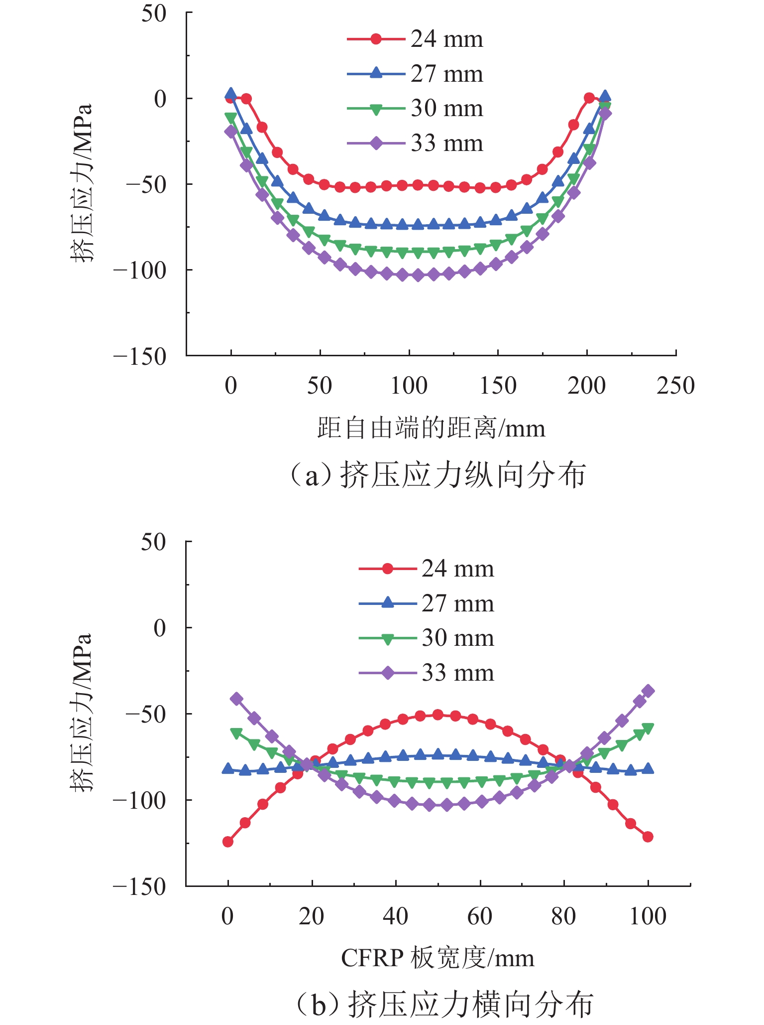 针对现有CFRP板锚固技术中挤压应力横向分布不均匀导致板材承拉后易撕裂破坏,难以控制螺栓预紧力的问题,本文研制了双曲面CFRP板锚具,其主要构造特征为外夹板设有横向圆弧面(可使CFRP板所受挤压应力横向分布较均匀),内夹板设有纵向圆弧面(可充分挤压锚固区中段,避免端口处剪切破坏);通过限位片控制外夹板挤压位移,以实现所需的预紧力锚固CFRP板;对6组新型锚具试件进行锚固性能试验,探究其受力机理;利用ANSYS有限元软件进行受力模拟,深入分析影响锚固性能的关键参数,同时与平板式锚具的受力性能展开对比. 研究表明:外夹板厚度是影响CFRP板挤压应力横向分布不均匀的主要因素,当外夹板厚度为27 mm时,CFRP板挤压应力横向分布较均匀,最大与最小压应力之差仅为9.3 MPa;内、外夹板的弧面设计优化了CFRP板挤压应力分布状态,同时减小了碳纤维间的应力差,使CFRP板的横向变形更同步;试件破坏状态为撕裂破坏,但新型锚具锚固效率系数可达104.16%.