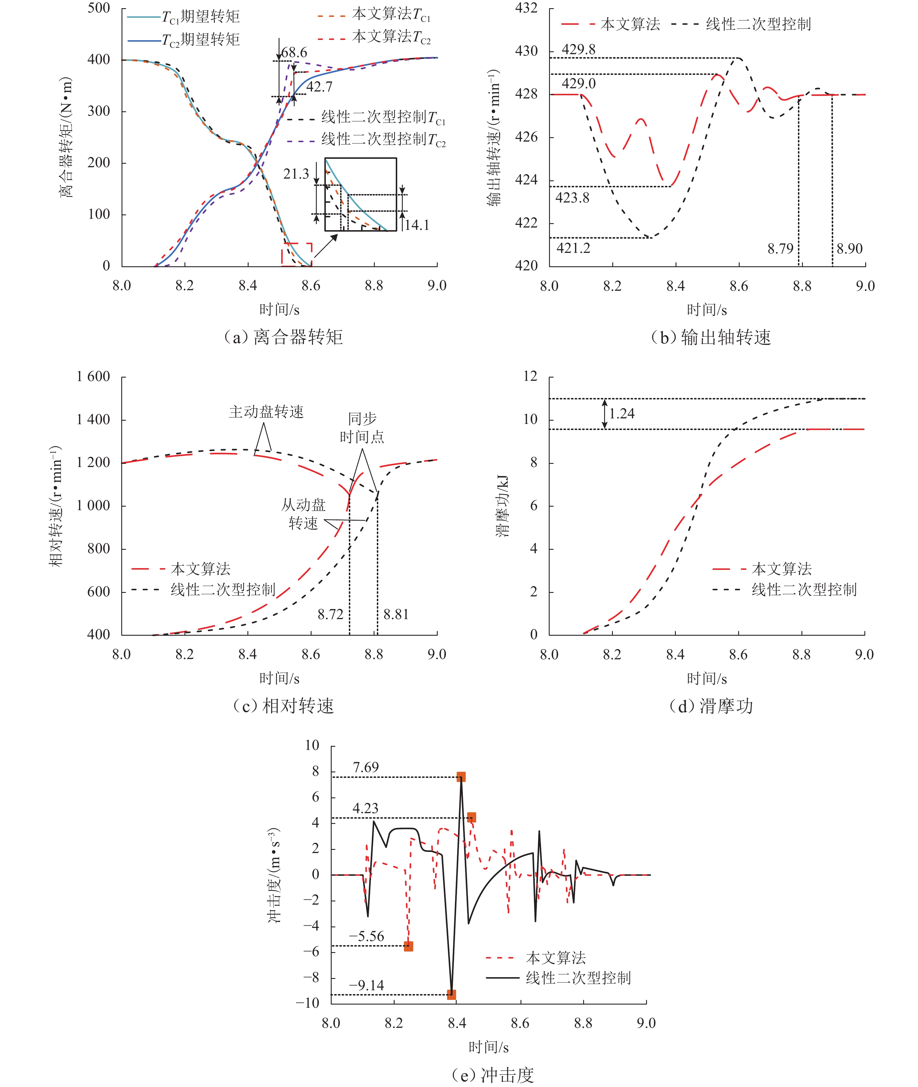 为提高液压机械传动(HMT)换段离合器的转矩传递控制精度,改善其换段质量,提出一种基于线性二次型优化的自适应滑模控制方法. 首先,构建HMT换段动力学模型和离合器数值模型;其次,基于线性二次型优化模型求解目标泛函下换段离合器最优转矩传递轨迹,并结合动态摩擦因数模型,将该轨迹变量转换为考虑润滑油膜时变效应与摩擦界面动态接触特性的期望油压轨迹;最后,利用自适应滑模控制算法对期望油压轨迹进行跟踪控制. 仿真结果表明:与直接采用线性二次型控制方案相比,所提算法有效提高了换段离合器的转矩传递控制精度,换段时间缩短13.8%,滑摩功降低11.2%,最大冲击度减小39.1%;试验进一步证实,该算法在有效提高换段离合器转矩传递控制精度的同时,改善了HMT换段质量. 研究结果可为HMT装置工程应用中的换段控制策略制定提供参考.