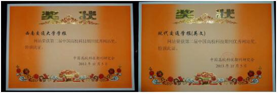 2013年11月4-7日,中国高校科技期刊研究会第17次年会在湖南长沙举行。来自全国高校科技期刊的主编、编辑约500多位代表参加了会议。中共中央宣传部出版局刘建生副局长、教育部科技司高润生巡视员莅临会议,并就有关高校学术期刊管理体制改革等方面向大会作了报告。大会对2013年获奖单位和个人进行表彰。西南交通大学学报网站及JMT网站双双荣获“2013年第二届中国高校科技期刊优秀网站”。